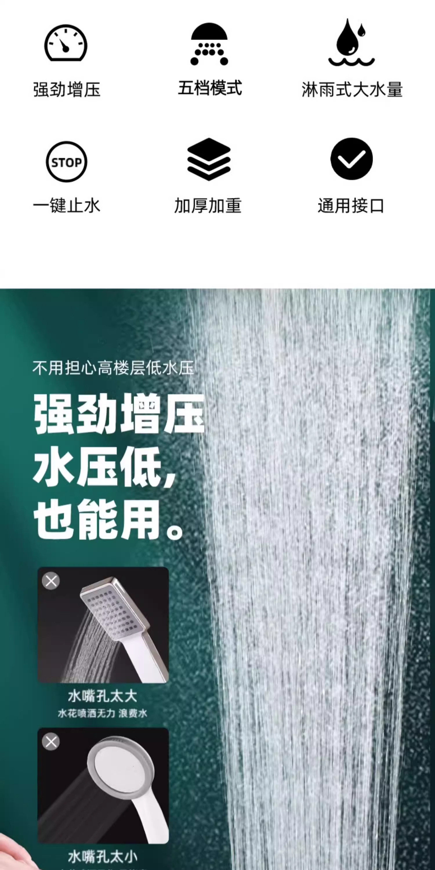 [Next Day Delivery]Pressurized Shower Head for Home Bathroom Water Heater, Increased Pressure Shower Set