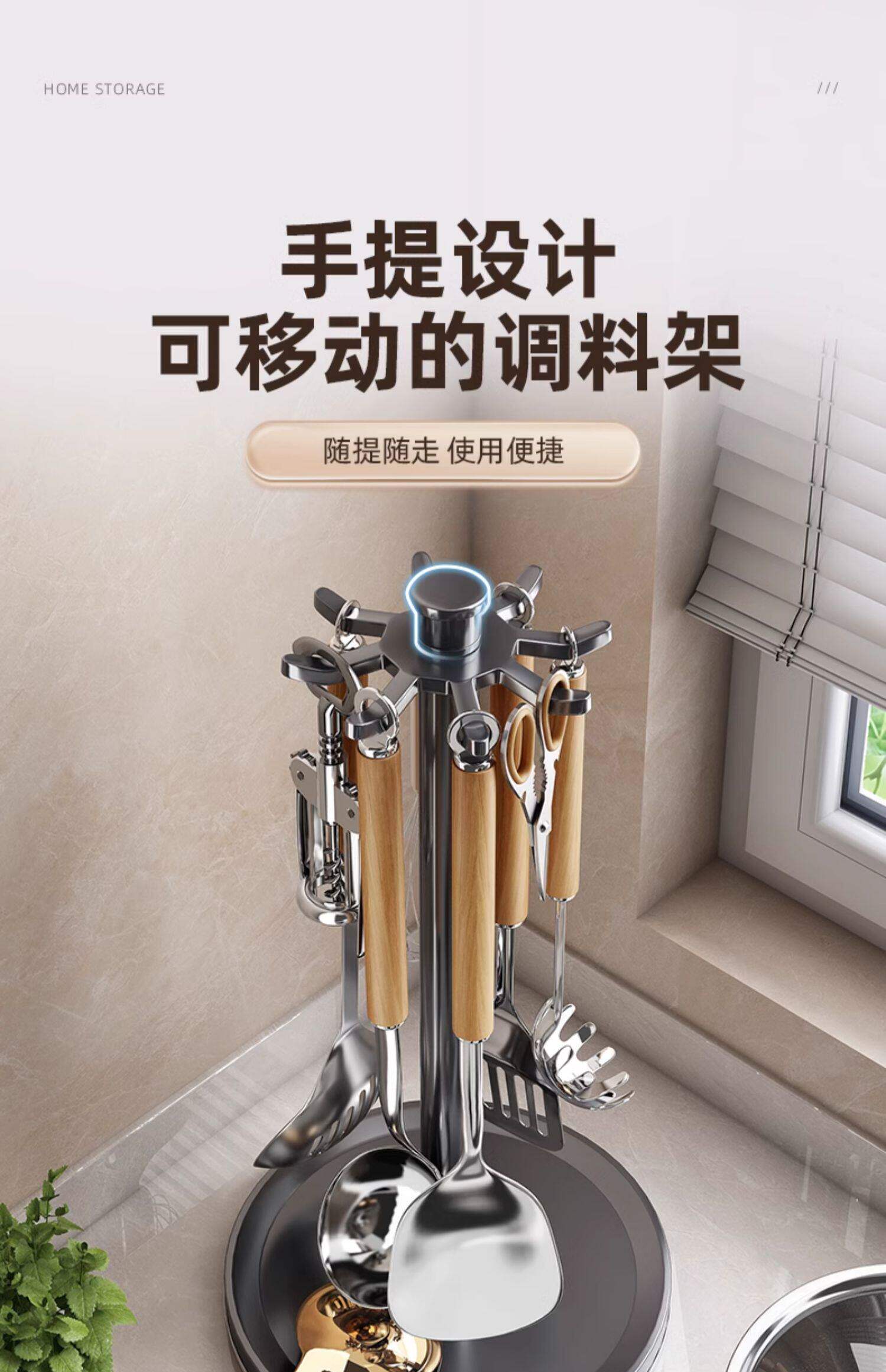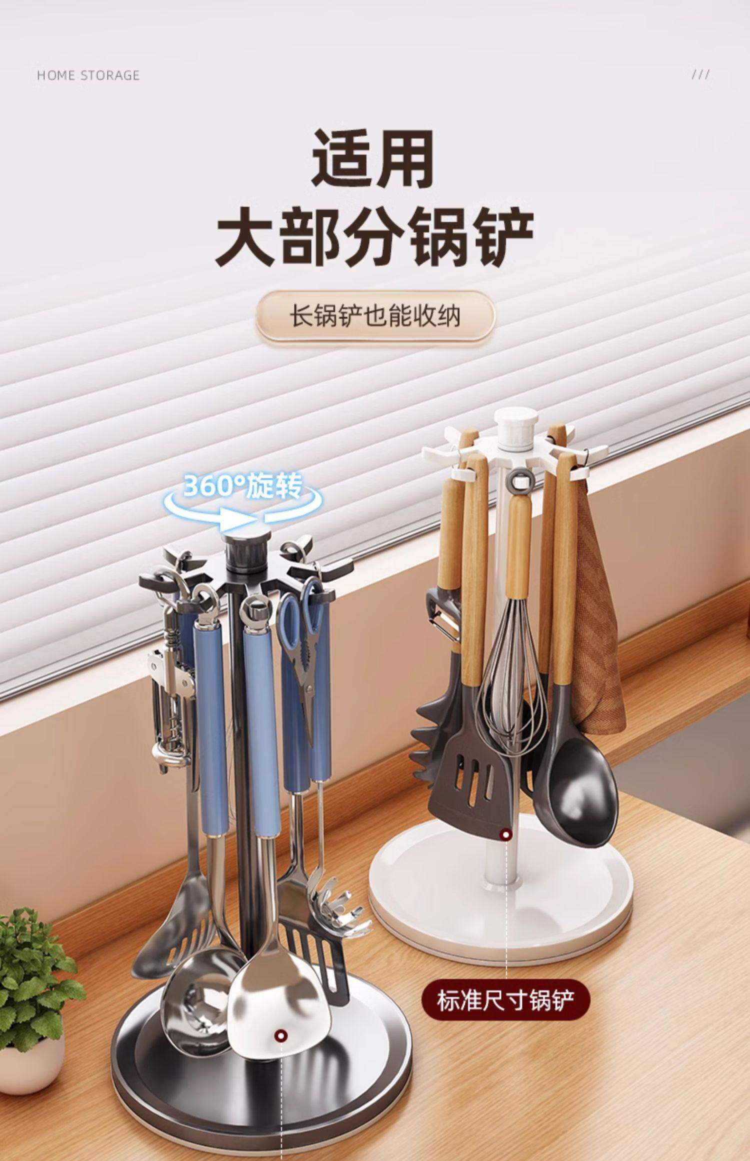 German High-End Rotating Spatula Holder Kitchen Countertop Hook Storage Rack for Spoons, Spatulas, Soup Ladles, and Kitchen Utensils