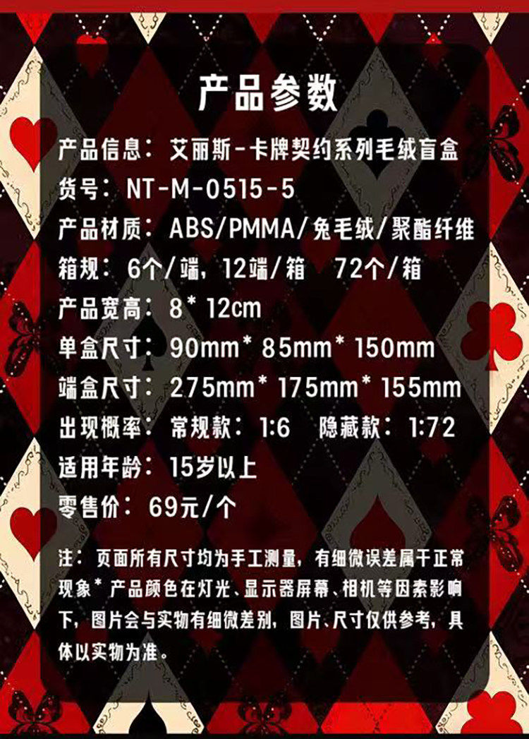 Alice Alice Card Series Plush Pendant Blind Box Dark Style Doll Girl's Gift