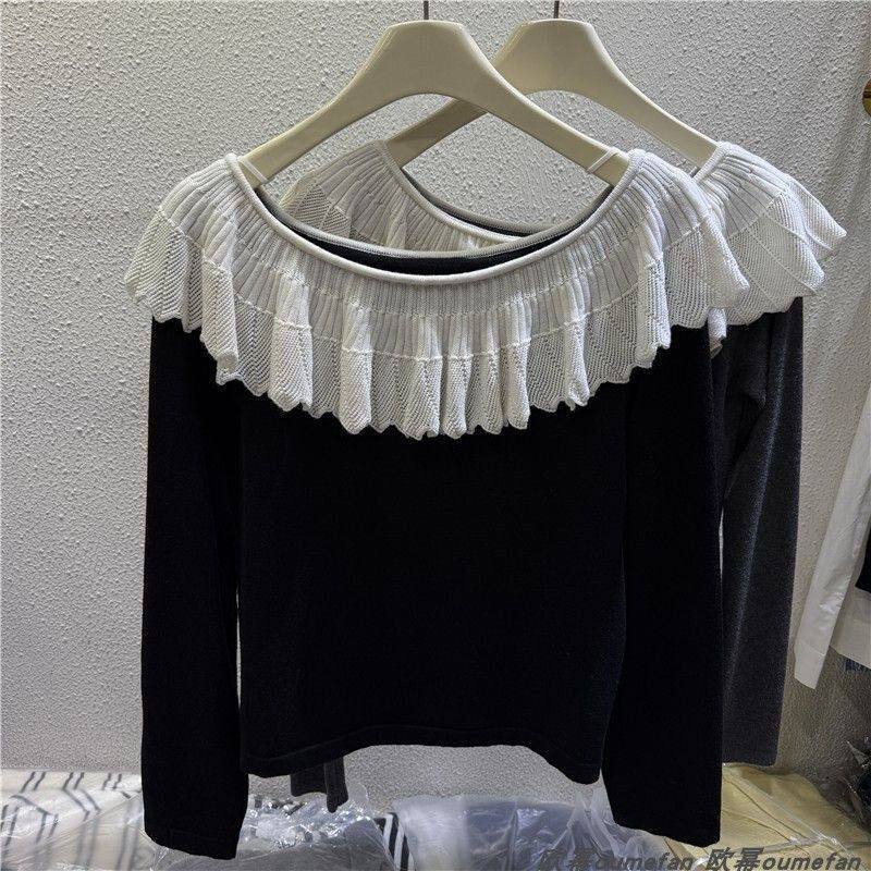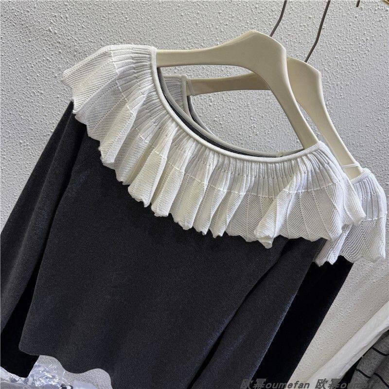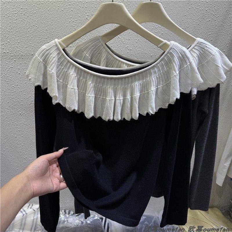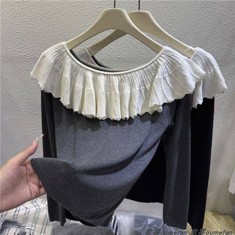 XL size 300Jin Jin is equal to 0.5kg Fat MM one-line collar long-sleeved T-shirt women's spring and autumn trendy brand loose casual slimming bottoming top