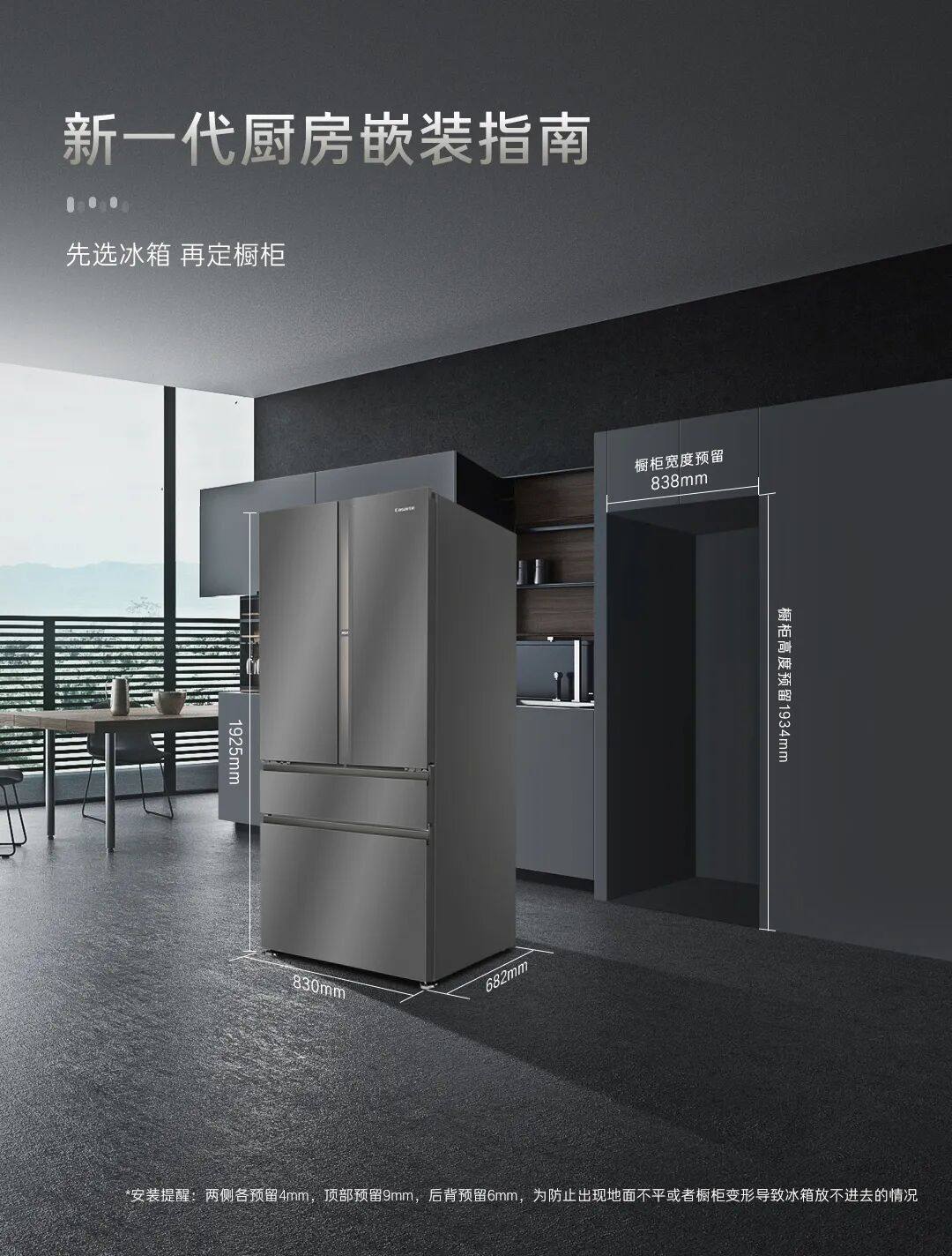 Reserved installation width 838mm