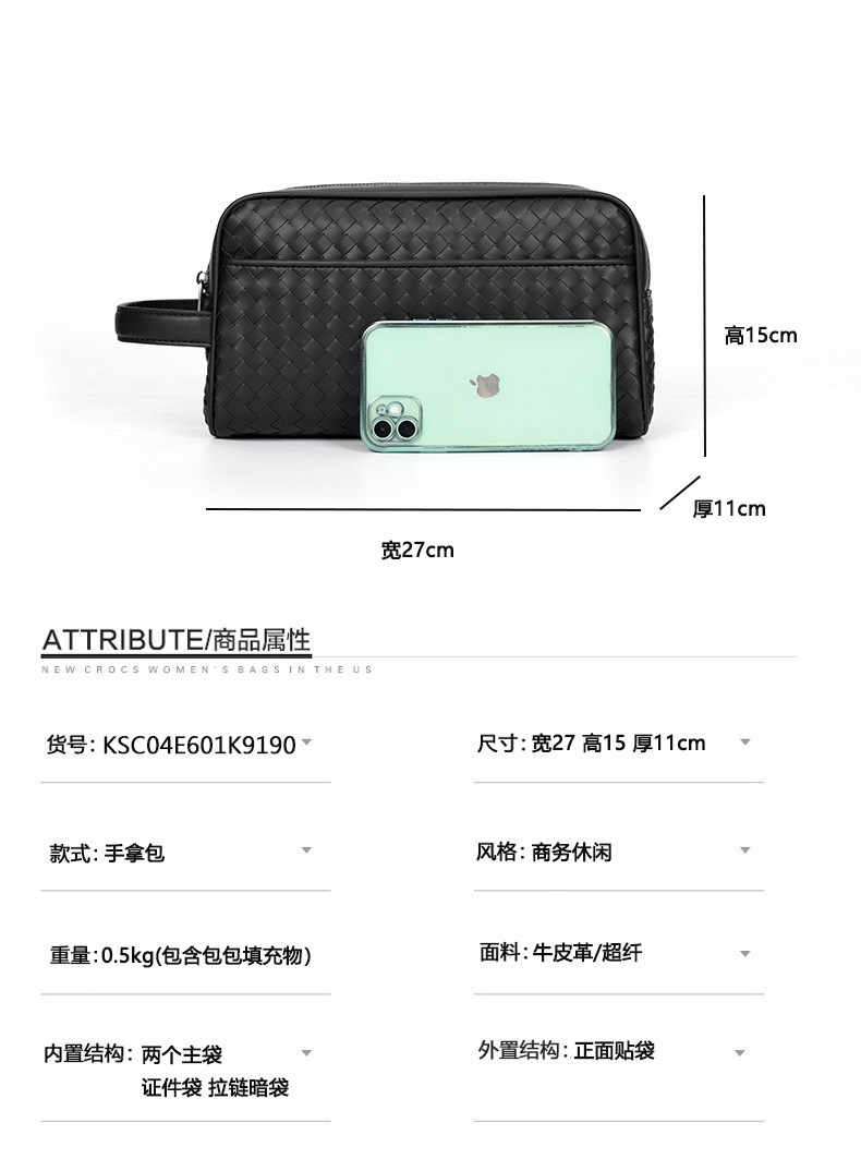 Lendaryer Clutch Bag Men's New Fashion Simple Handbag Double Zipper Casual Folder Bag Large Capacity Wallet