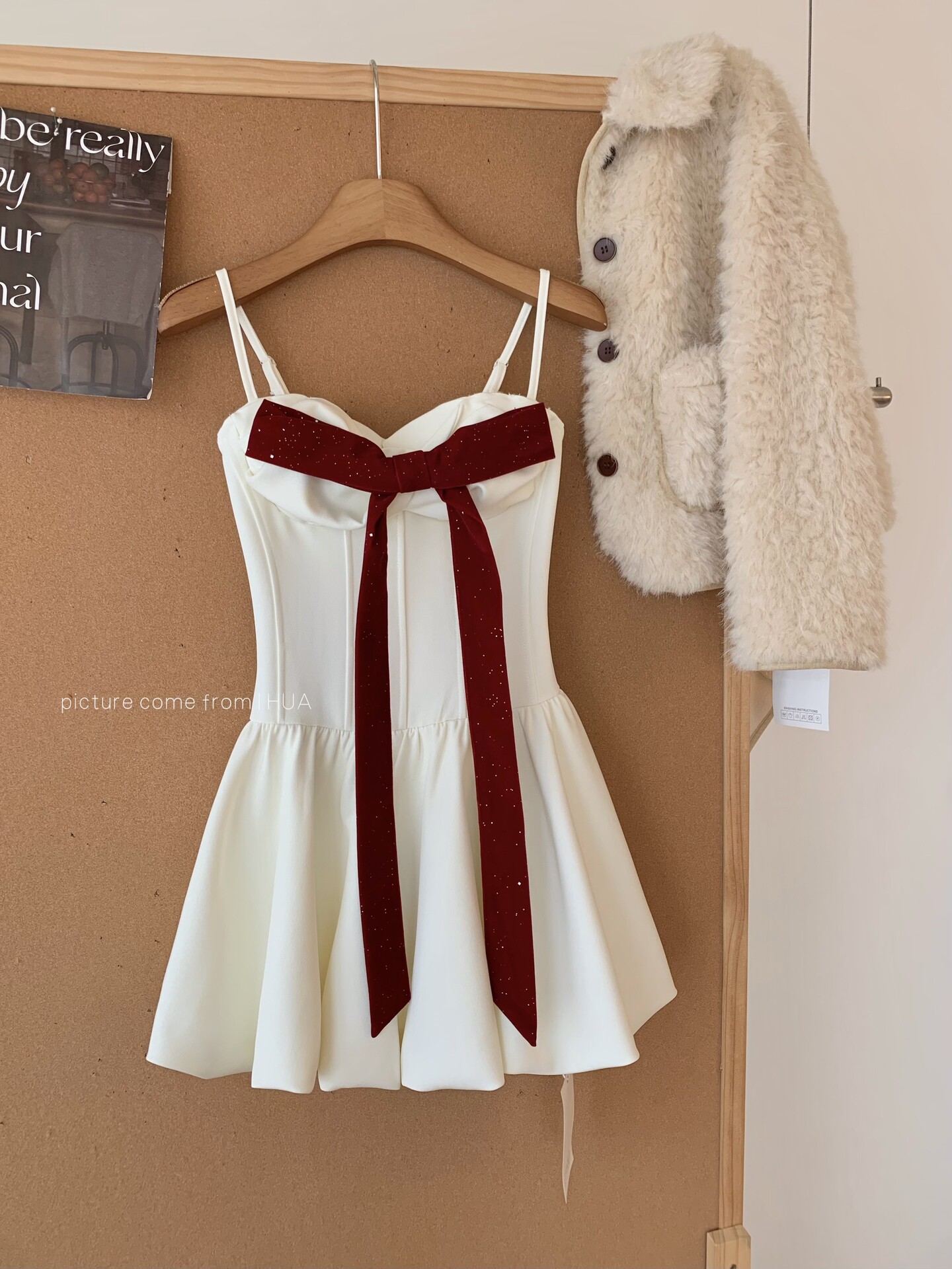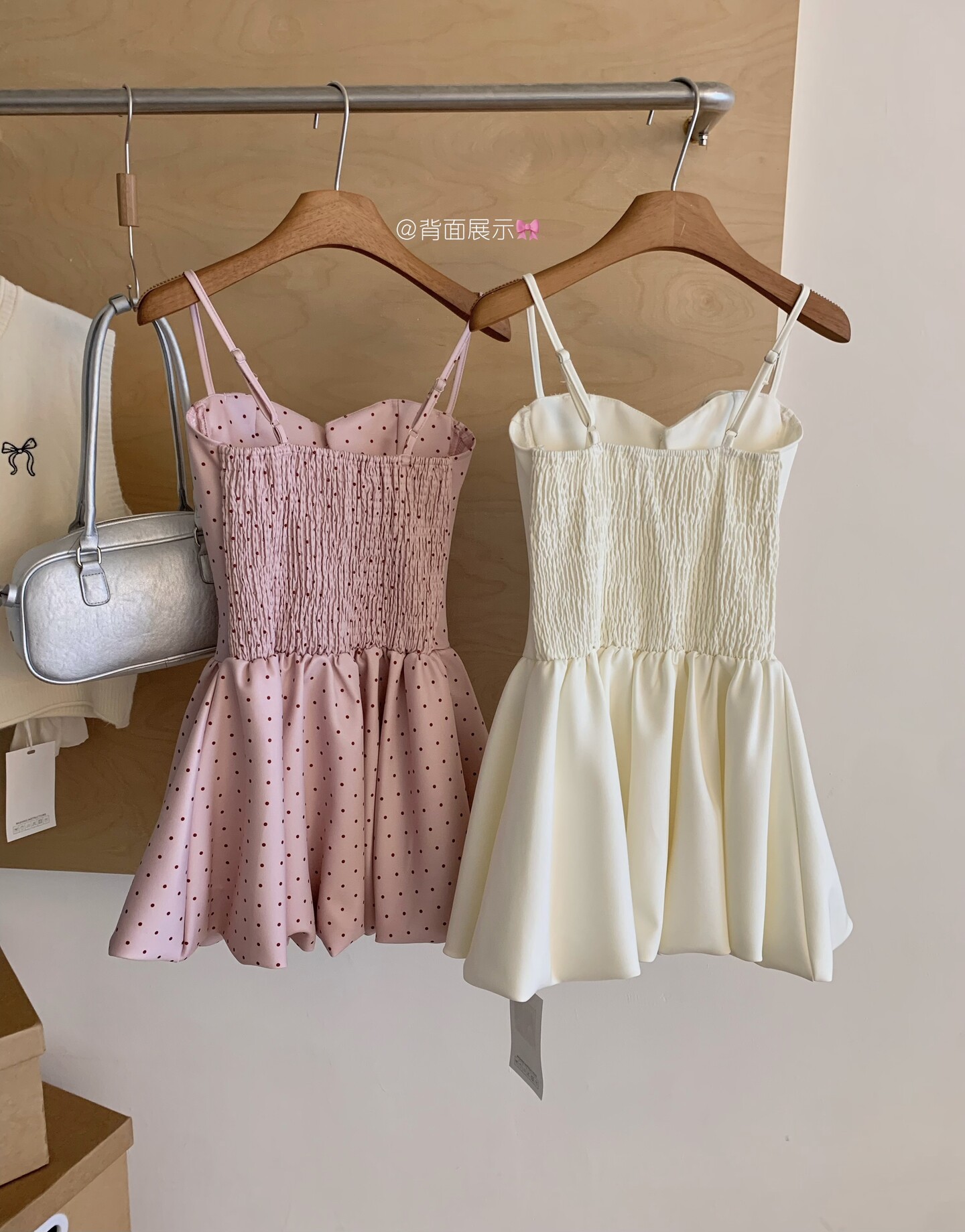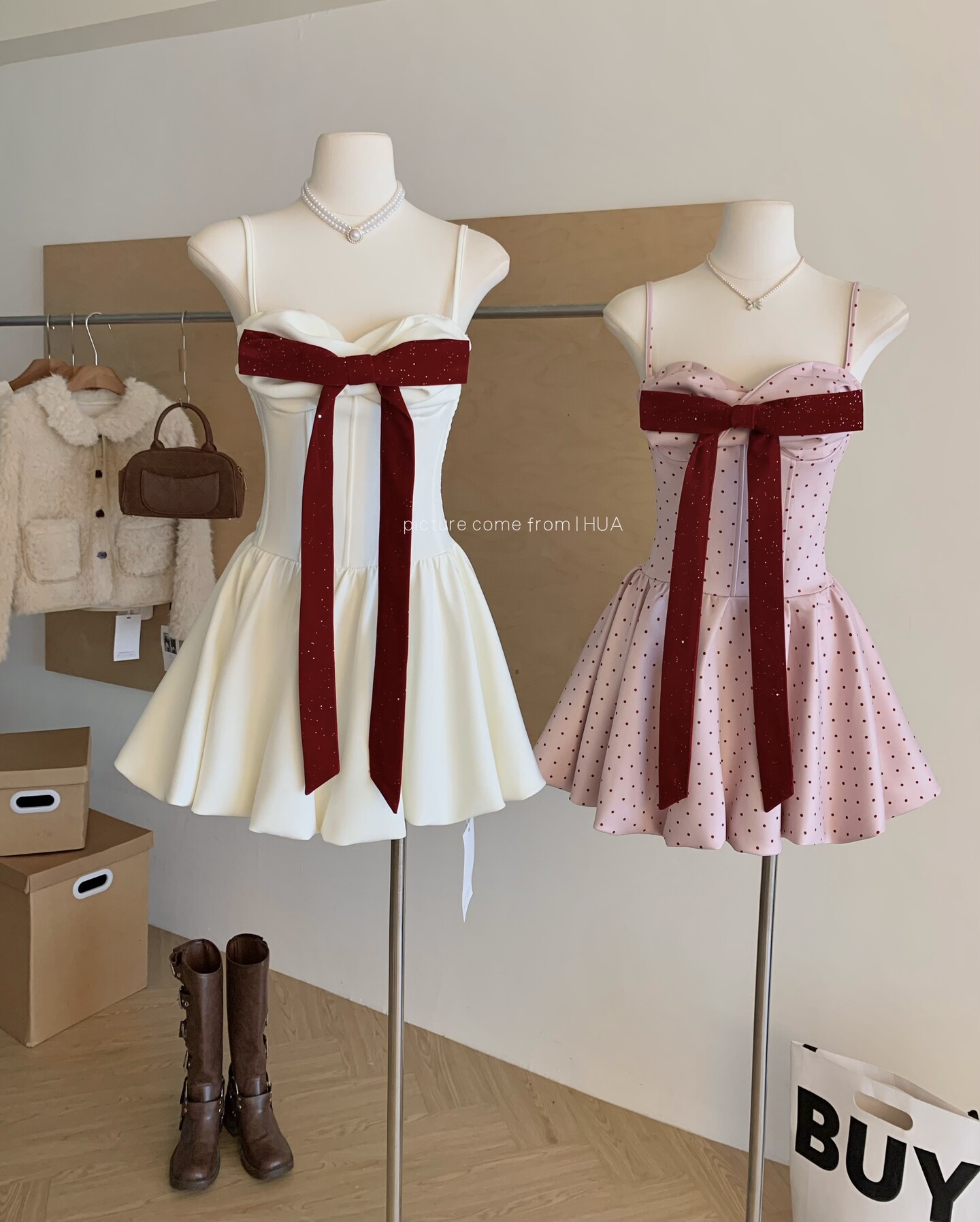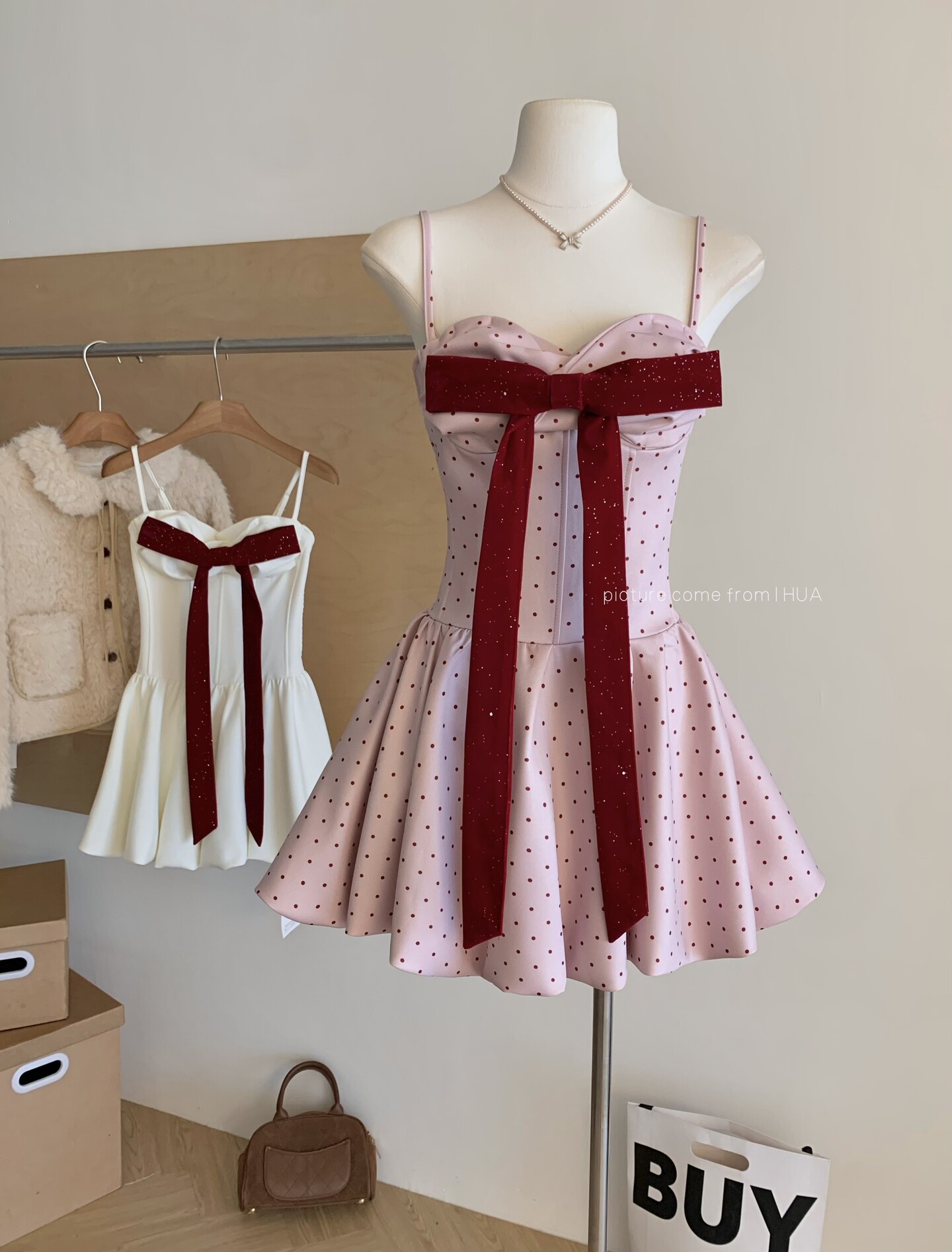 Lin Xiaxia's New French-Style Pure Desire Bow-Tie Waist-Cinching Slimming Polka Dot Women's Dress