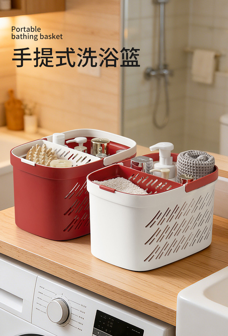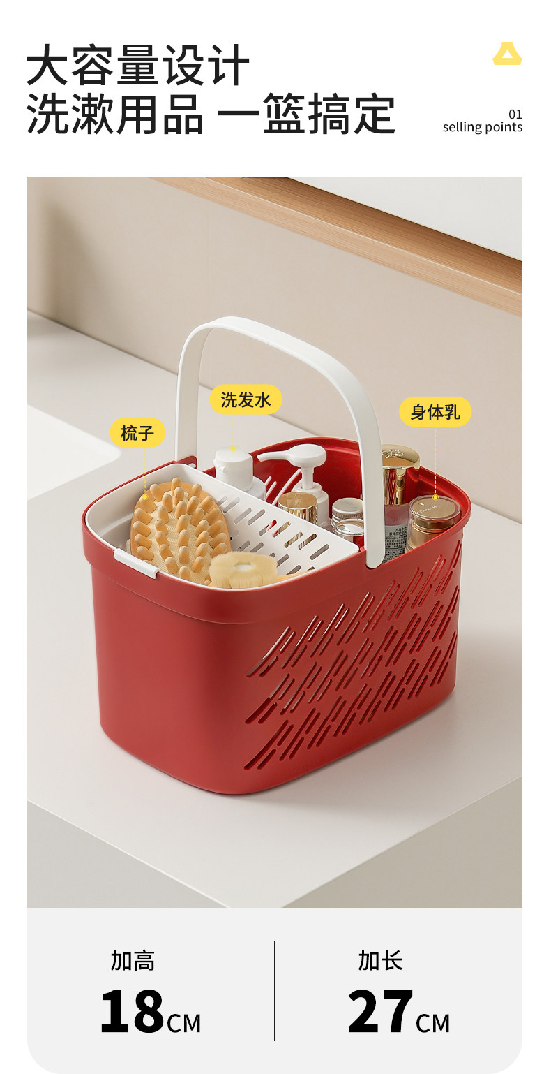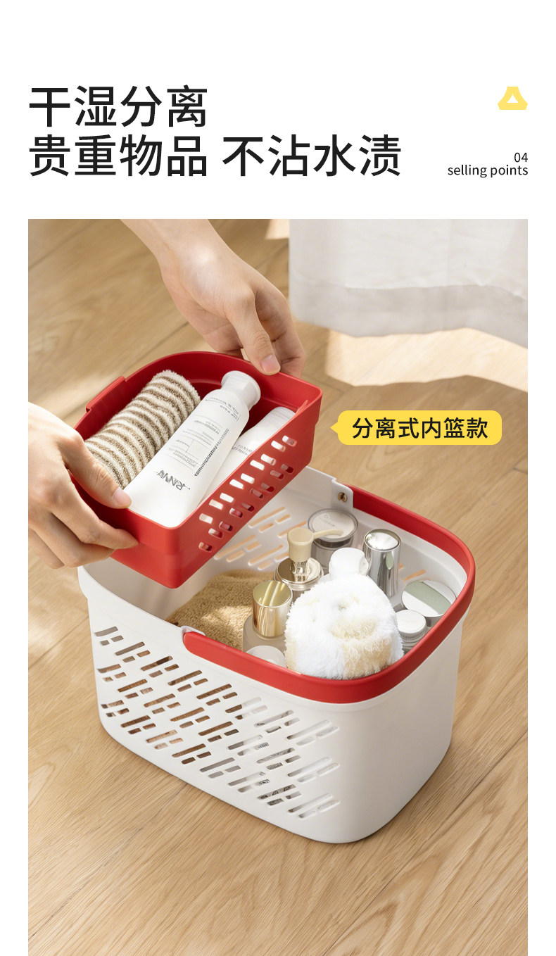 Bath portable basket, bath basket, toiletries box, wet and dry separation bathroom, bathing dormitory storage box, bath basket basket