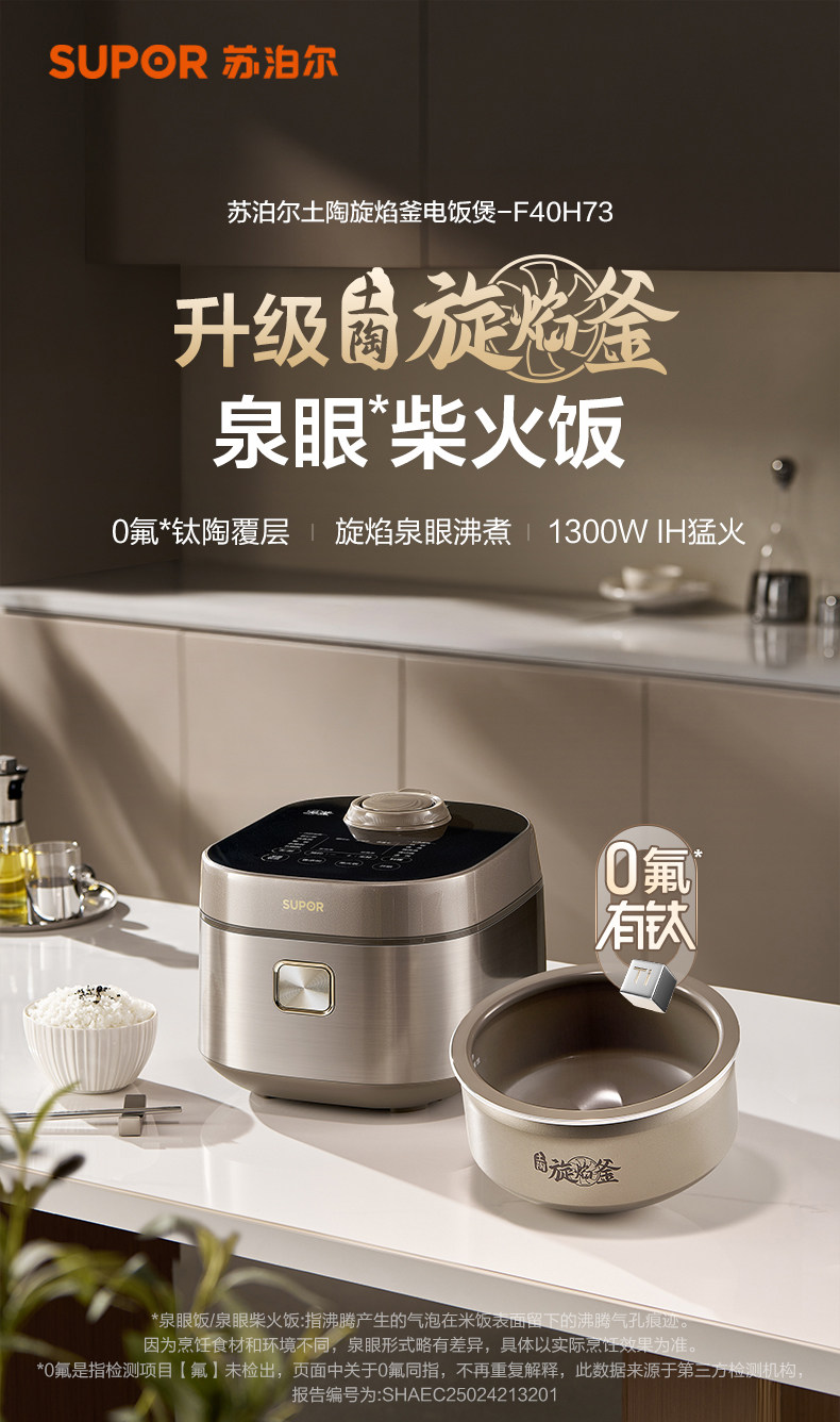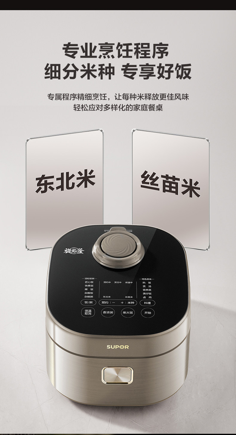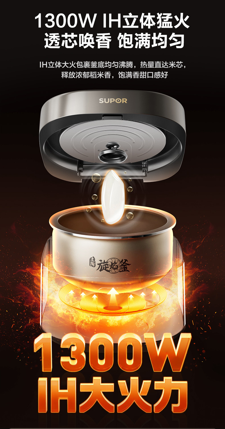 Supor Electric Rice Cooker with Rotating Flame Technology, New Model, 0 Fluoride, Titanium Clay Pot, Suitable for 3 to 4 People, Ih Three-Dimensional Heating