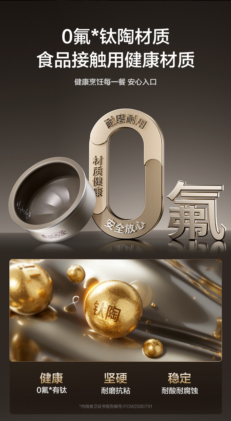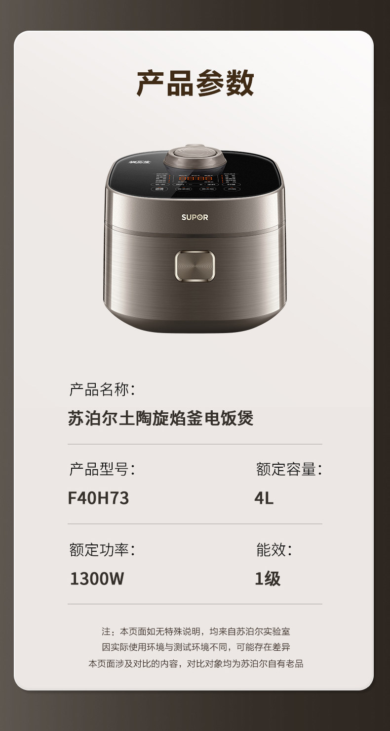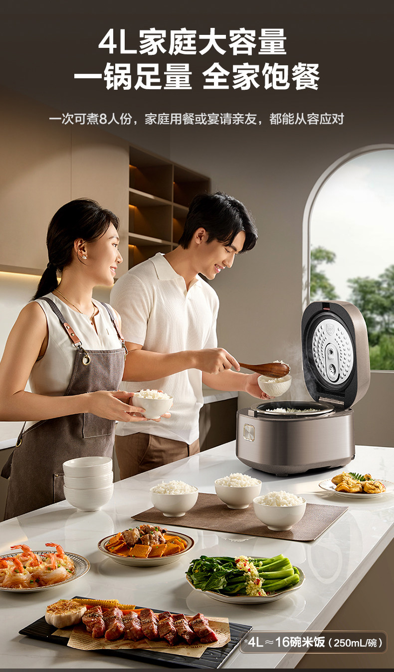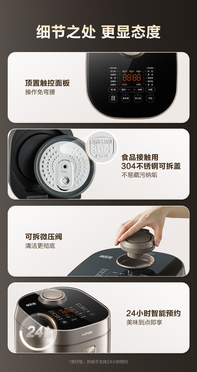 Supor Electric Rice Cooker with Rotating Flame Technology, New Model, 0 Fluoride, Titanium Clay Pot, Suitable for 3 to 4 People, Ih Three-Dimensional Heating