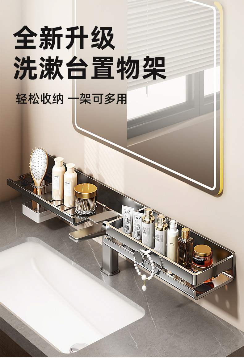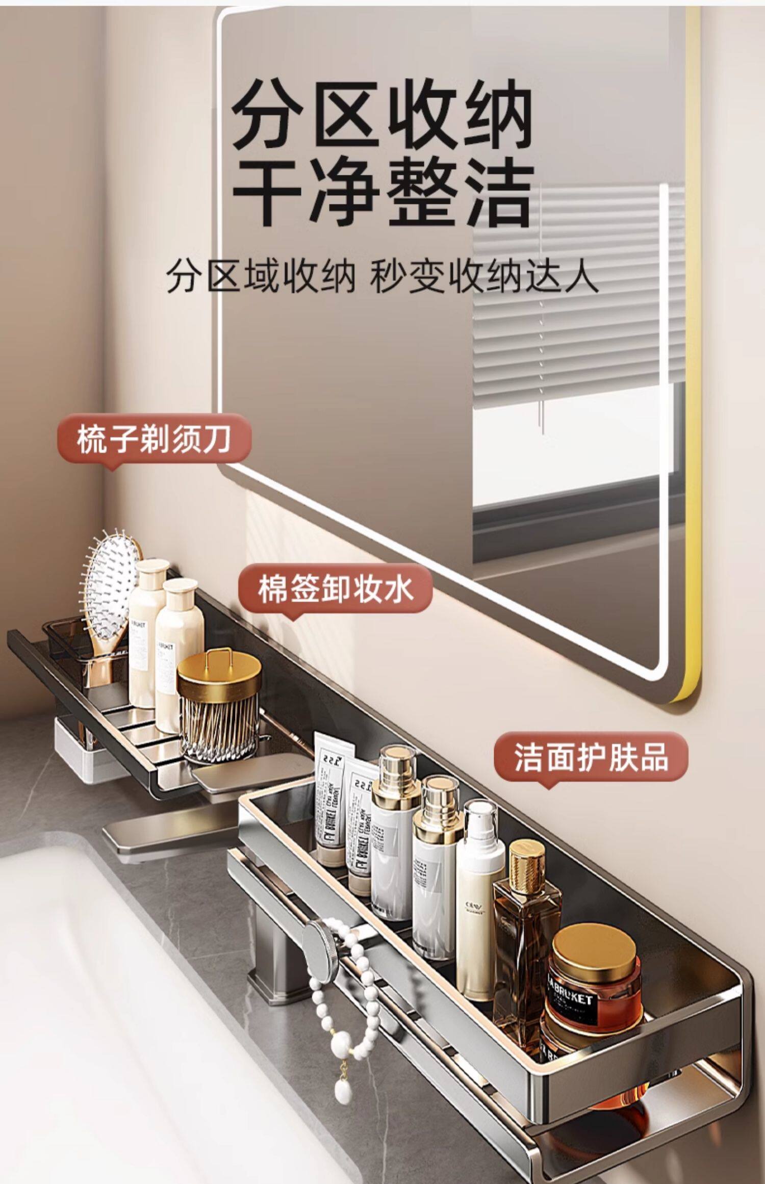 German High-End Bathroom Sink Storage Rack, Wall-Mounted, No-Drill, Bathroom Mirror Front Storage Shelf