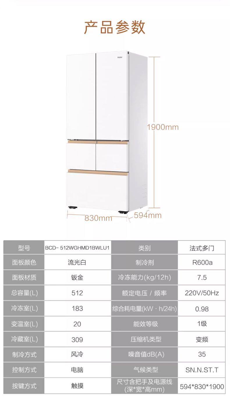 Haier Refrigerator with Full Space Preservation, Ultra-Thin French-Style Multi-Door, Zero-Insertion, Frost-Free Bcd-512Wghmd1Bwlu1