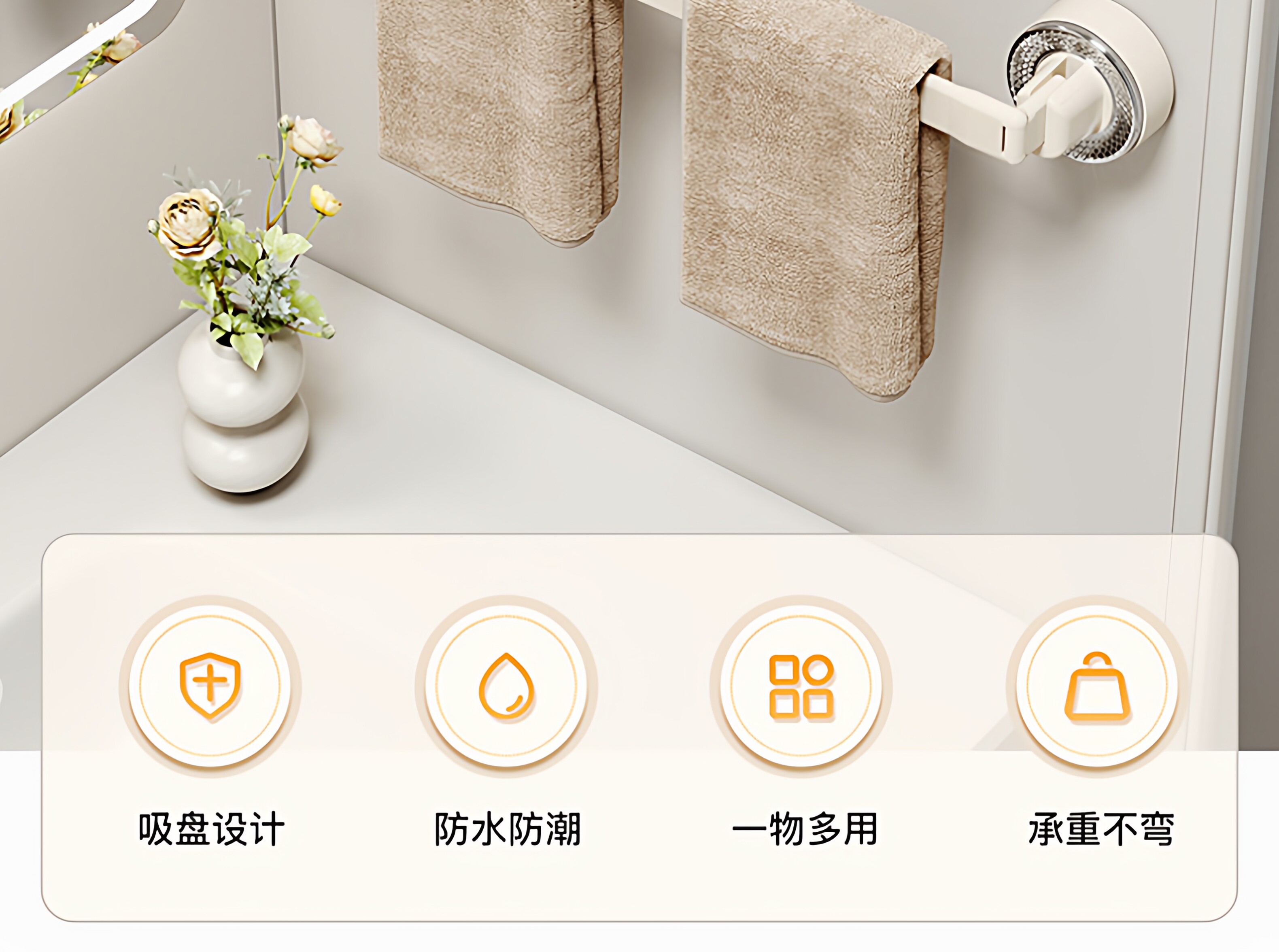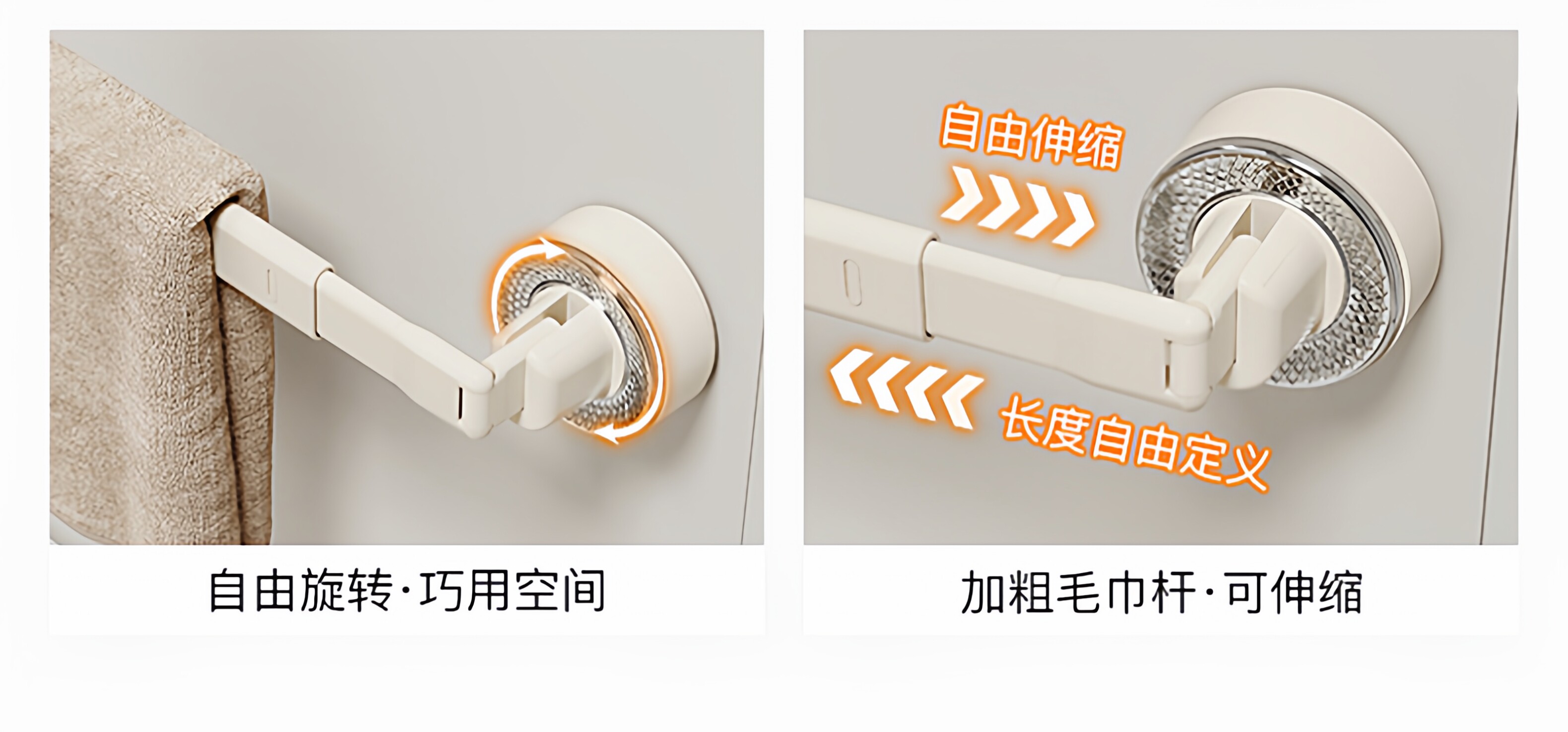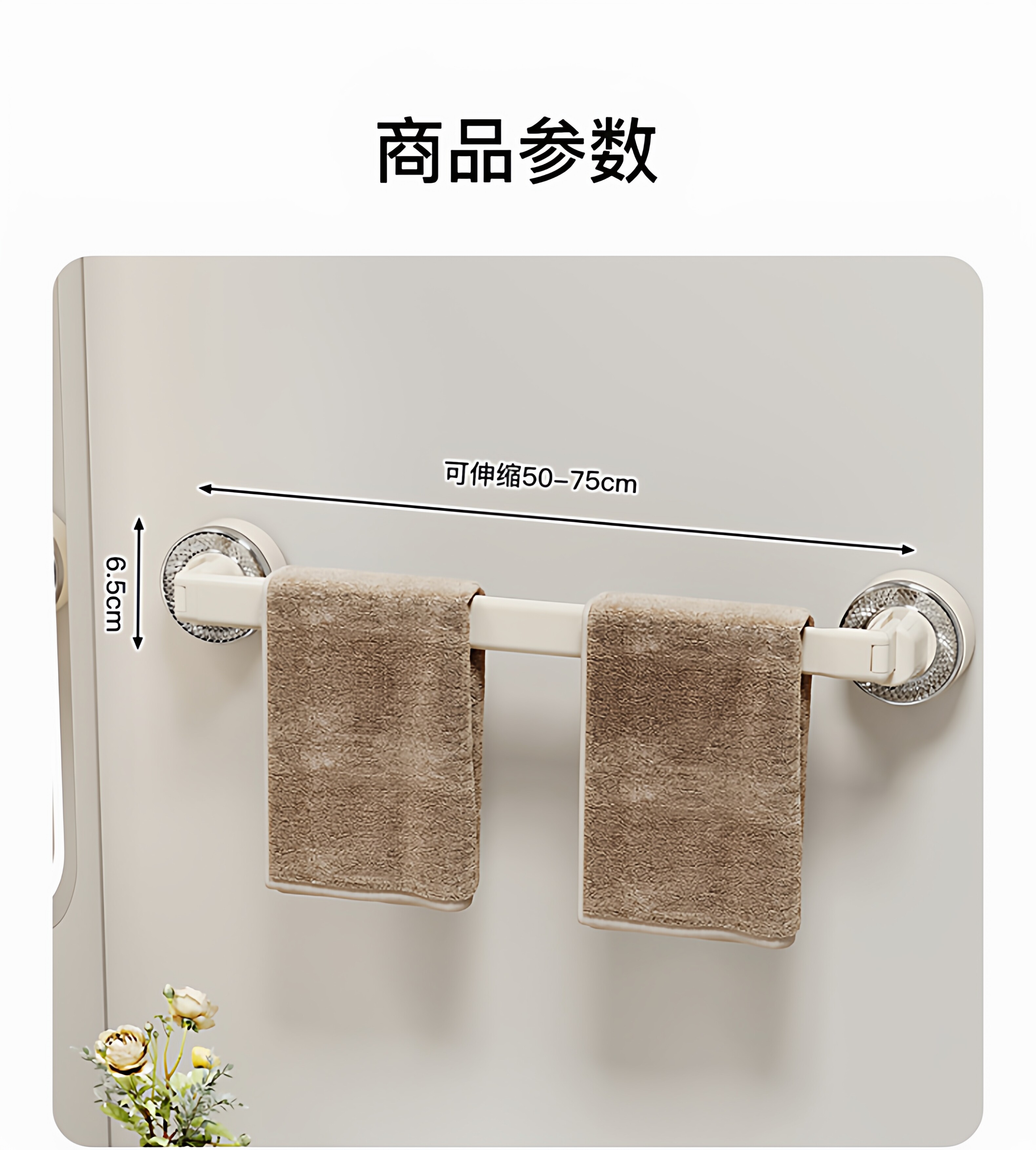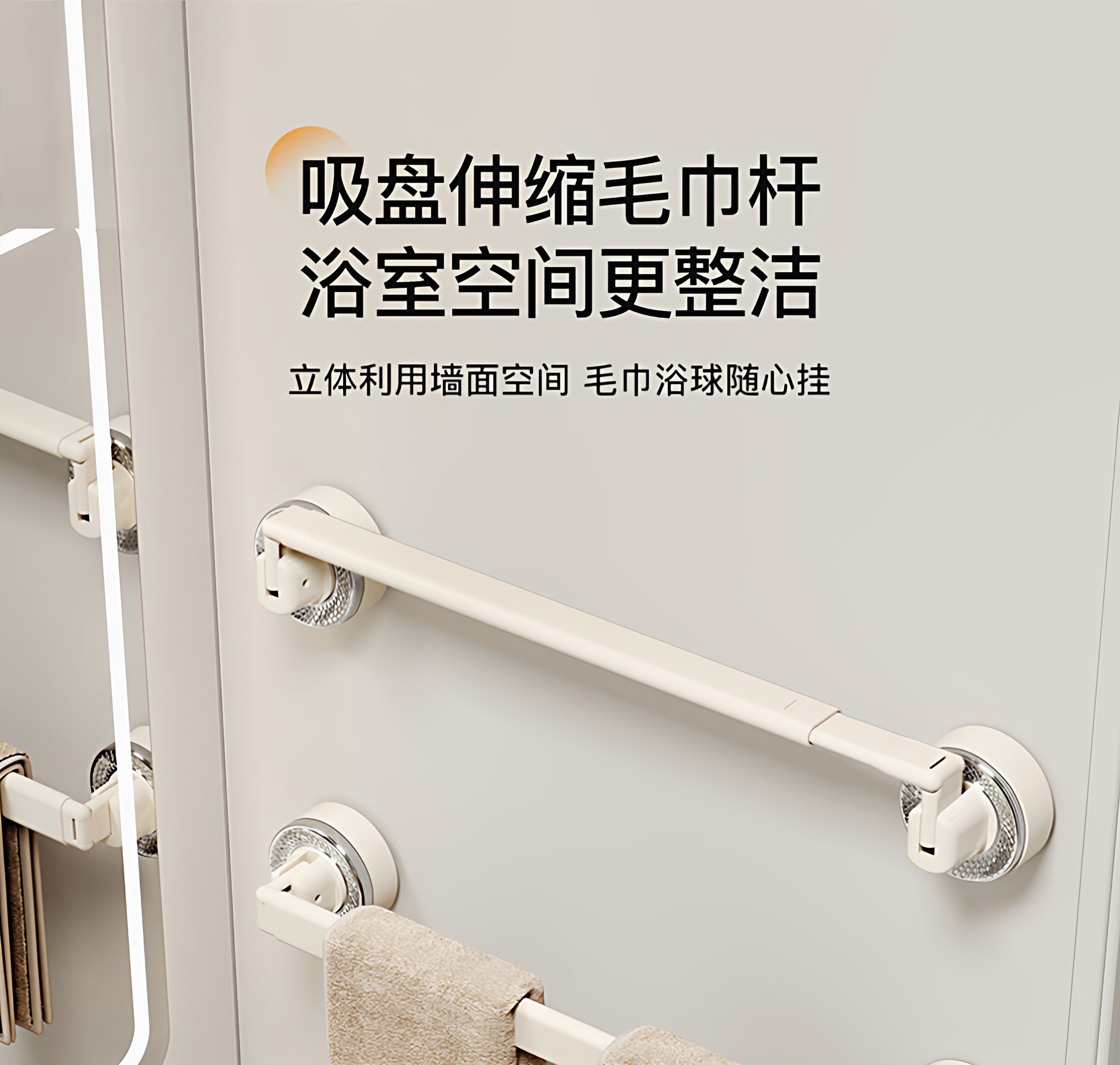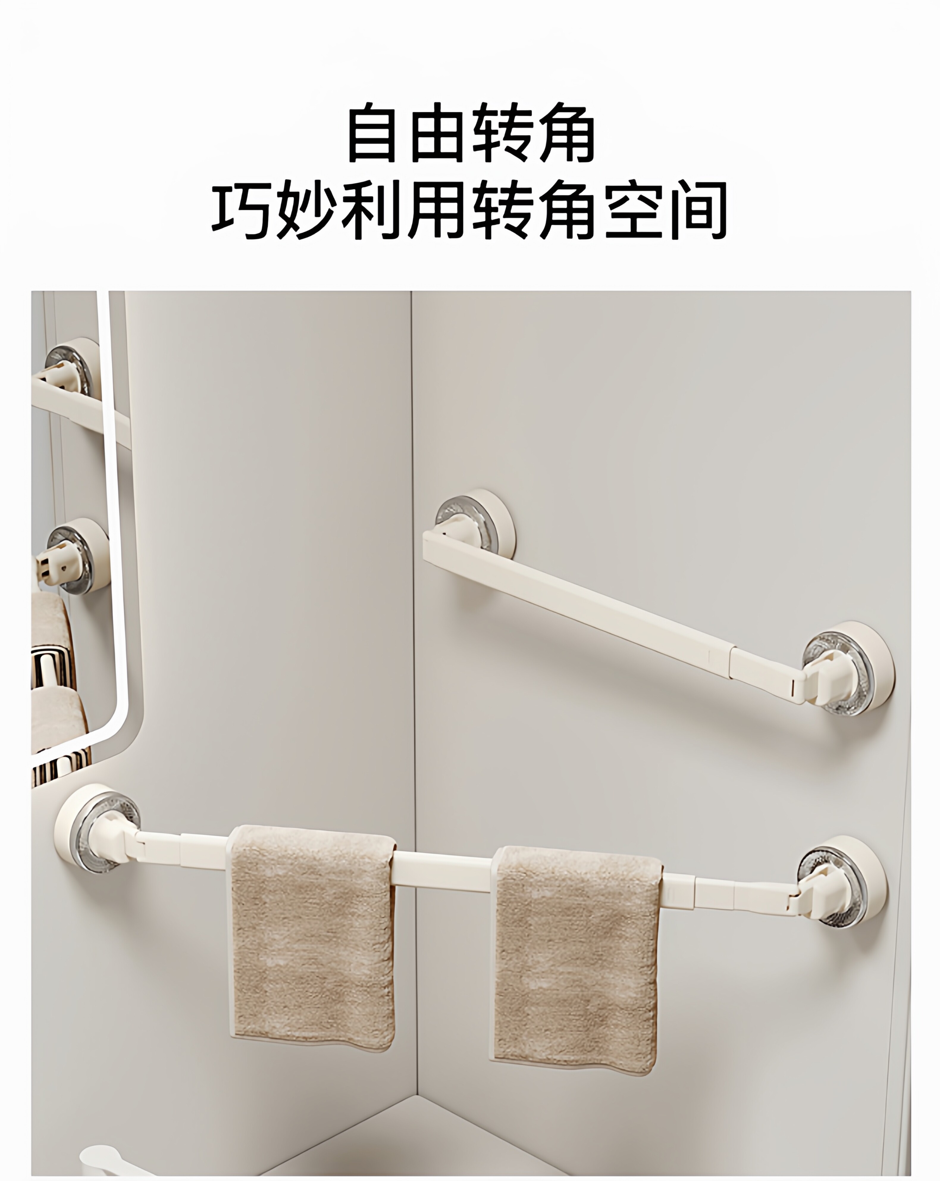 French Ziwoo Suction Cup Retractable Towel Rack Bathroom No-Drill Hanging Rod Bathroom Storage Shelf Wall-Mounted