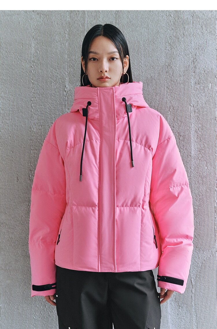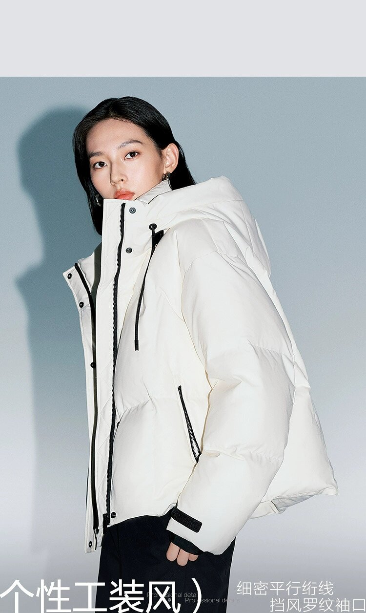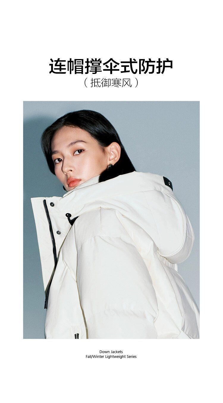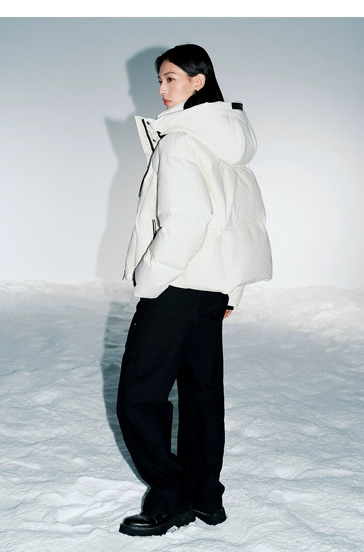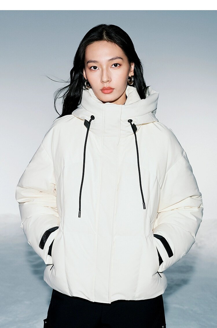 Peacebird Women's Short Color-Block down Jacket 2024 Winter New Hooded Warm Puffer Coat Loose Fashionable Outerwear