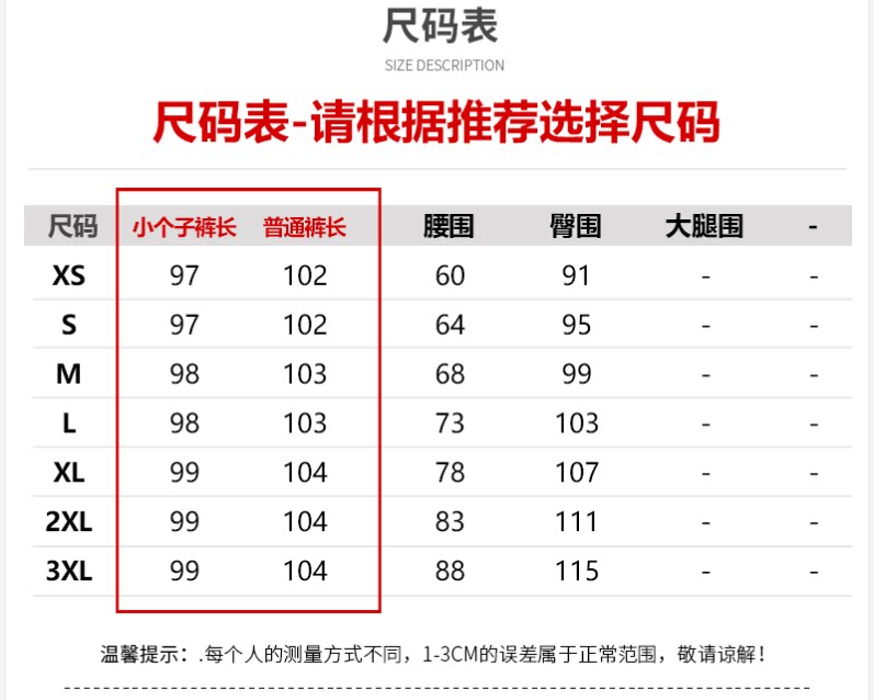 Outseam (cm) 99 cm 101.5 cm 104 cm 106.5 cm 109 cm