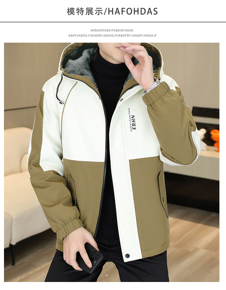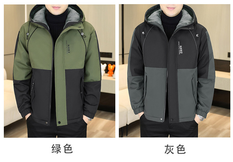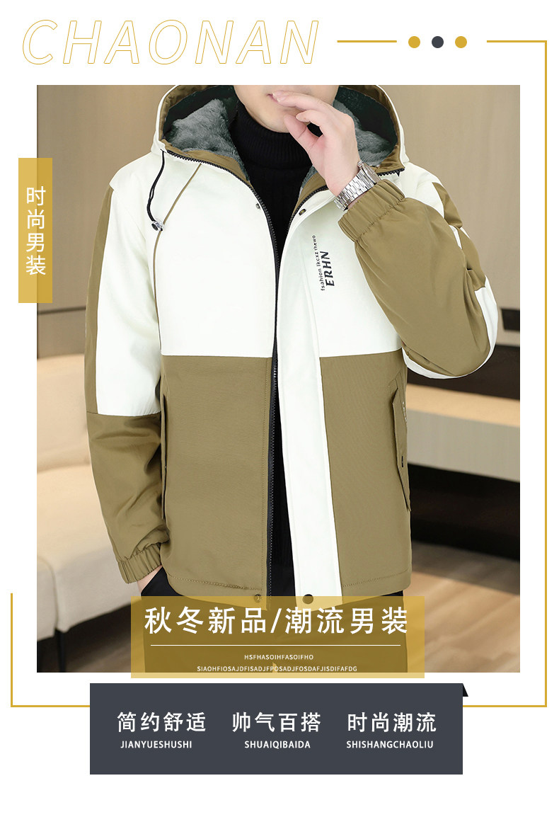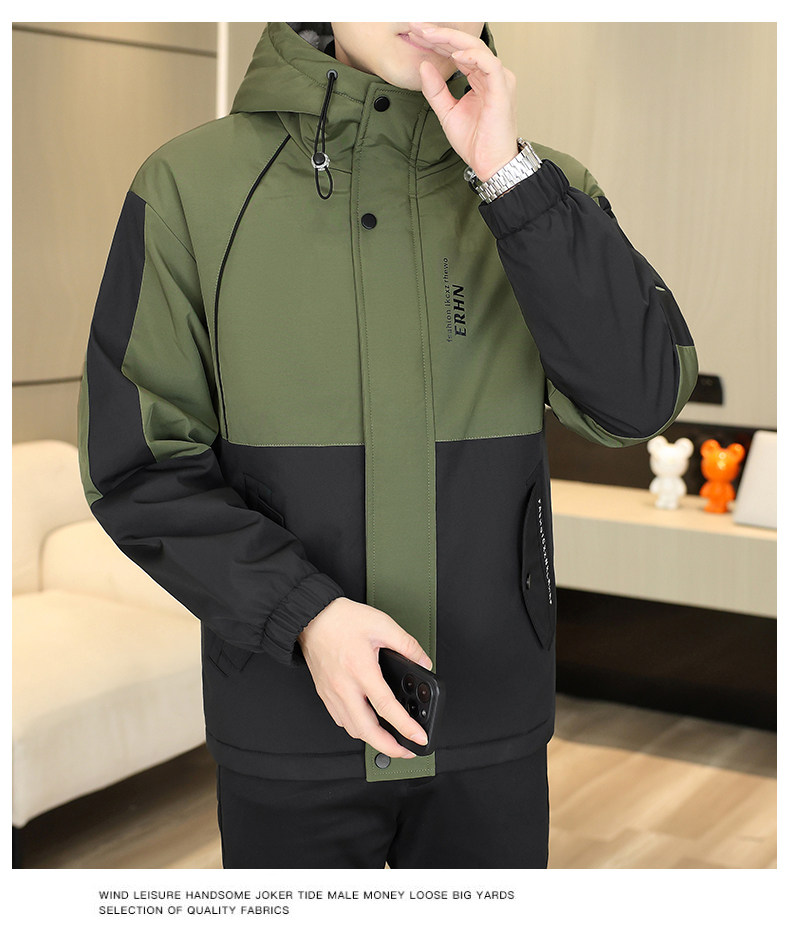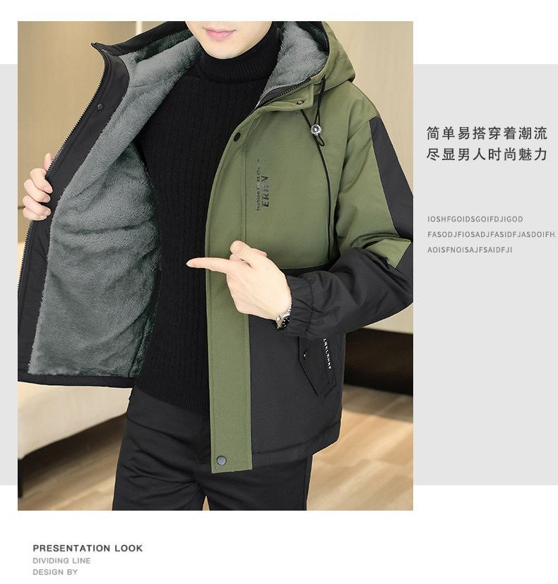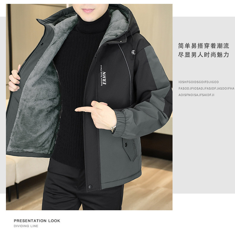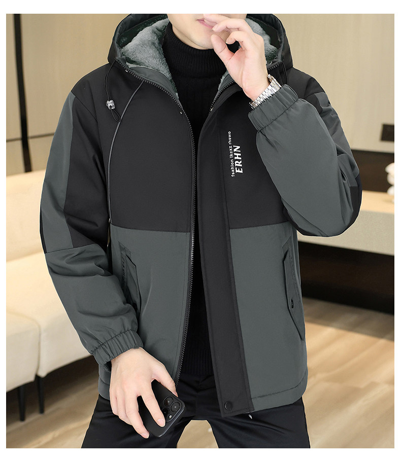 Winter Youth Fleece-Lined Thickened Men's Hooded Jacket, Hong Kong Style Trendy Versatile Loose-Fitting Student Warm and Cold-Proof Coat