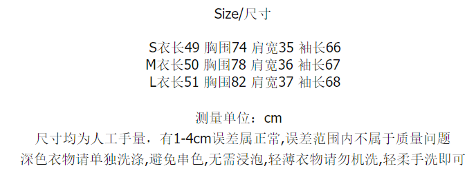 Size (cm) 42 44 46 48 50