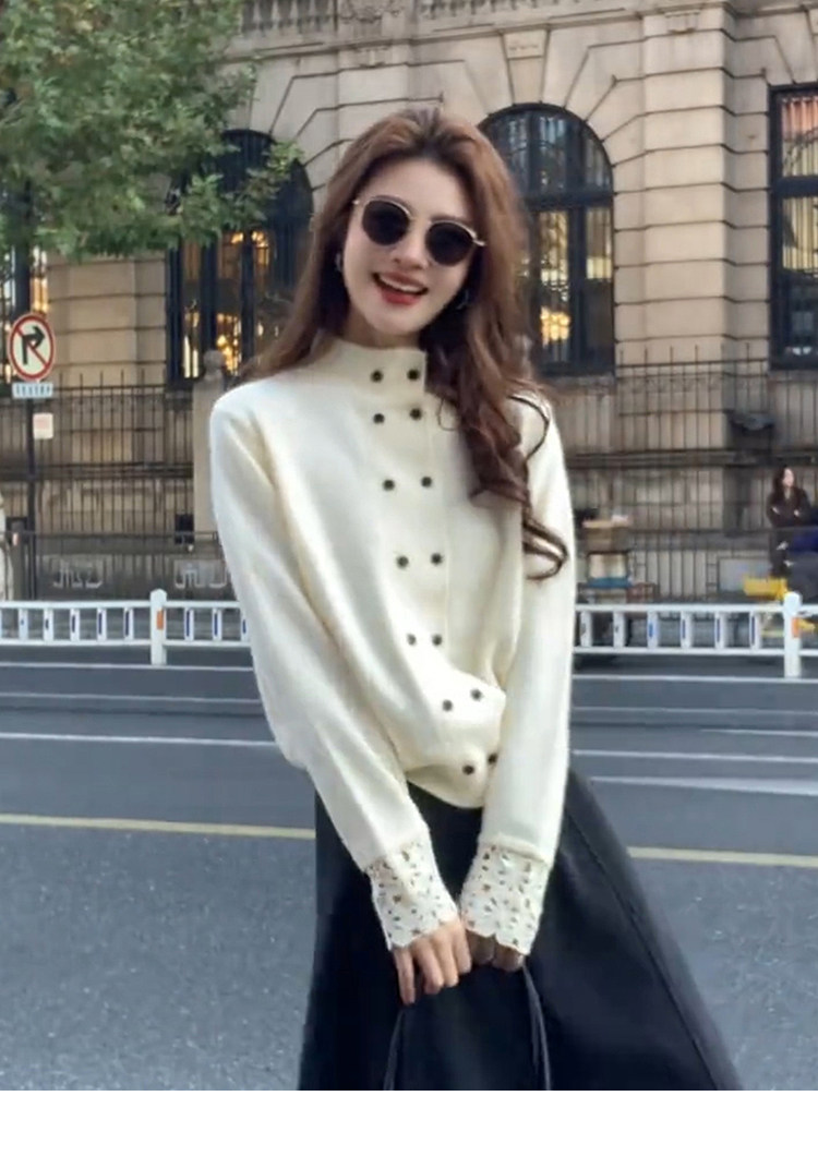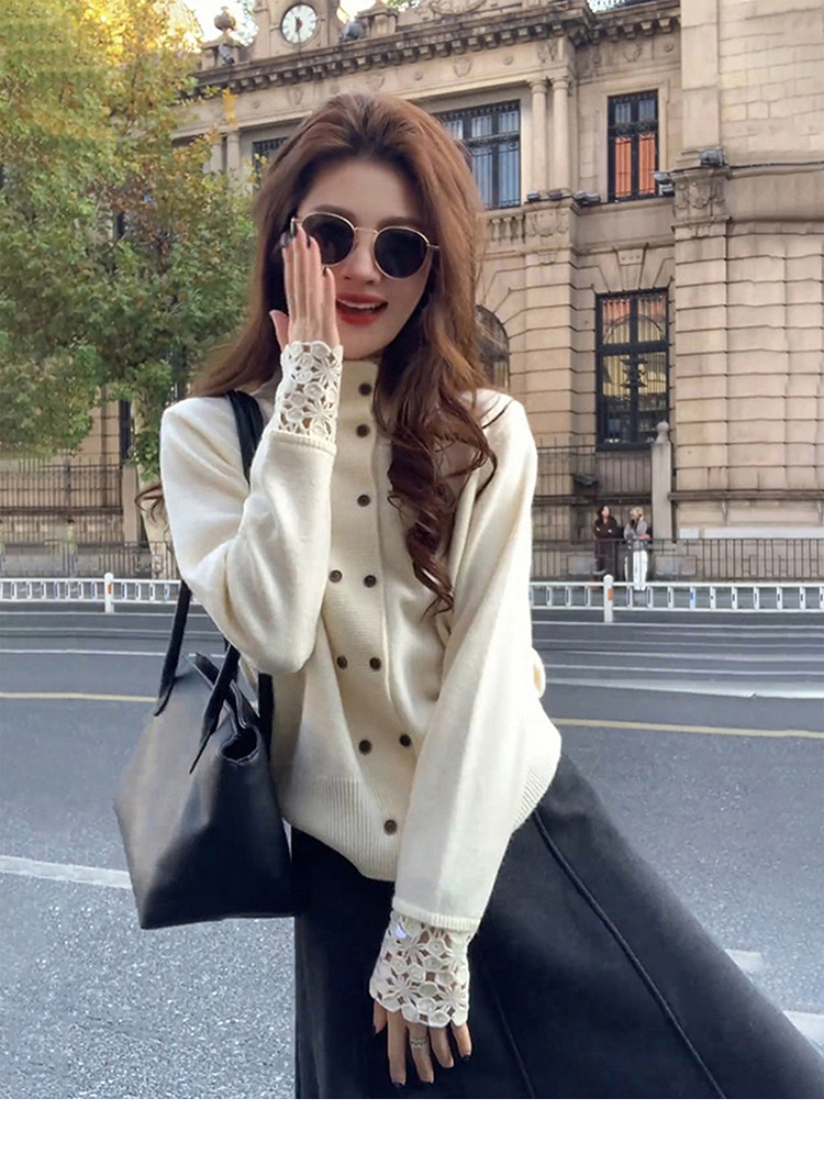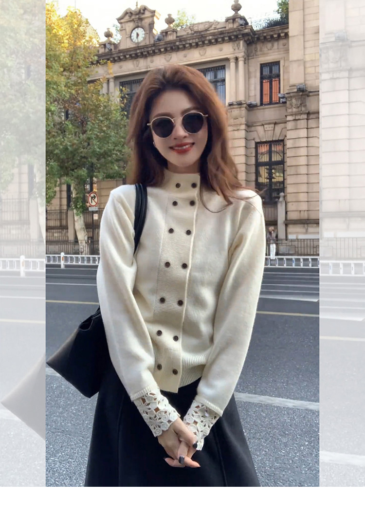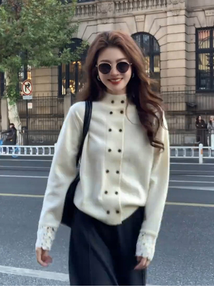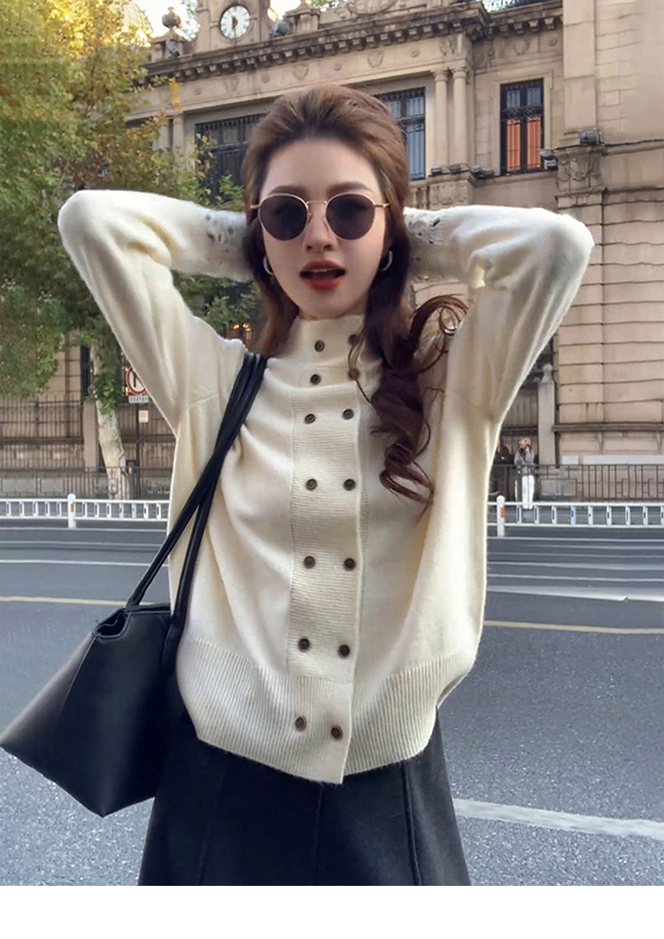 Korean-Style White Half-Turtleneck Knitted Cardigan for Women, Autumn and Winter Soft Sweater with Double-Breasted Design, Suitable for Layering or Wearing as an Outerwear