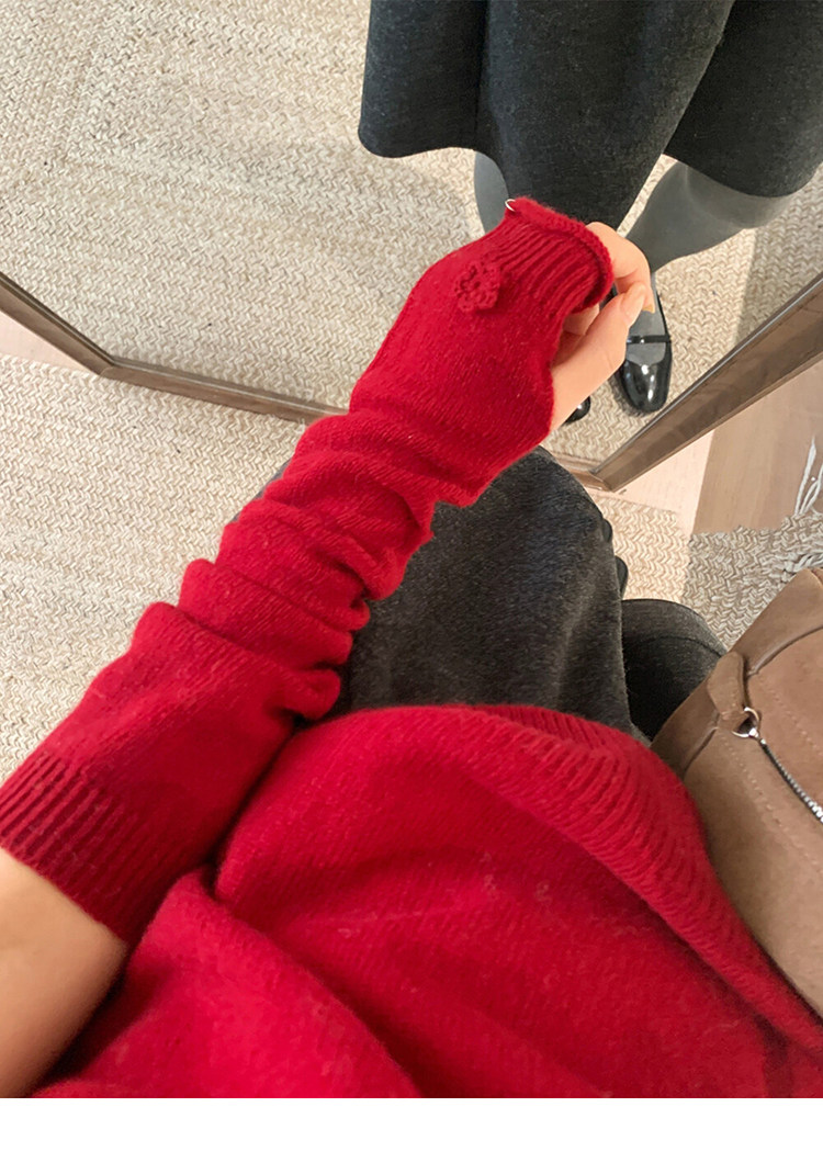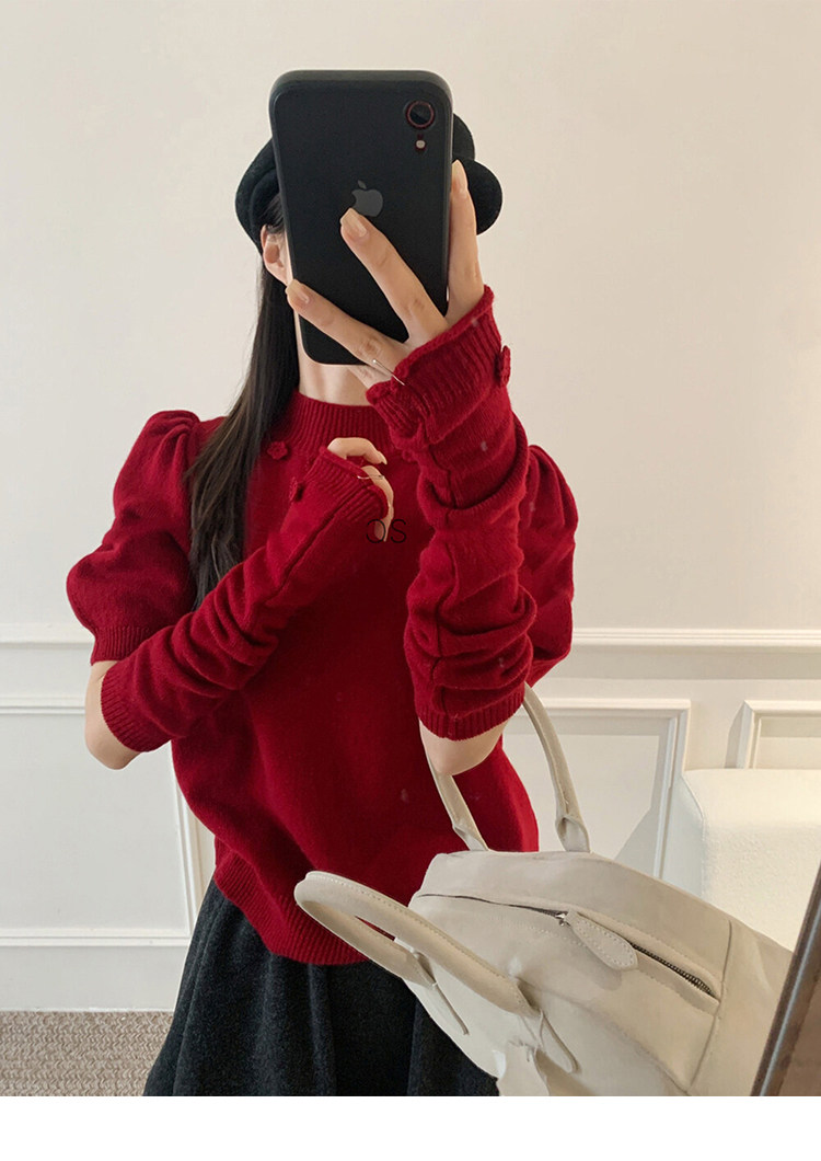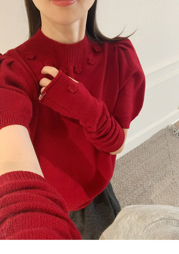 Beautiful Half-High Collar Crochet Knit Sweater for Women, Autumn and Winter Base Layer Sweater with Sleeve Cuffs, Festive Red Top for the New Year