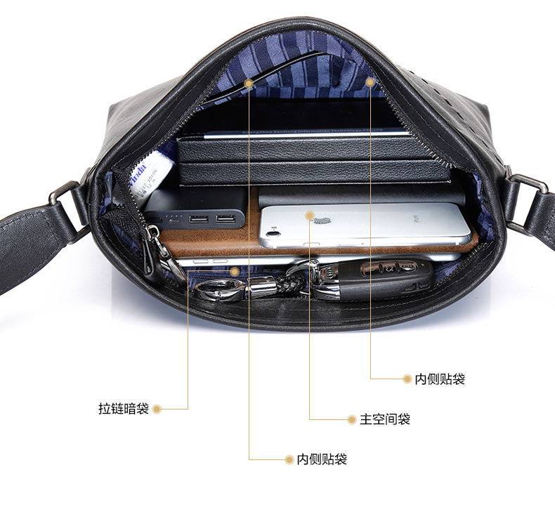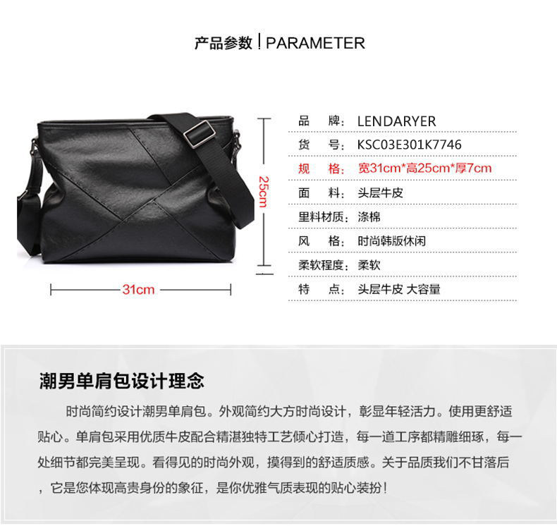 Lendaryer Single Shoulder Bag for Men, Genuine Leather, Classy Business Casual, Daily Multi-Functional, Large Capacity, Fashionable Crossbody Bag