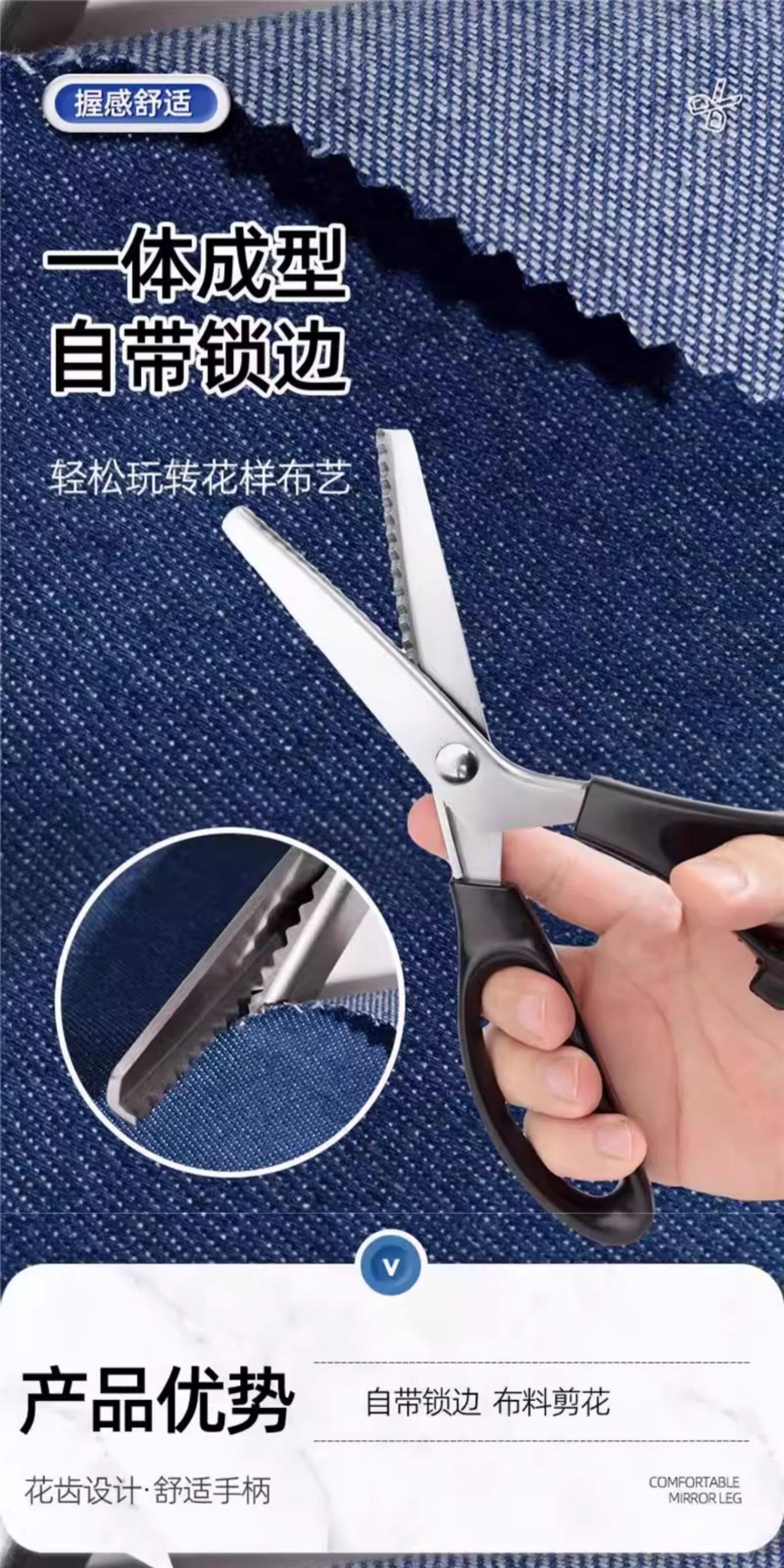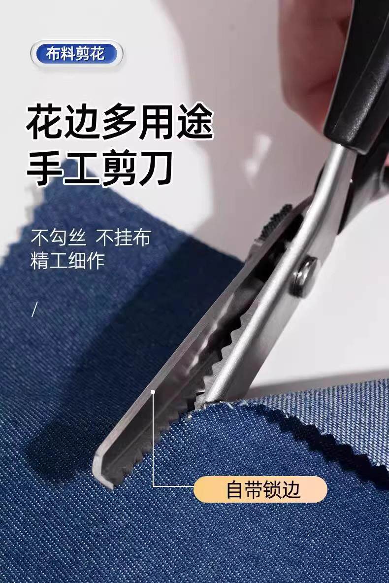 German Precision Tailor Scissors with Triangular Serrated Wave Edges for Handmade Lace, with Built-In Edge-Locking Feature