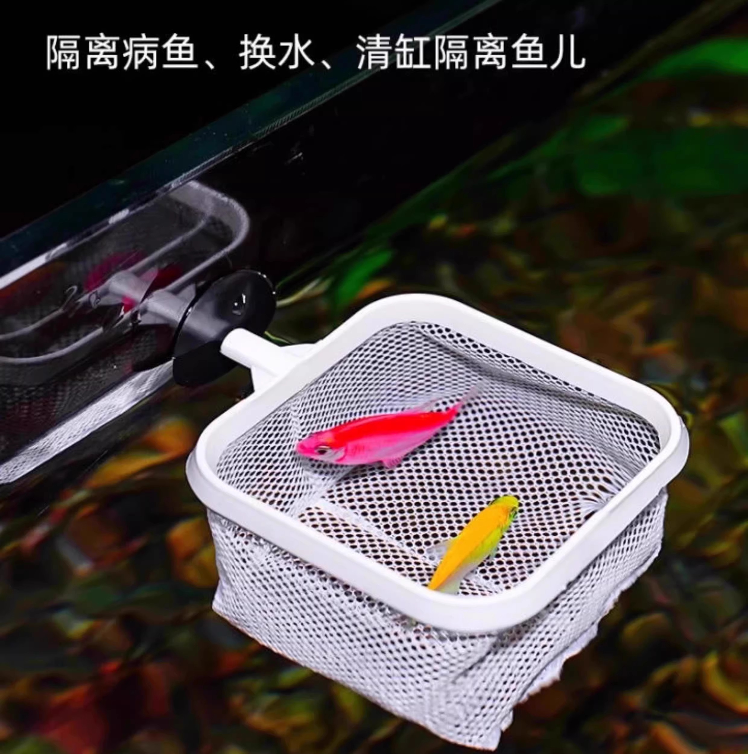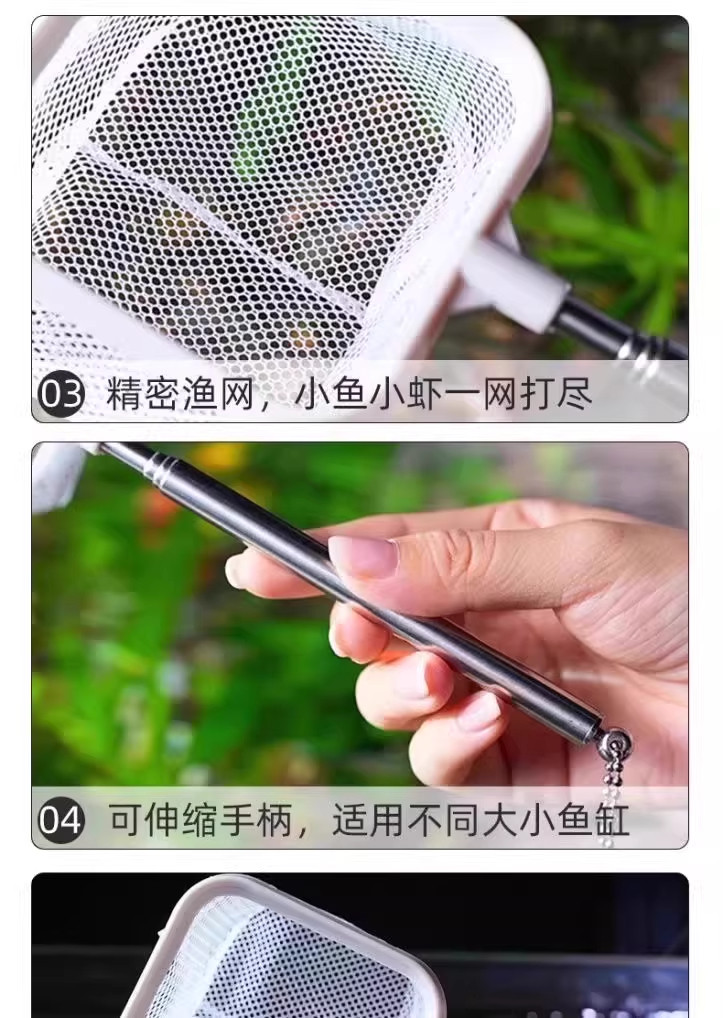 Fish Tank Fishing Net, Telescopic Small Fish Net with Suction Cup, Multifunctional Detachable Net, Ornamental Fish Isolation Net