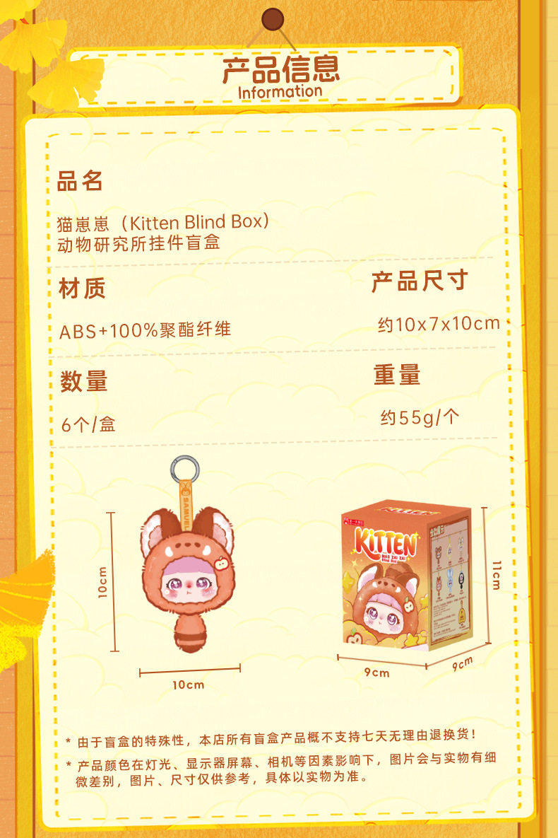 Kitten Animal Research Institute Plush Pendant Blind Box Doll Keychain Gift for Girls