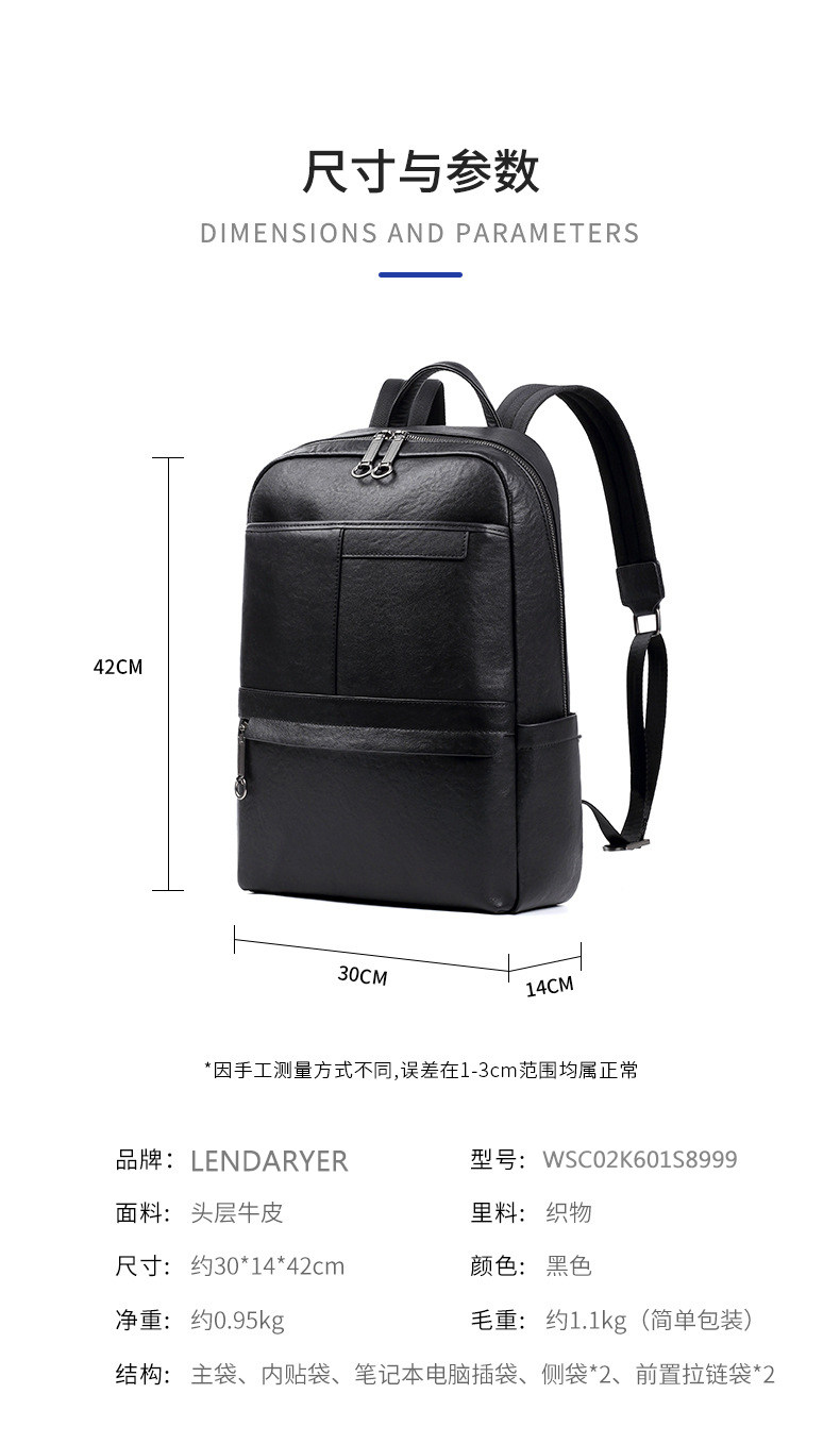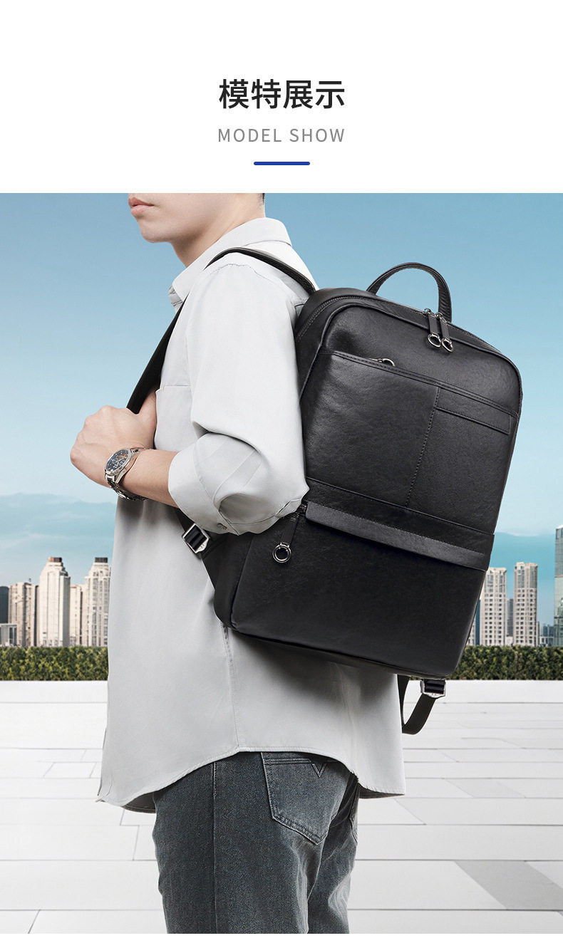 Lendaryer Business Backpack for Men, High-End Genuine Leather, Fashionable and Trendy, High-End Feel, Portable Large-Capacity Computer Bag
