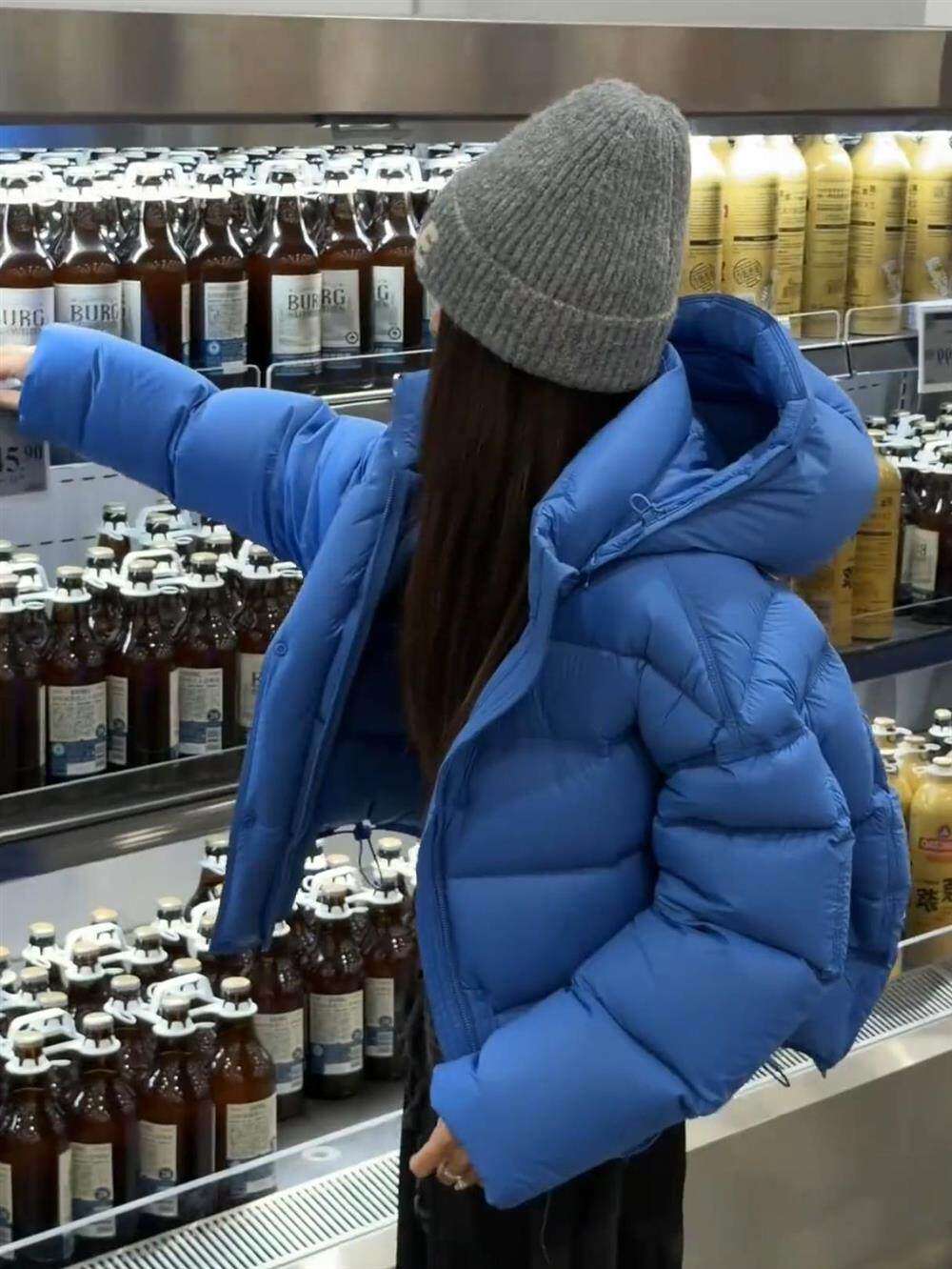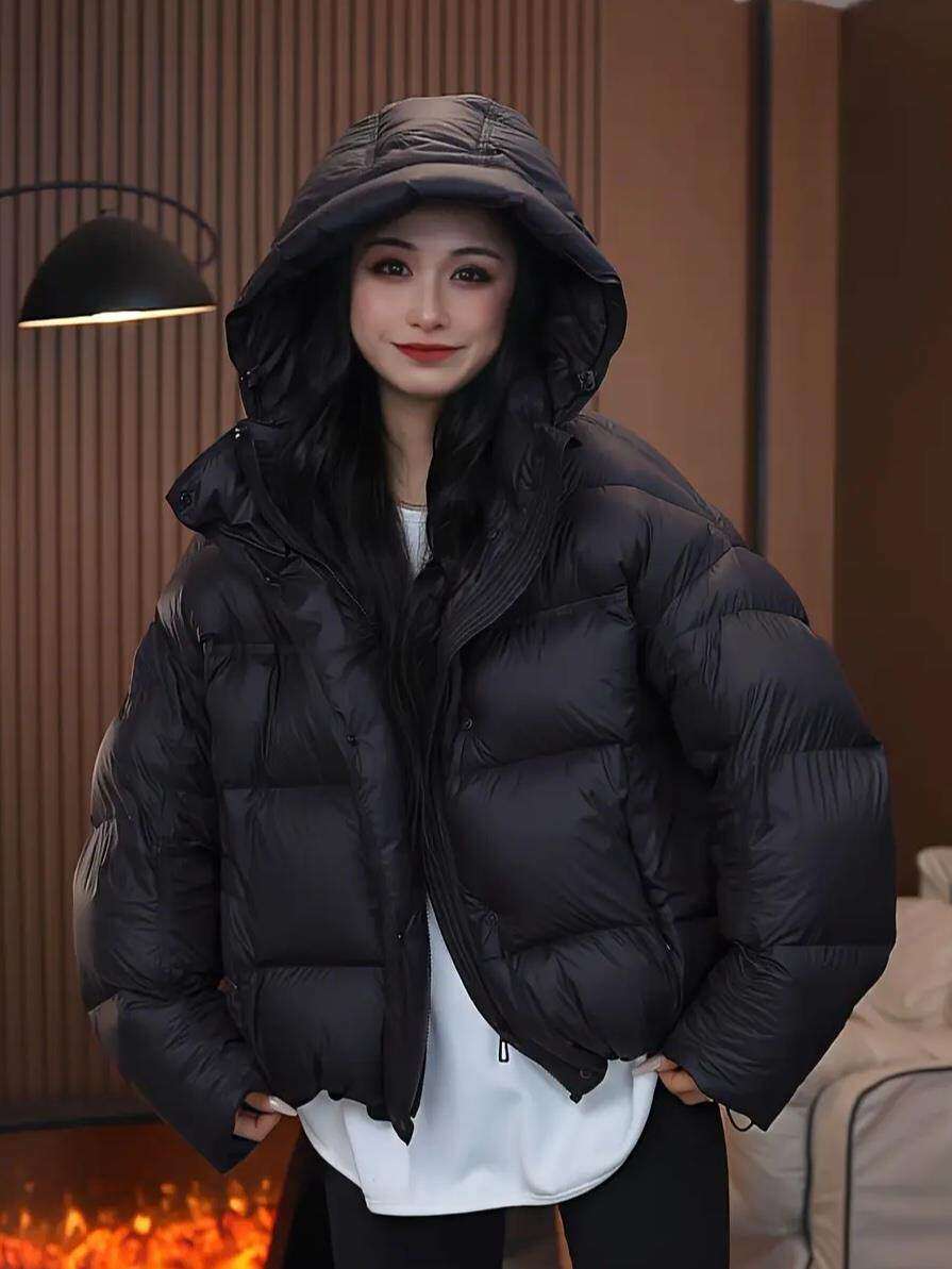 This year's popular blue blue down jacket 2026 winter new women's Korean style puff turtle back hooded cotton jacket