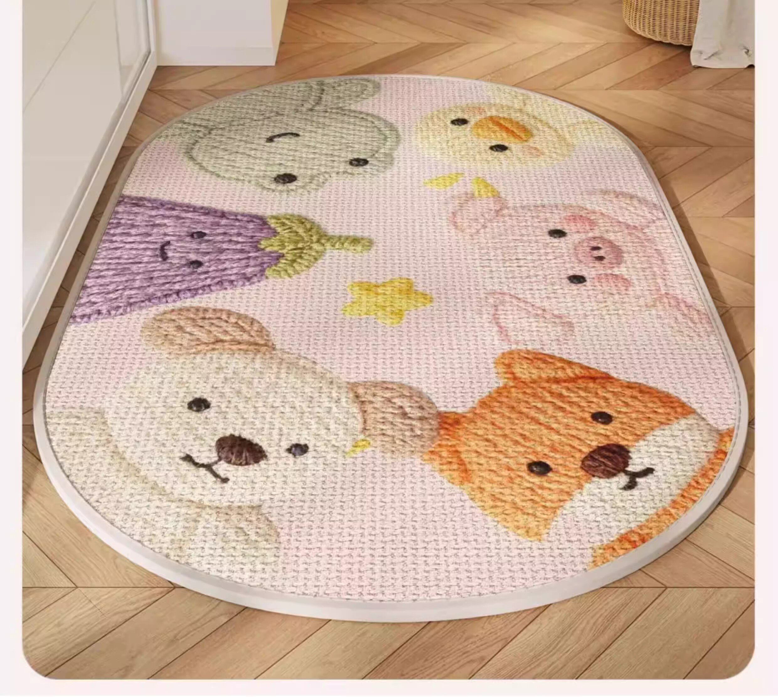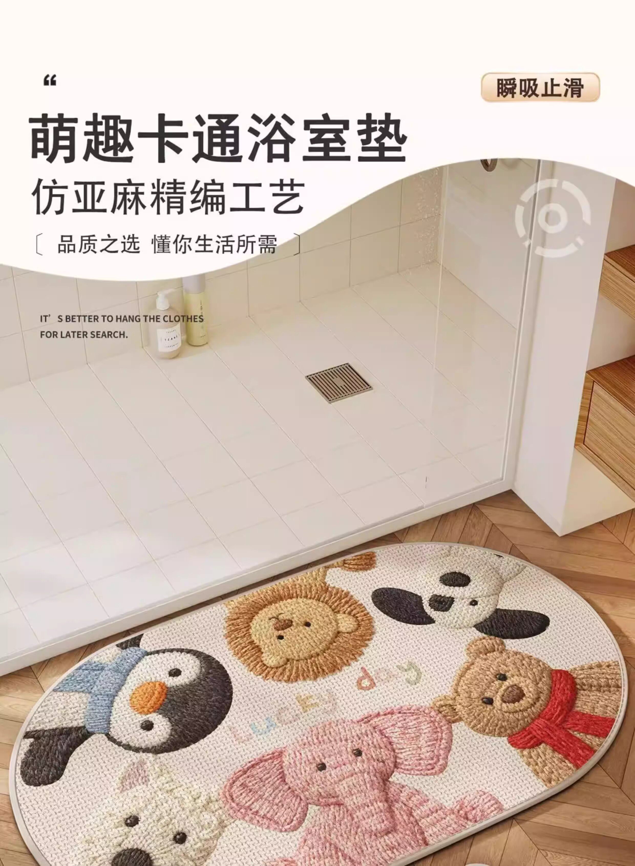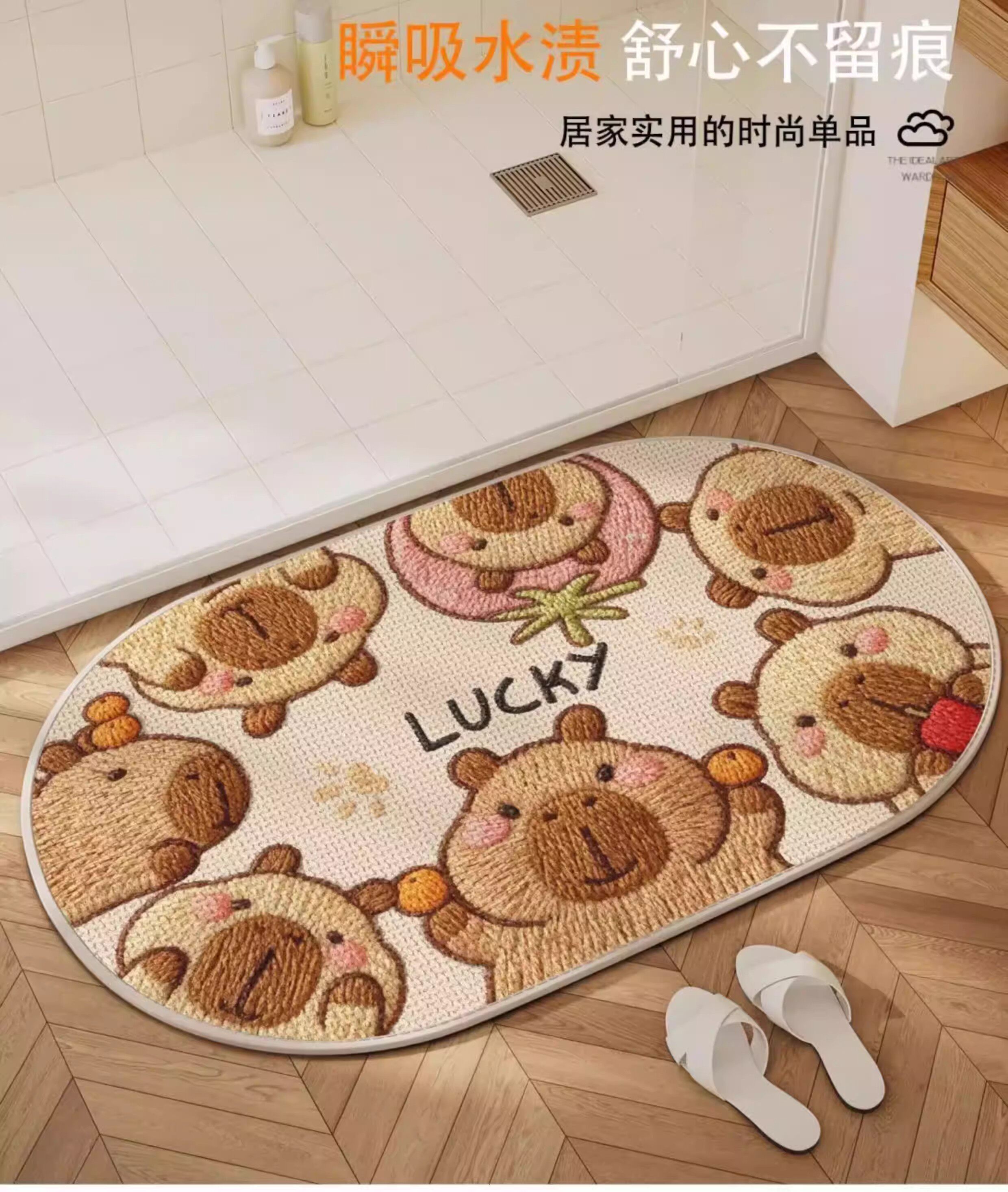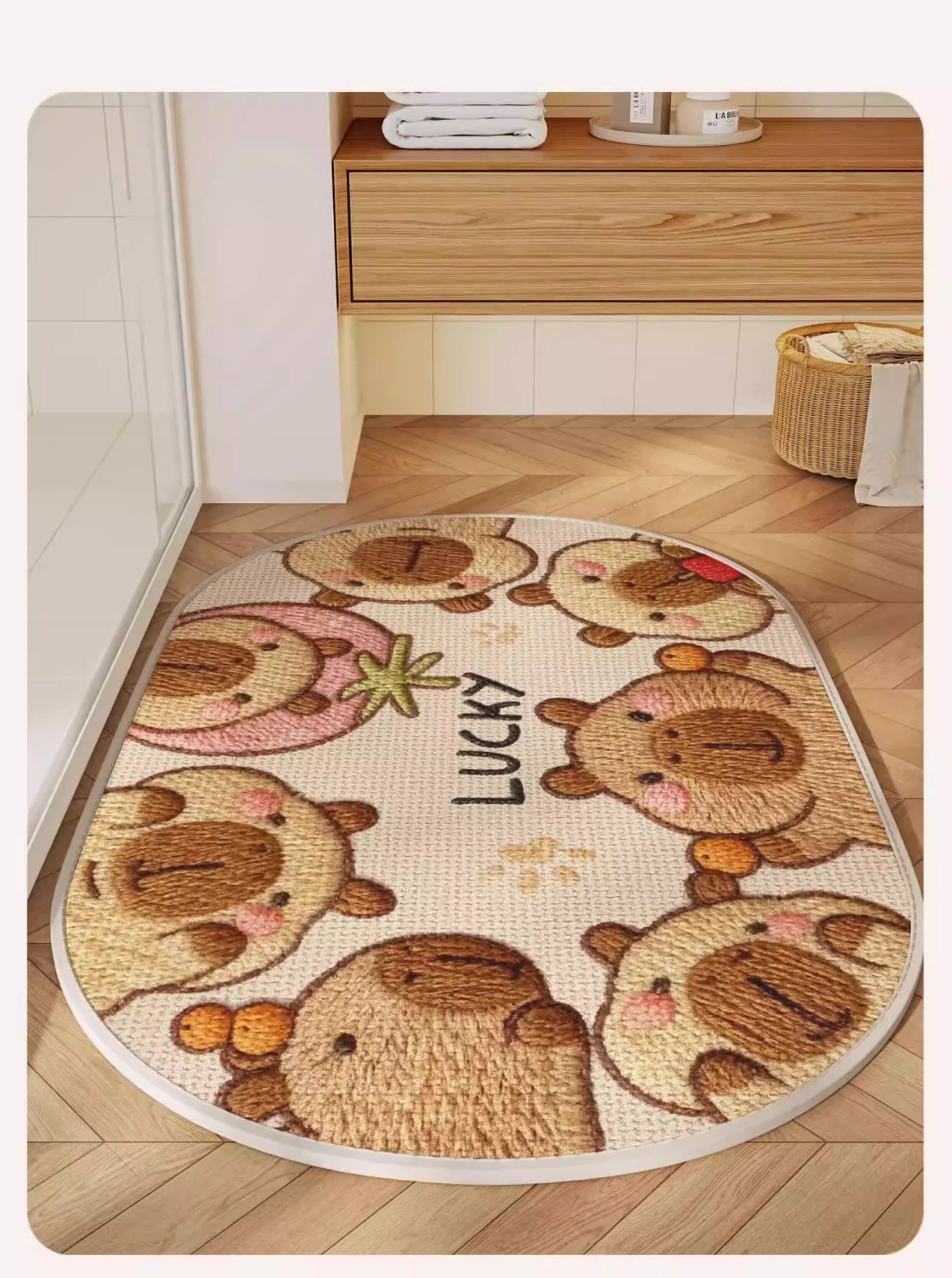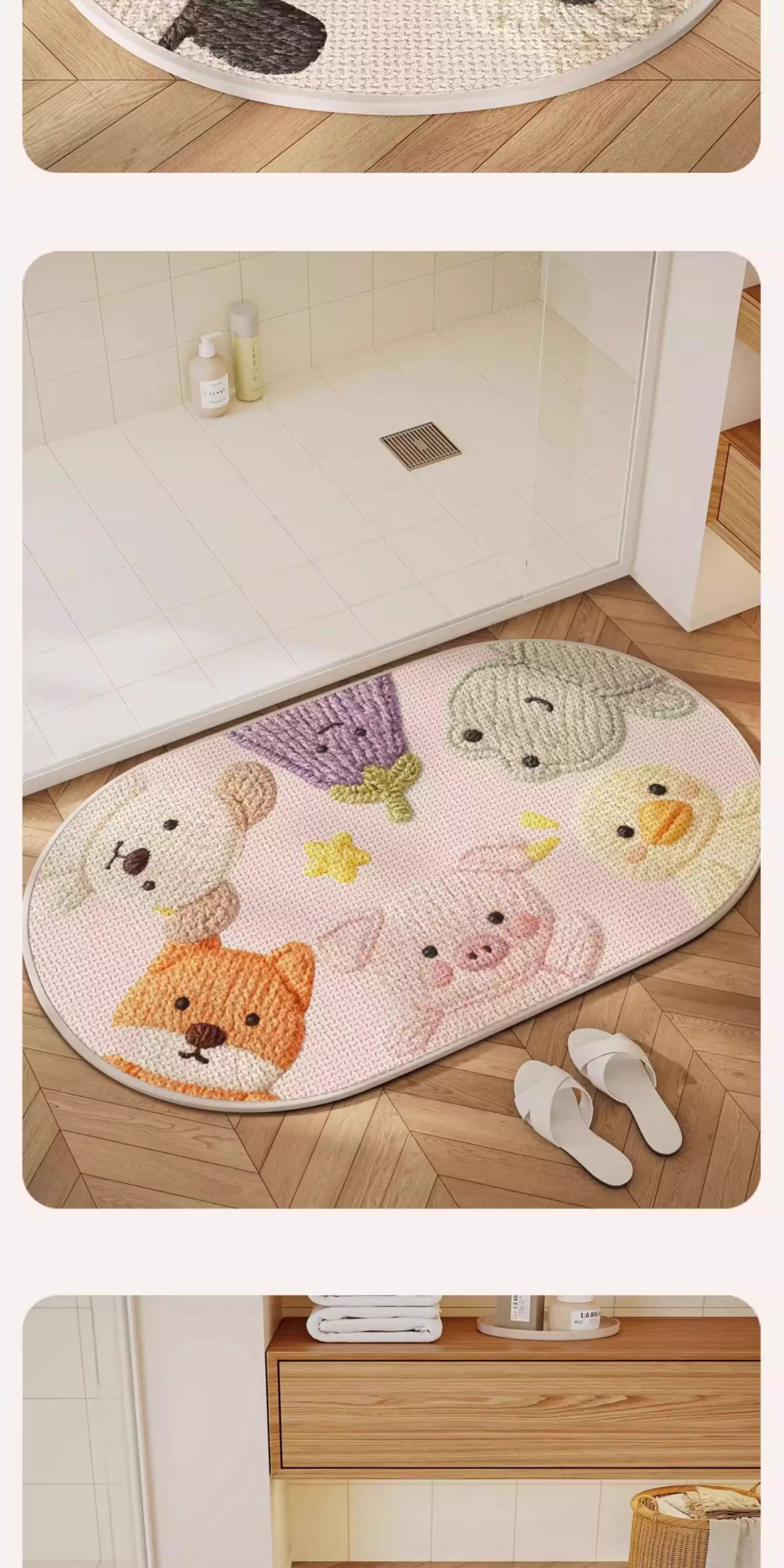German Precision Cartoon-Style Faux Linen Bathroom Mat, Water-Absorbent and Quick-Drying, Non-Slip Doormat for Bathroom Entrance, Household Carpet