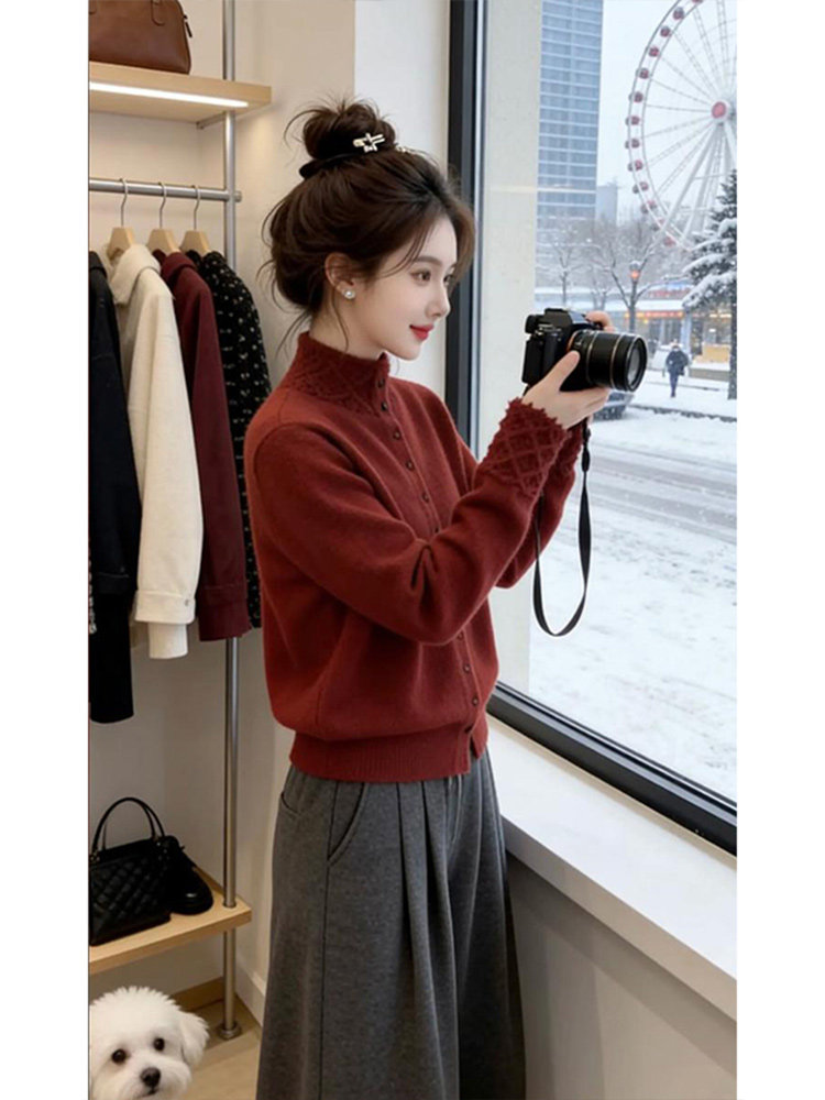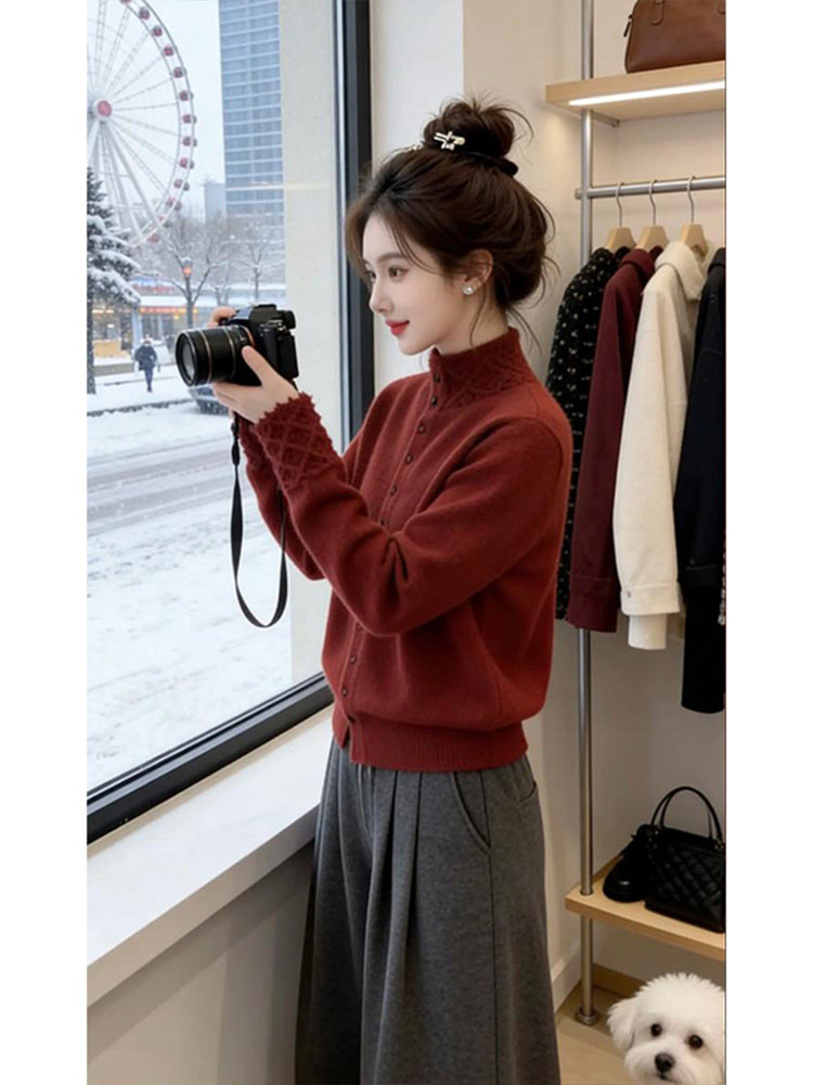 Korean-Style Stand-Up Collar Design, Warm Knitted Cardigan for Women, 2026 Autumn and Winter New Style, Flattering, Versatile, Comfortable Sweater