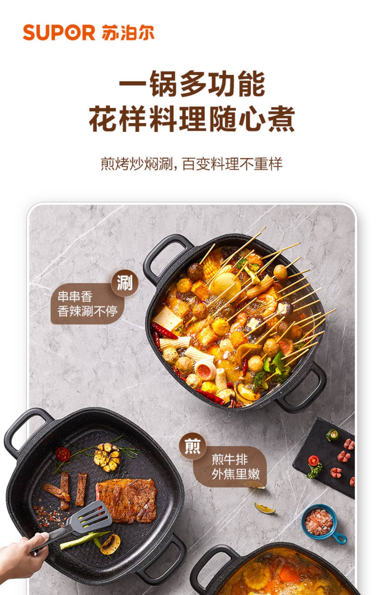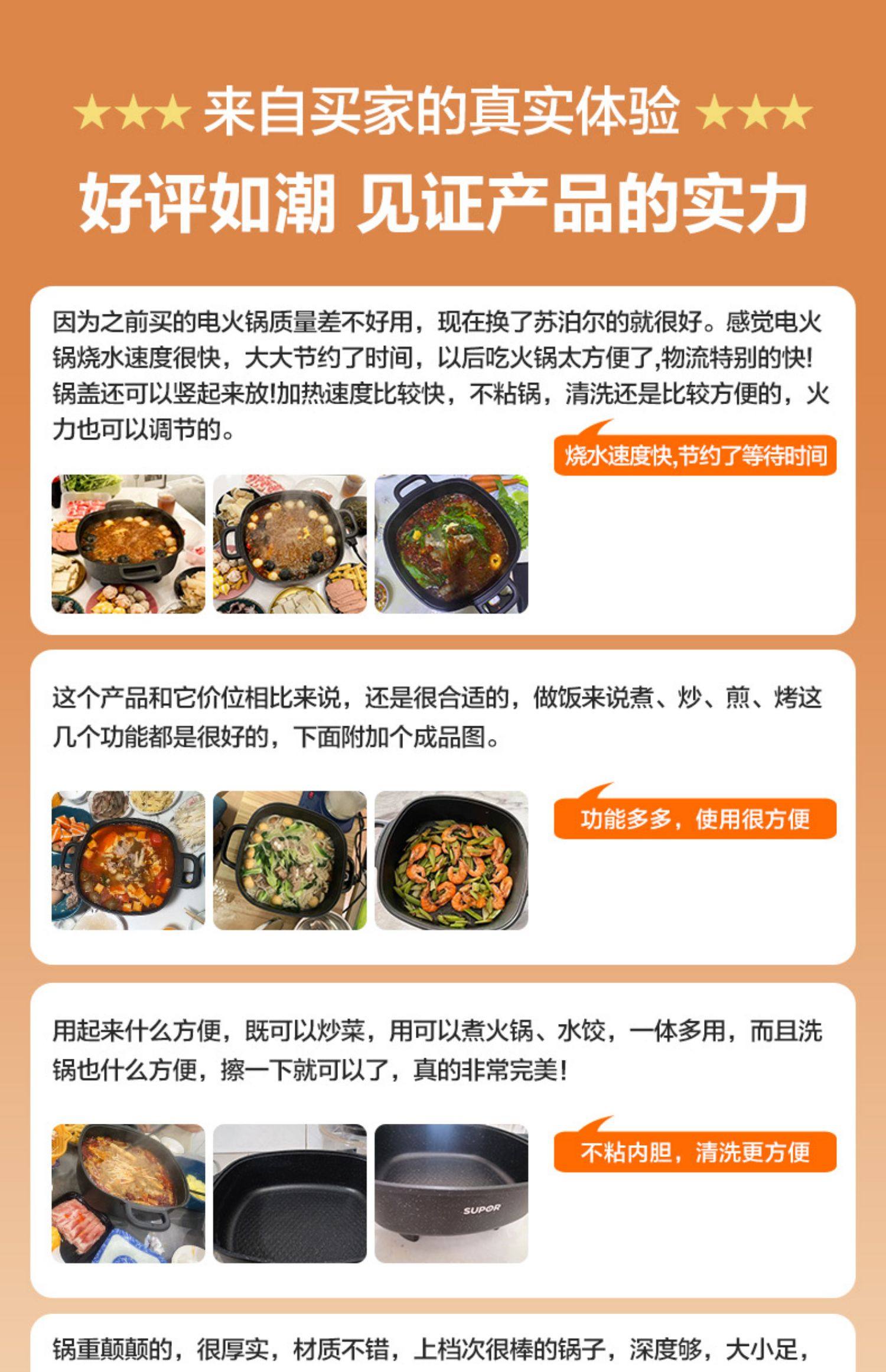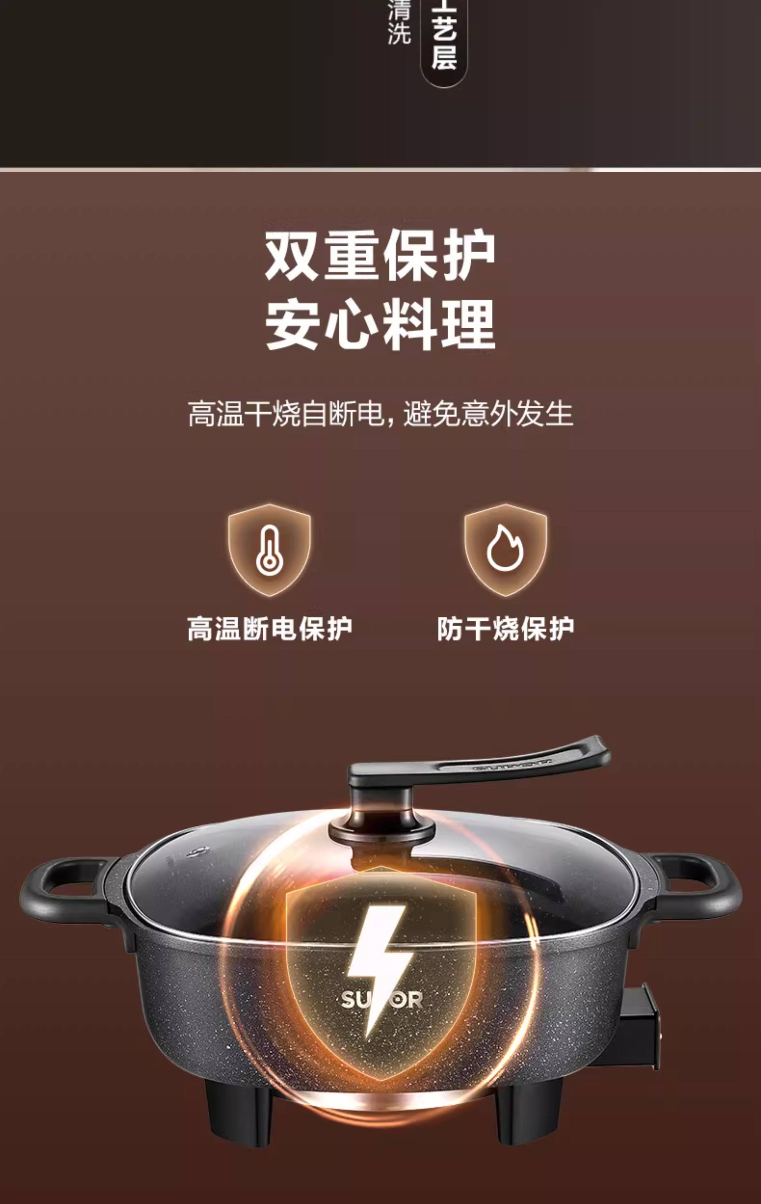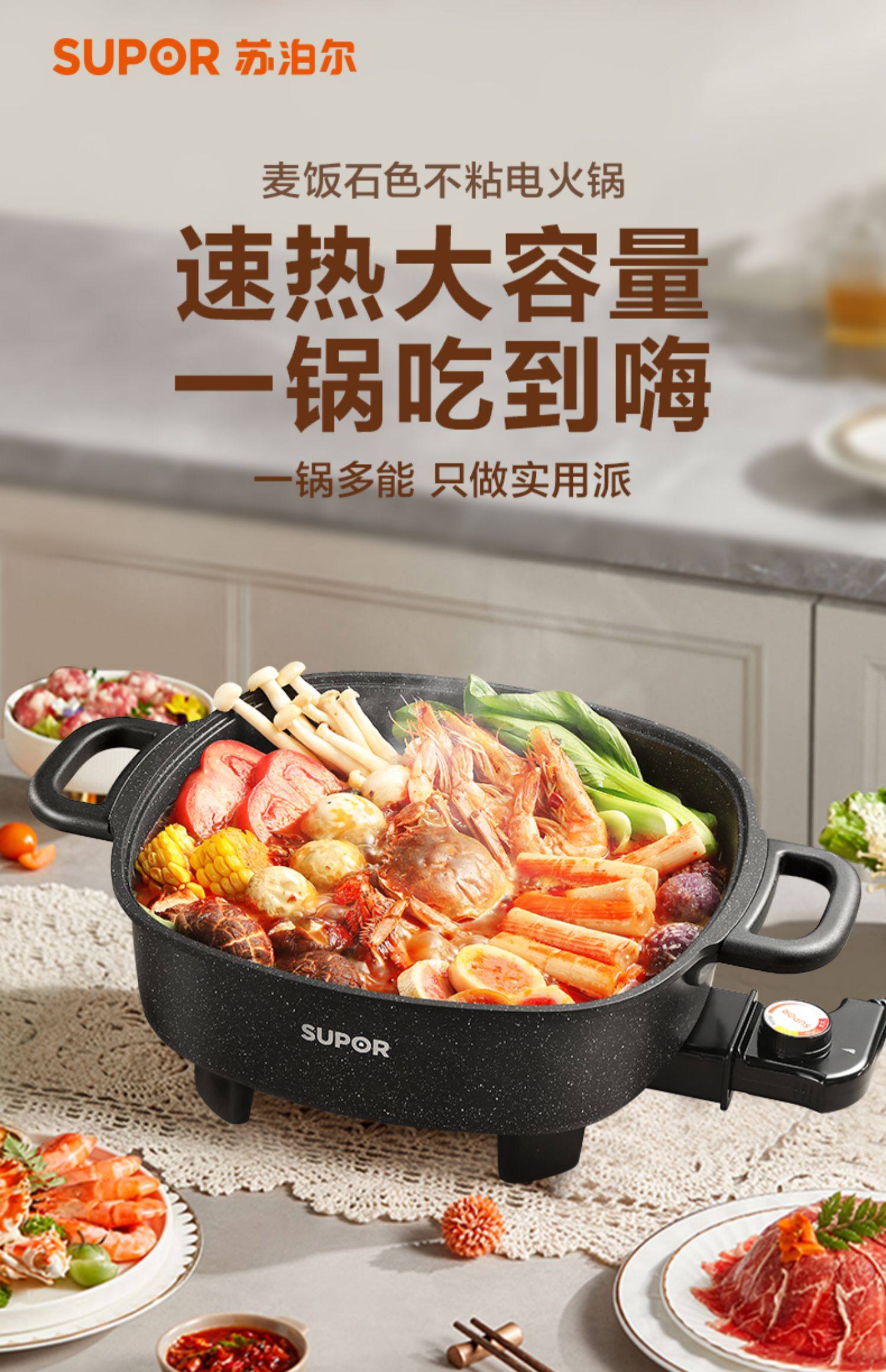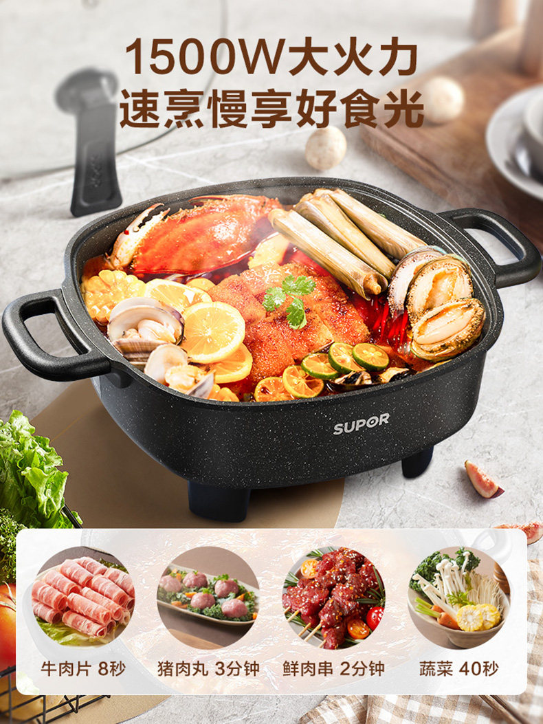 Supor Electric Hot Pot for Home Use, Multifunctional All-In-One Electric Cooking Pot, Electric Hot Pot, Electric Frying Pan, Non-Stick Electric Cooking Pot