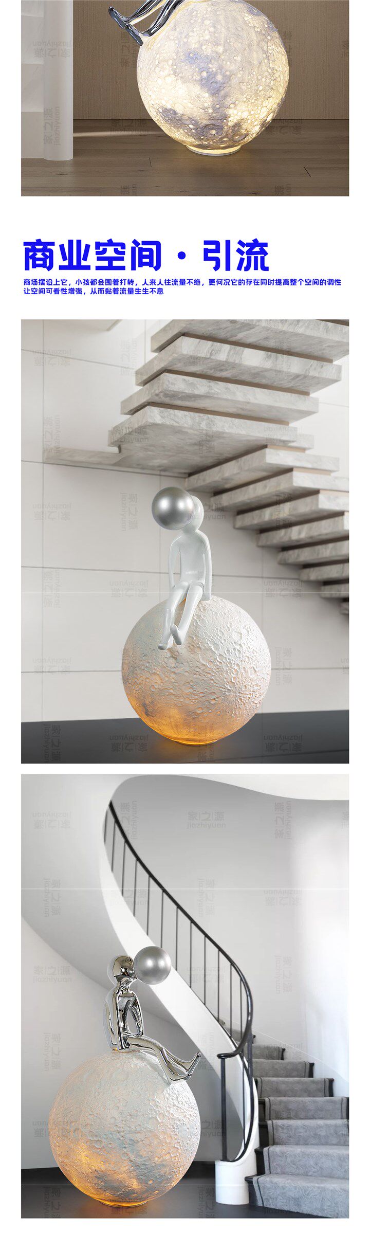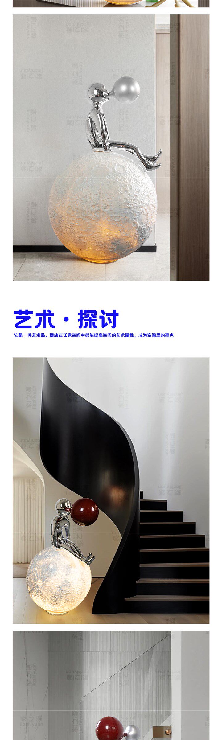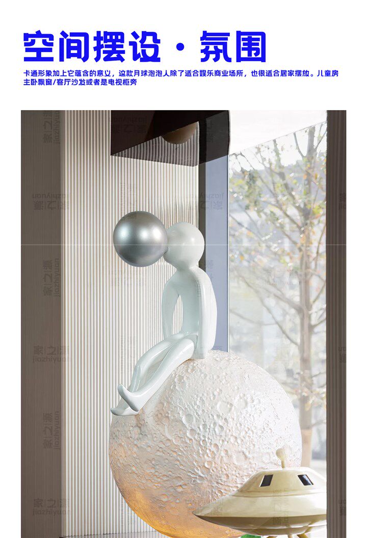 Popular Staircase Moon Ornaments Modern Abstract Floor-Standing Figure Blowing Bubbles Sculpture for Living Room, Bar, Ktv, Light Luxury