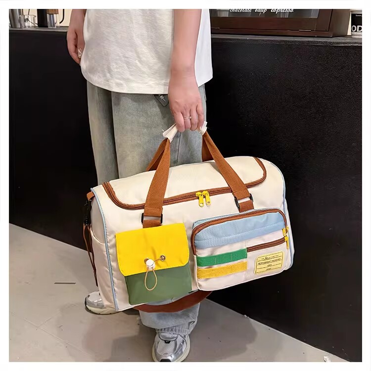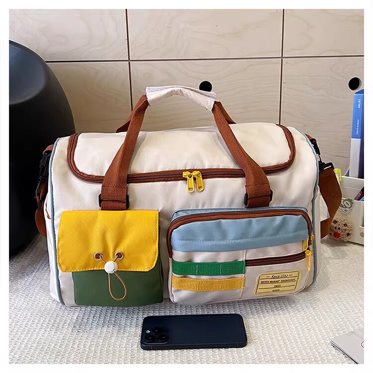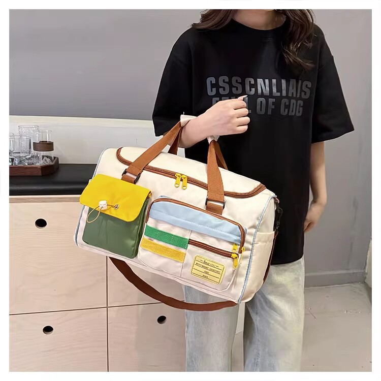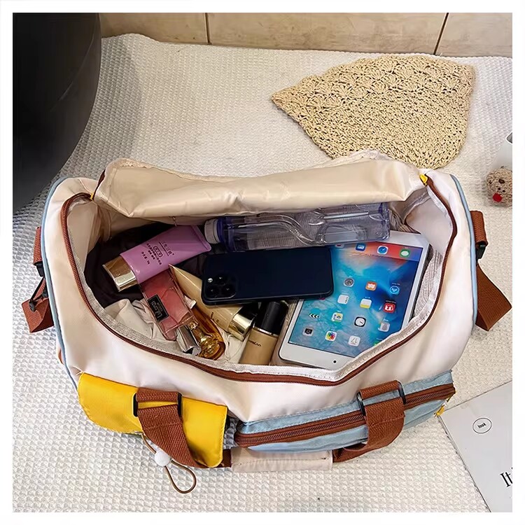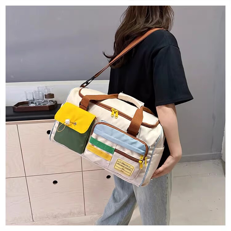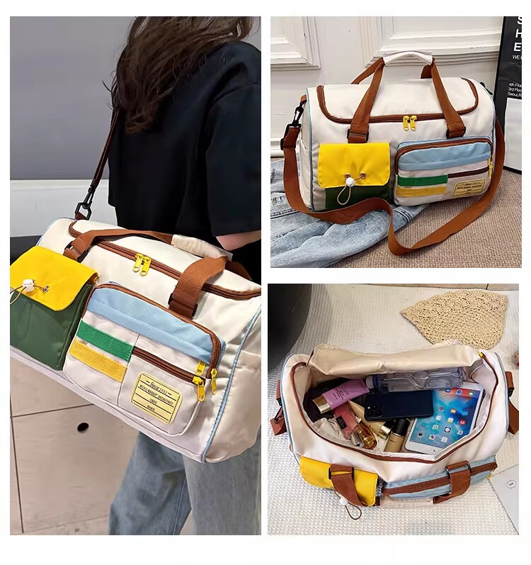 Dopamine Contrast Color Travel Bag Women's Contrast Color Can Set Trolley Case Boarding Fitness Yoga Bag Commuting Storage Shoulder Bag