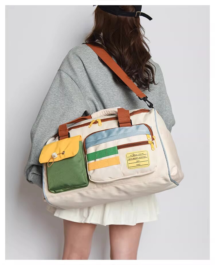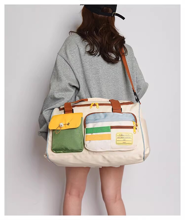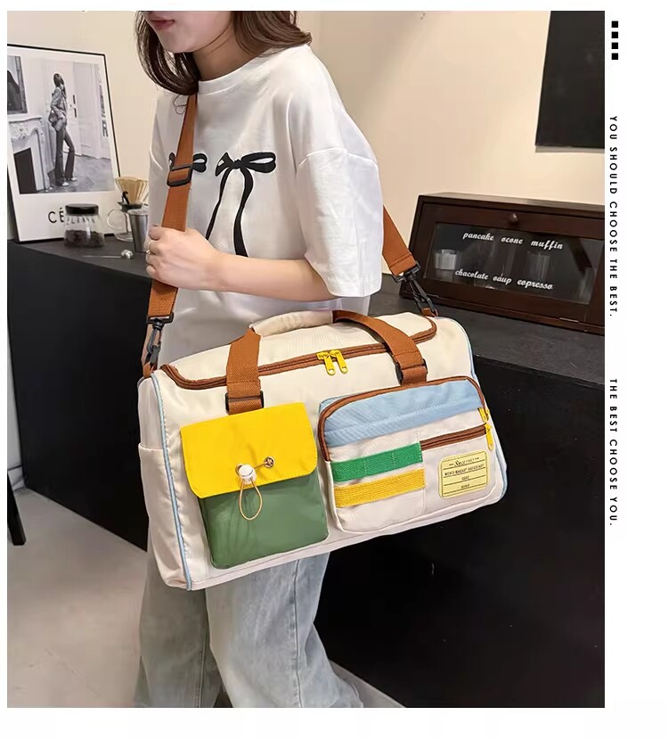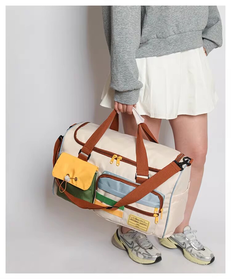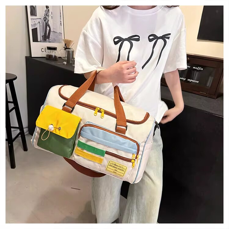 Dopamine Contrast Color Travel Bag Women's Contrast Color Can Set Trolley Case Boarding Fitness Yoga Bag Commuting Storage Shoulder Bag