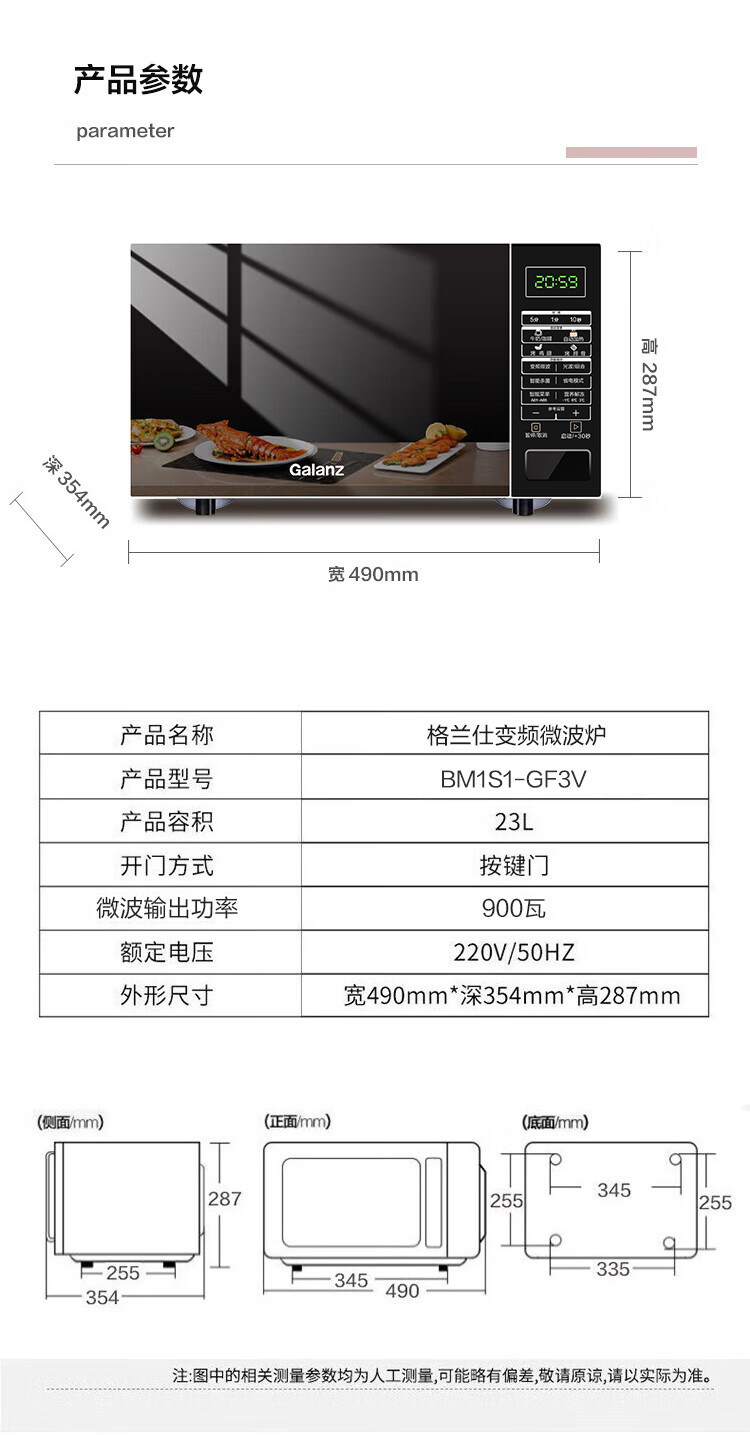 Galanz G90F23Cn3Pv-Bm1(S2) Color Film Inverter Microwave Oven for Home Use