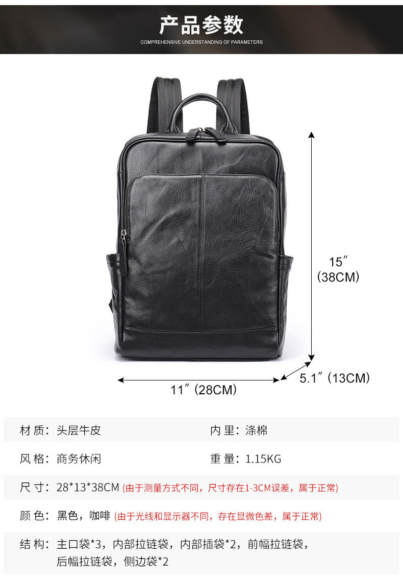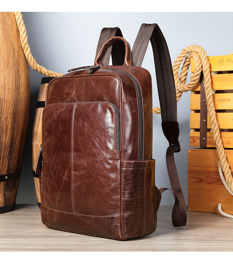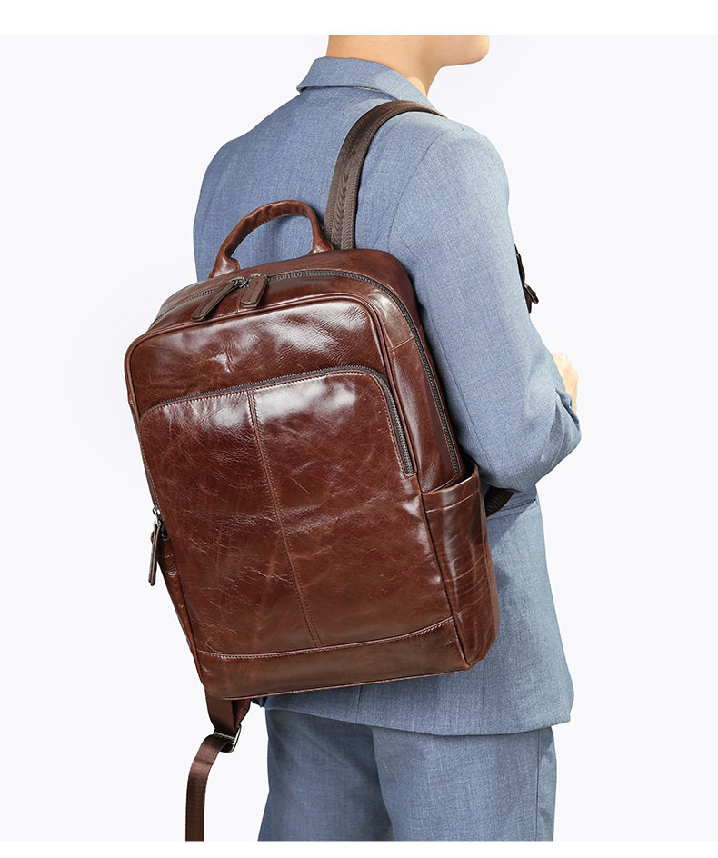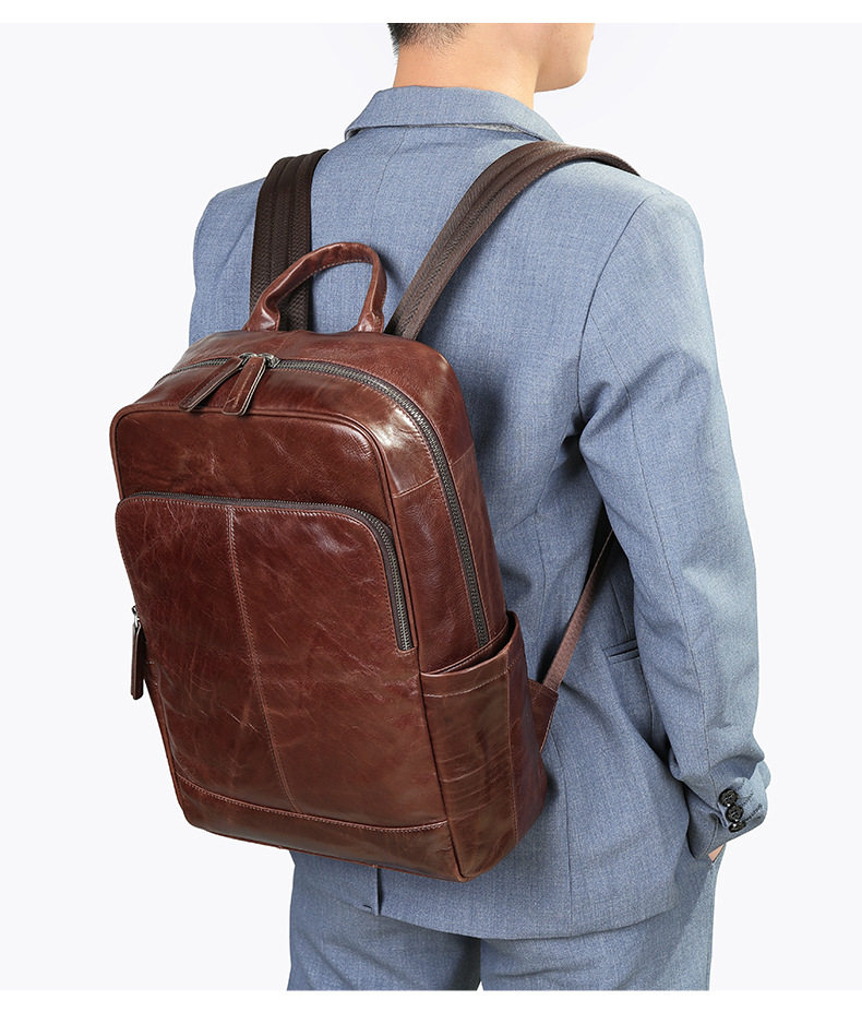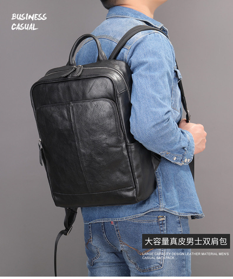 Lendaryer Business Backpack Men's New High-End First-Layer Cowhide Travel Backpack Travel Commuter Computer Bag