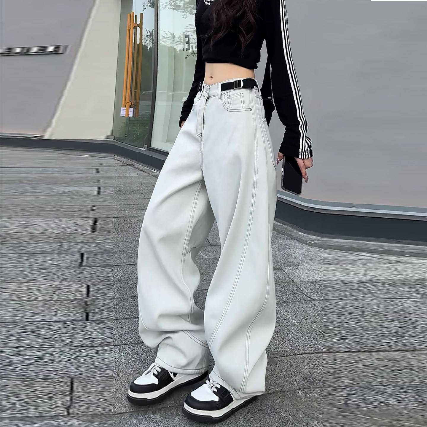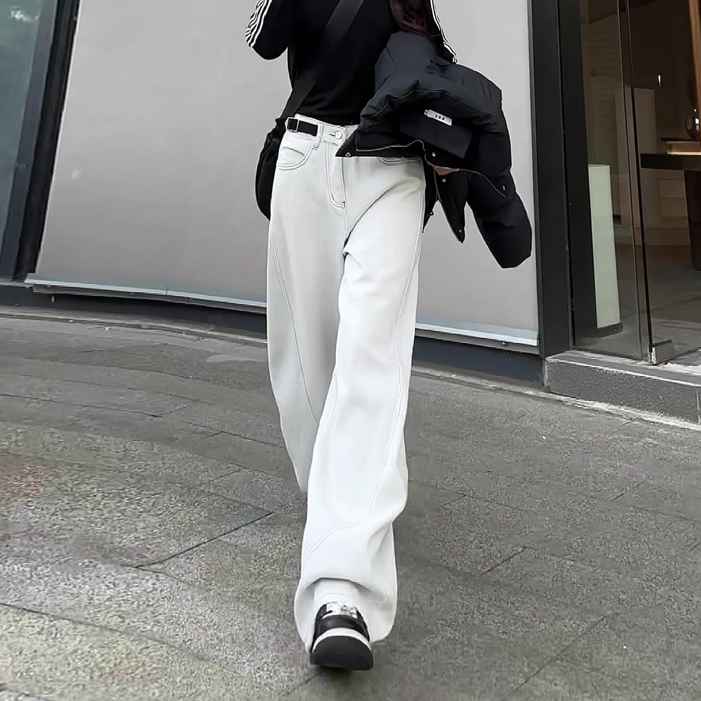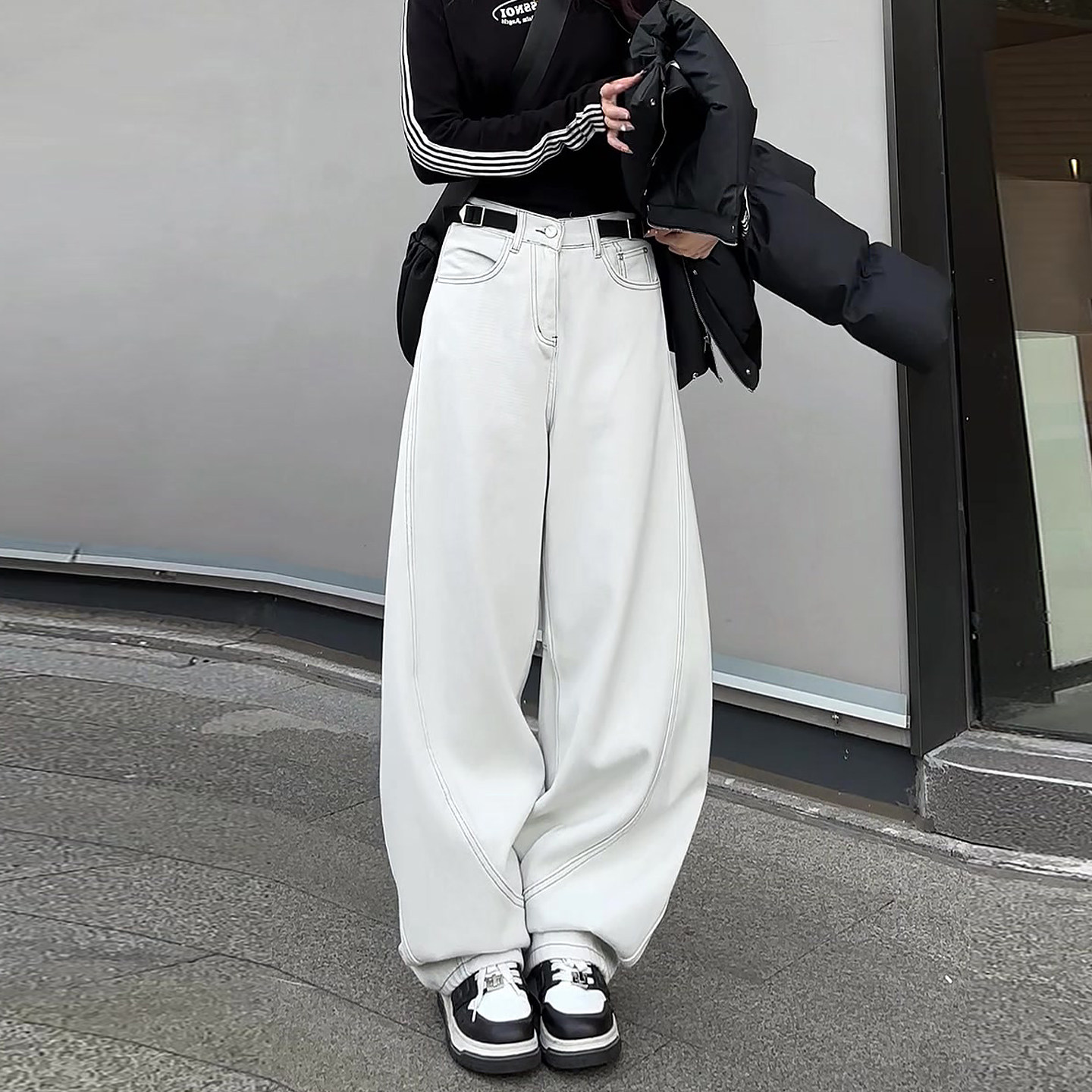 High-End Fleece-Lined Thickened Jeans for Women, Spring 2026 New Style, Plus Size, High-Waisted, Loose, Drapey, Wide-Leg Scimitar Pants