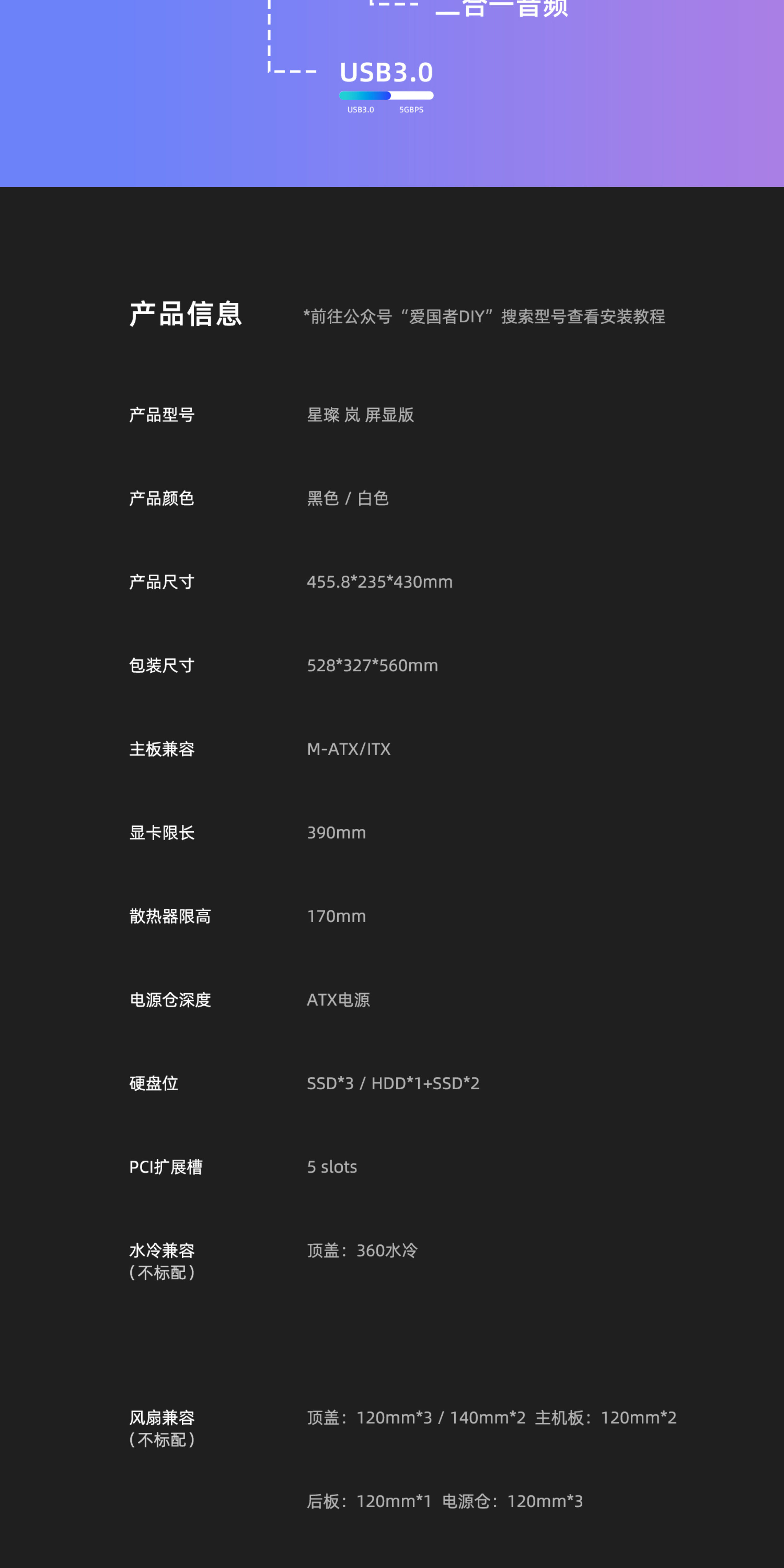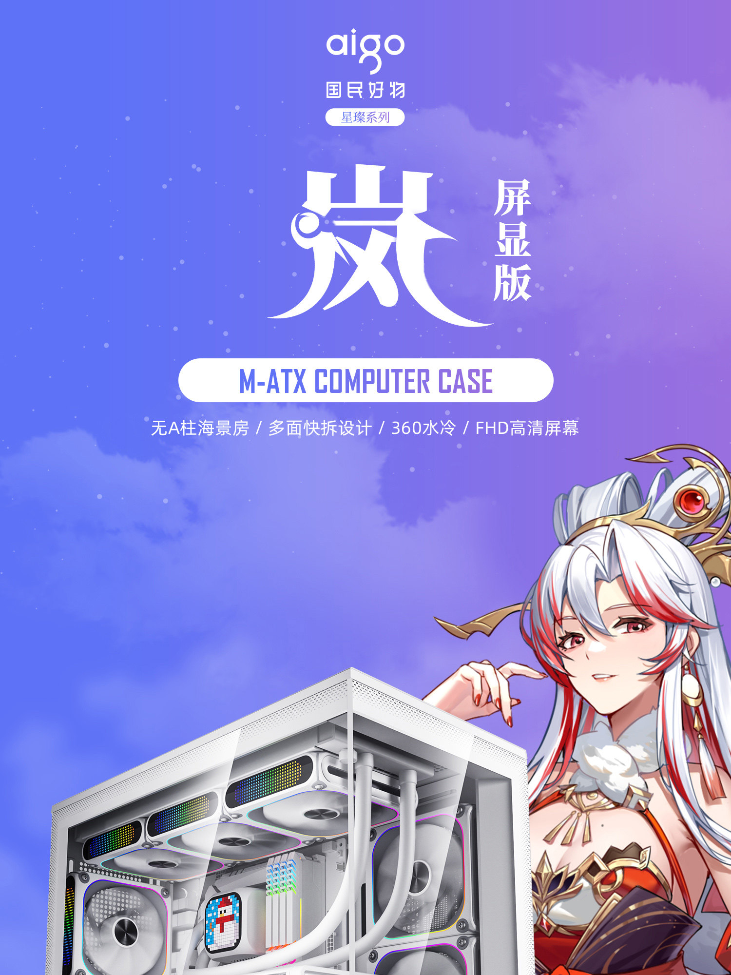 Patriot Xingcanlan Screen Display Edition Sea View Room Case Matx White 360 Water-Cooled Desktop Computer Case