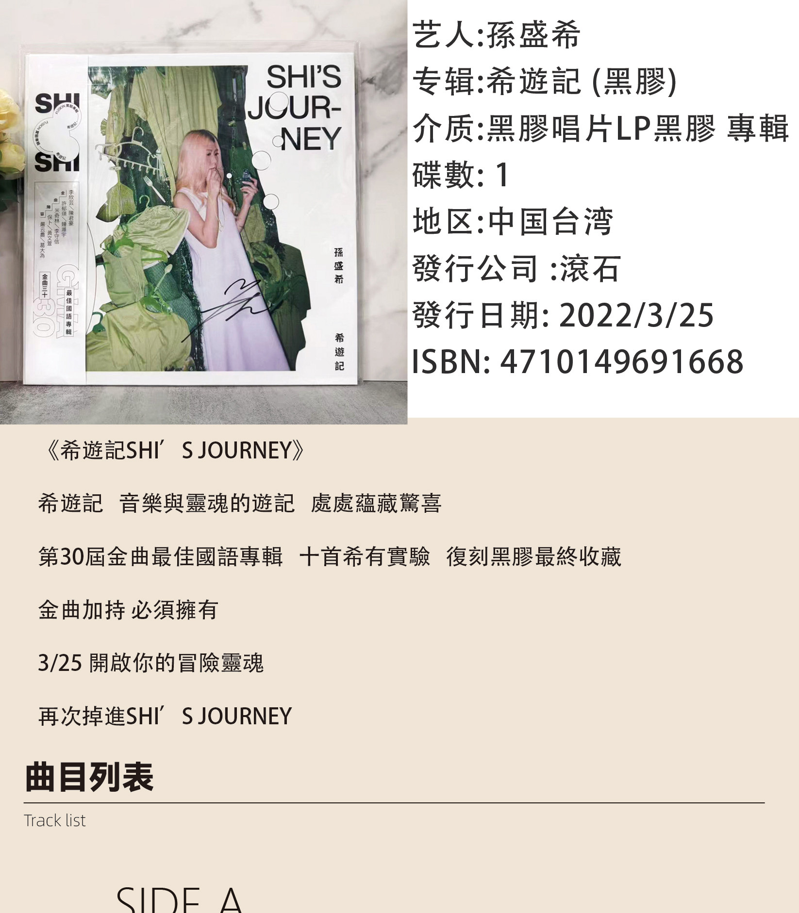 Taiwan version official version Sun Shengxi physical album signed version "Travel to Xi" LP vinyl record