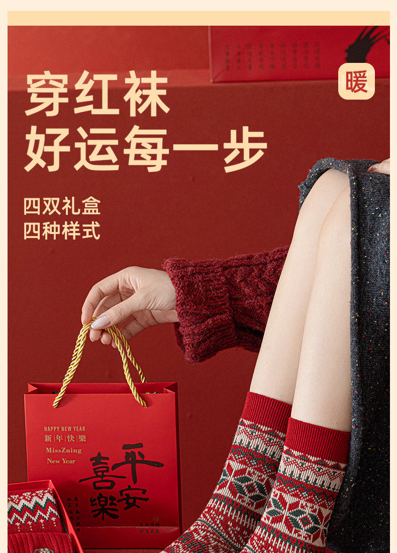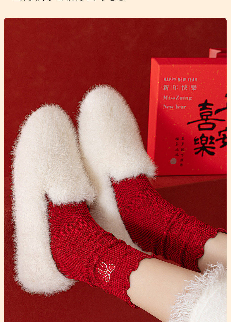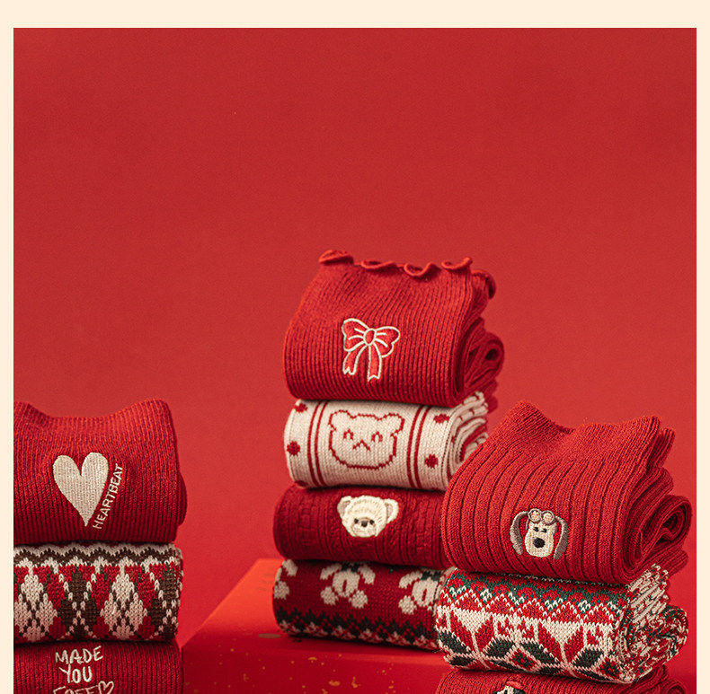 Red Socks for Women in the Year of the Horse, Autumn and Winter Warm Red Mid-Calf Socks, Thickened, 2026 New Year Gift, Women's Gift Box