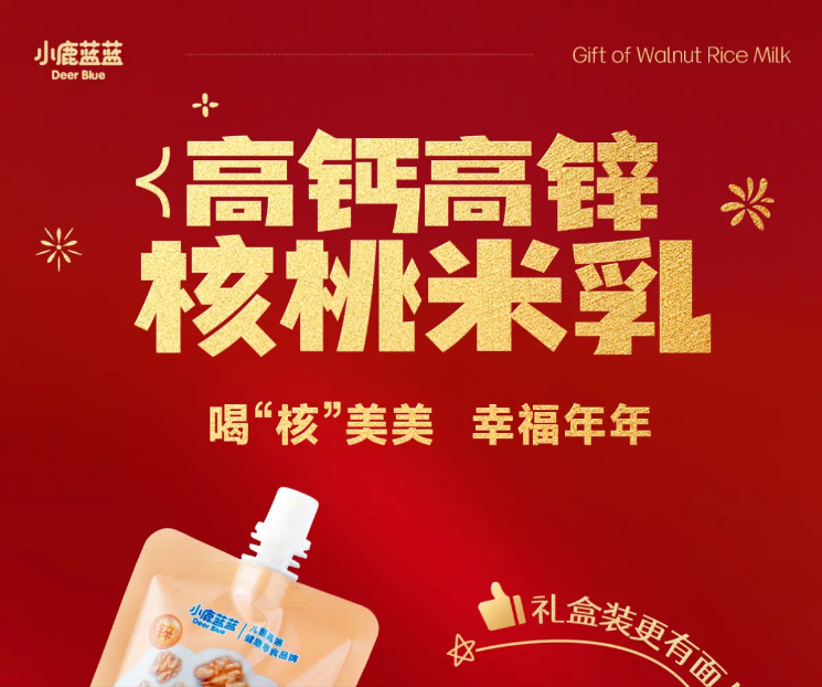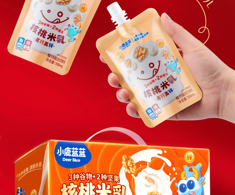 Little Deer Blue Blue High Calcium High Zinc Walnut Rice Milk 100ml Nut Milk Plant Protein Children's Breakfast Milk