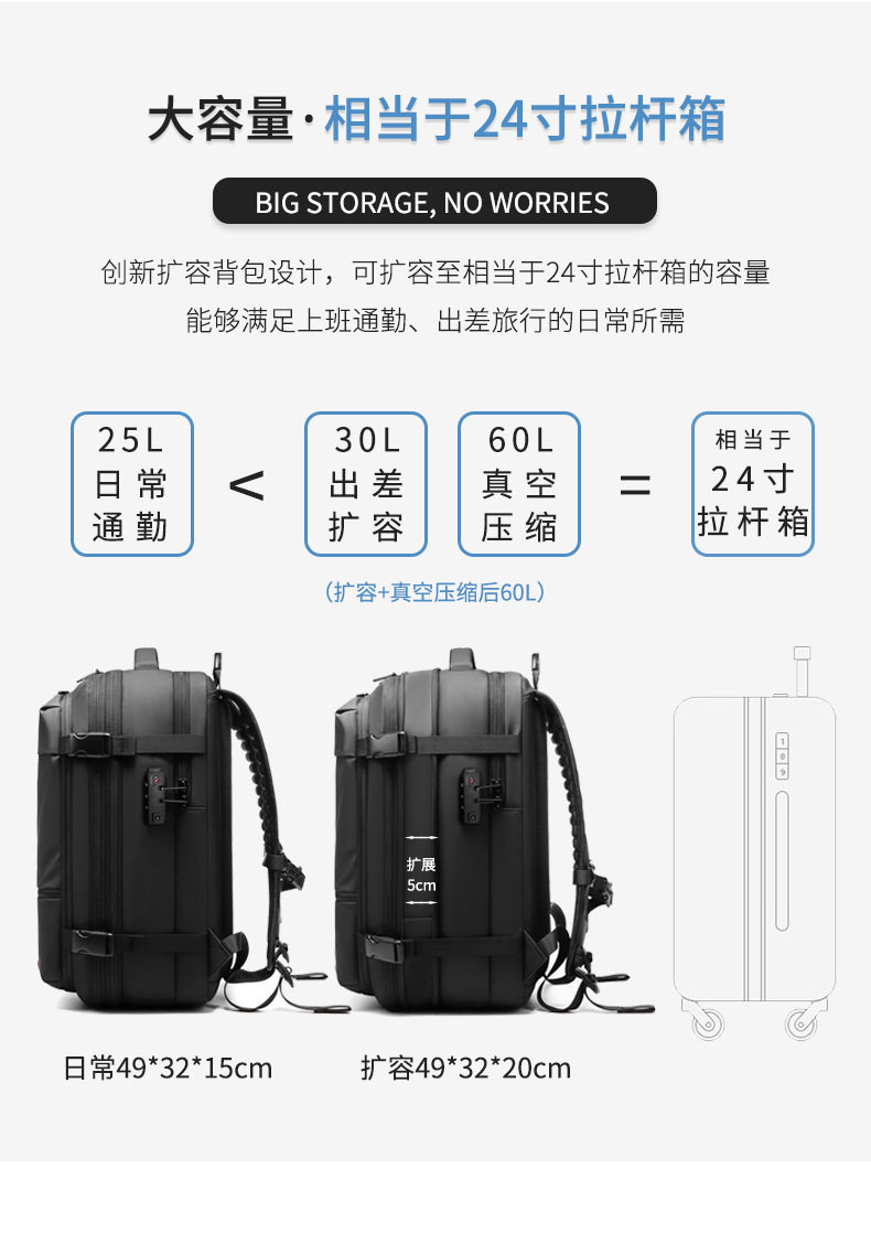 Lendaryer Business Backpack Men's Travel Vacuum Compression Bag Large Capacity Commuter Backpack Travel Computer Bag