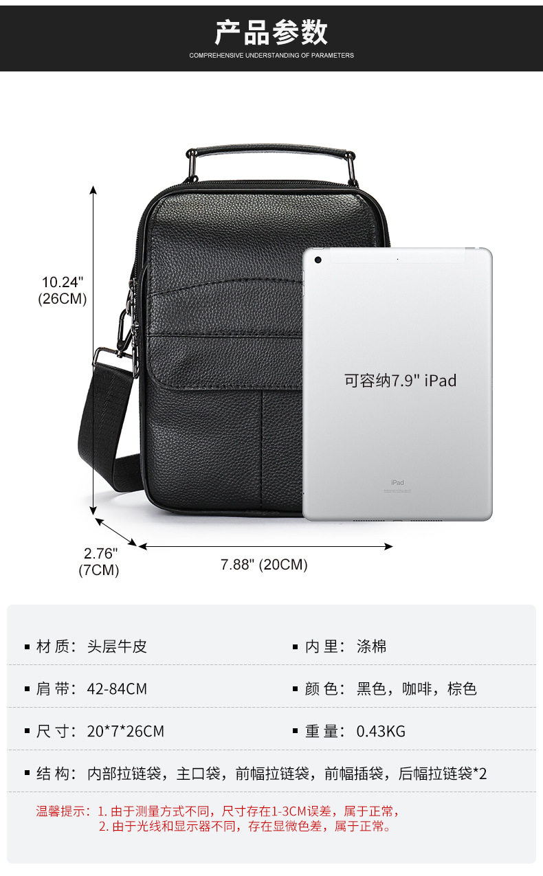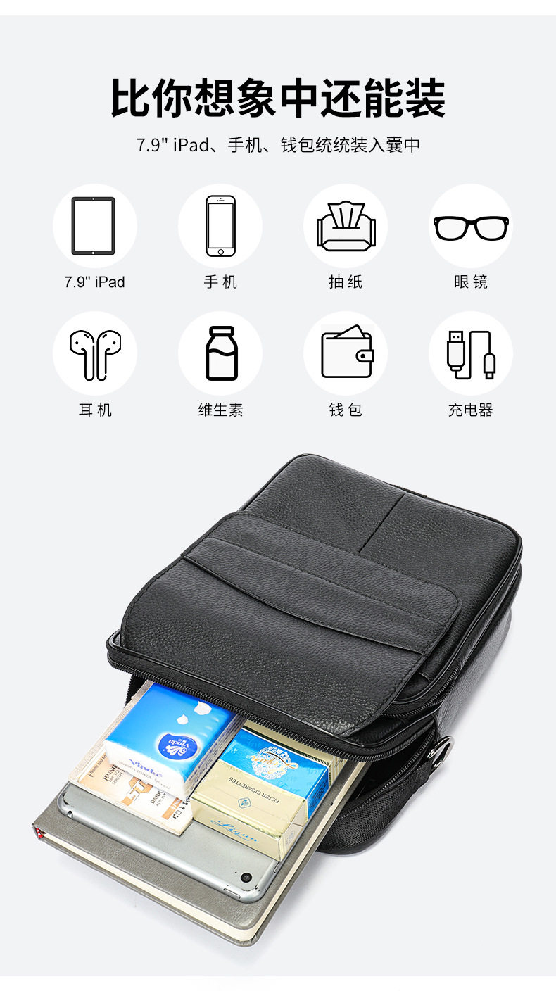 Lendaryer Shoulder Bag Men's New Style Accessible Luxury First-Layer Cowhide Multi-Functional Business Work Clothing Large-Capacity Crossbody Bag
