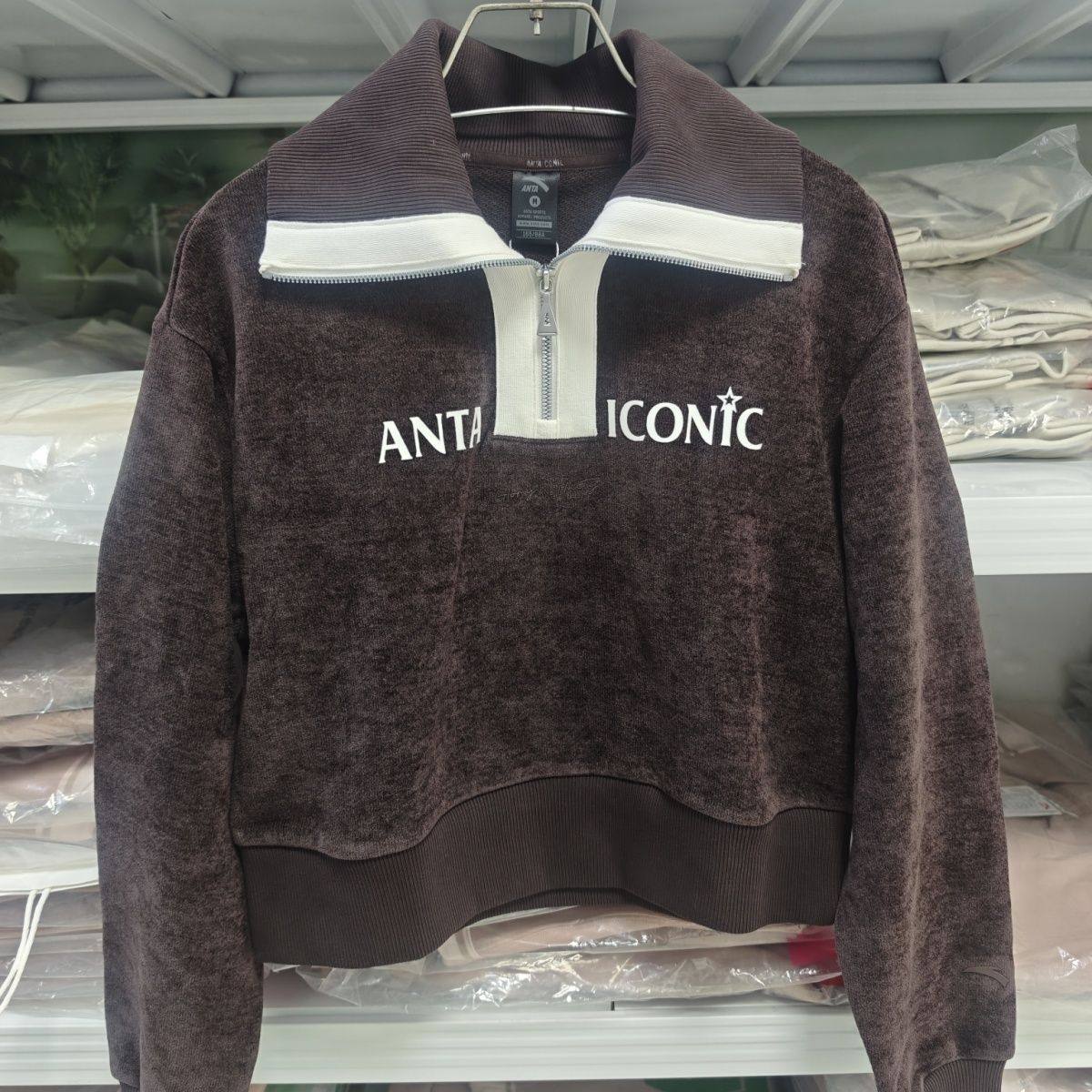 Anta American Retro Lapel Pullover Sweatshirt for Women New College Style Loose Long-Sleeved Top 162518726