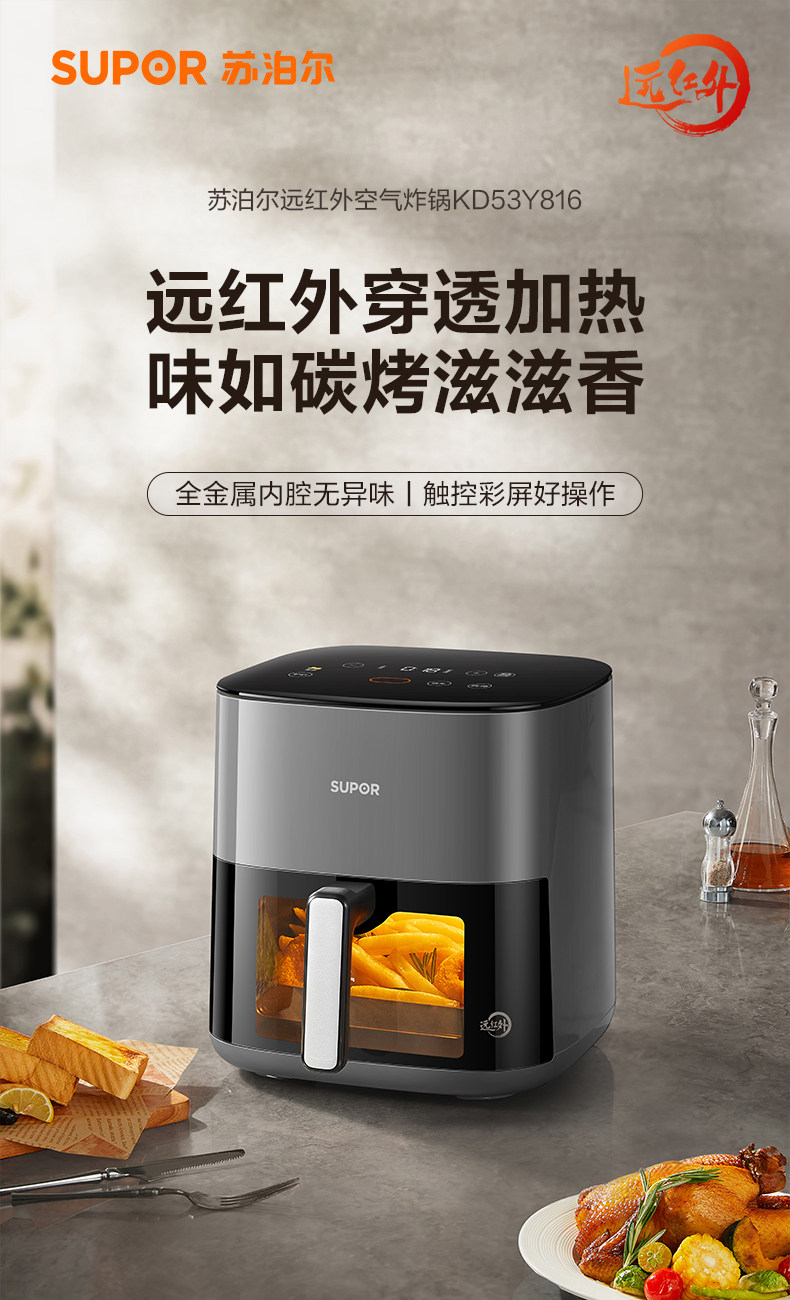 Supor Visual Air Fryer for Home Use, No Need to Turn the Food, Large Capacity, Multifunctional All-In-One 2025 Flagship New Model Fryer