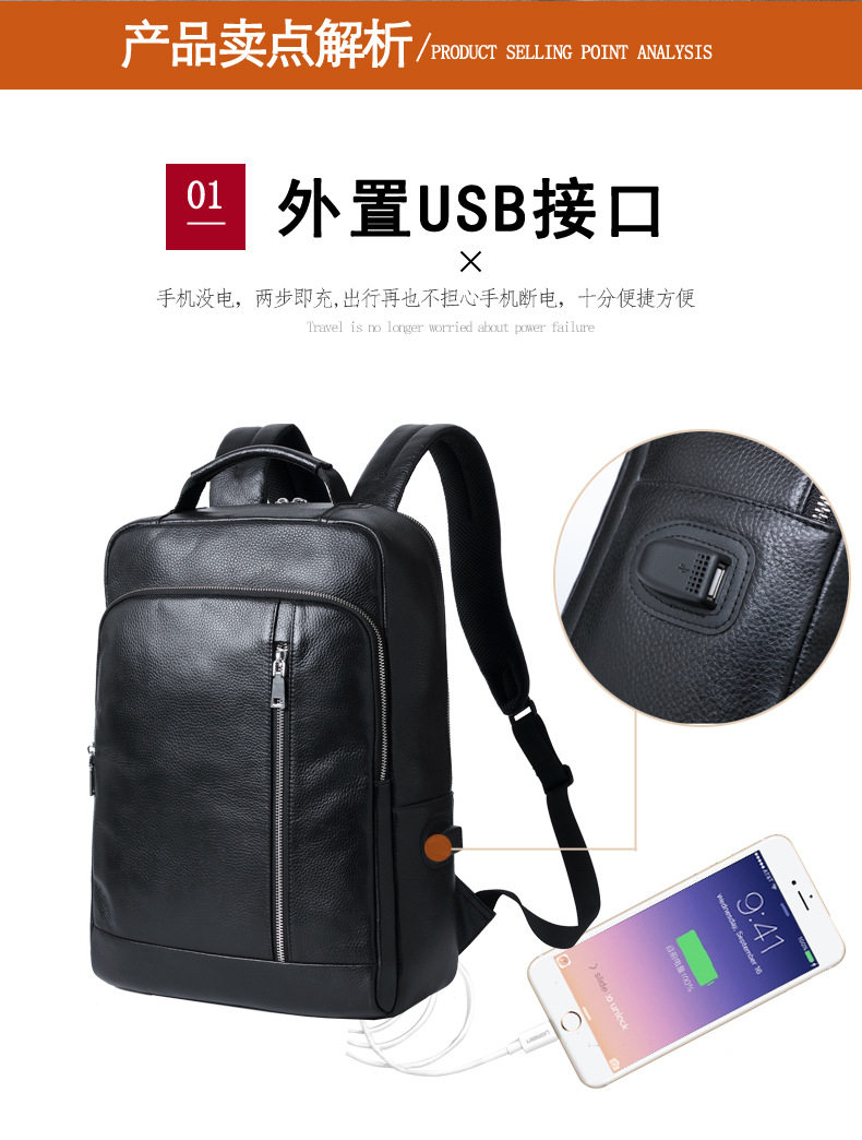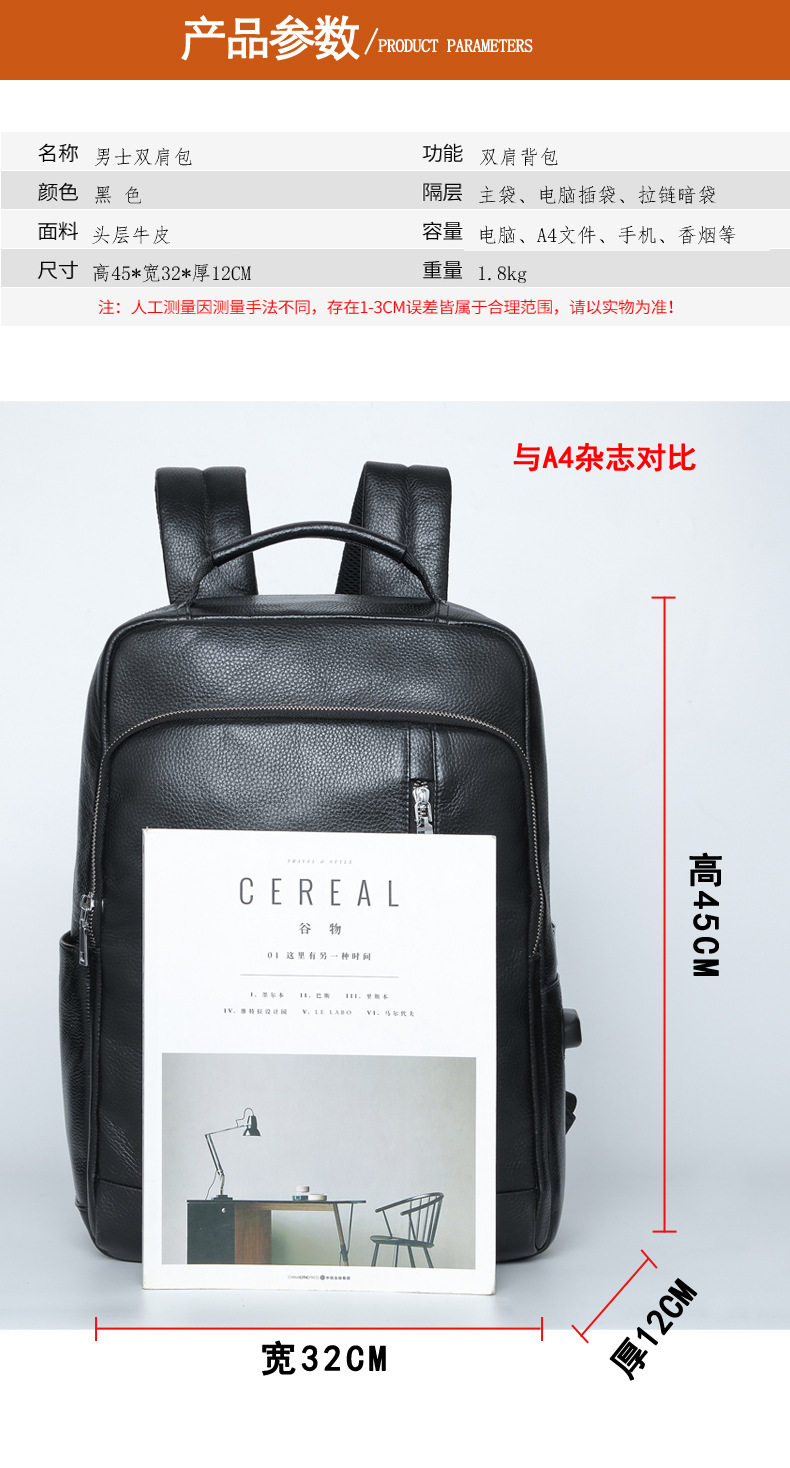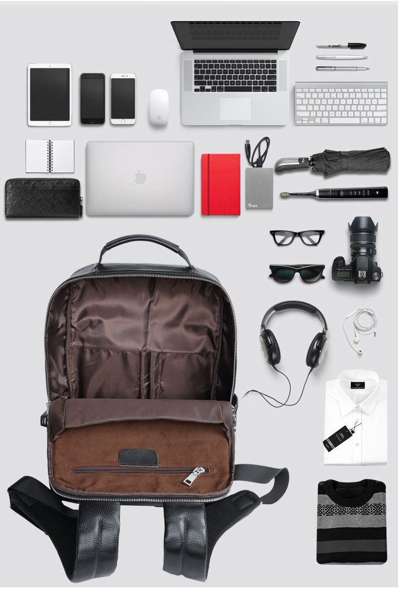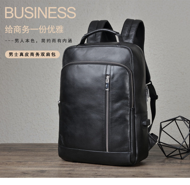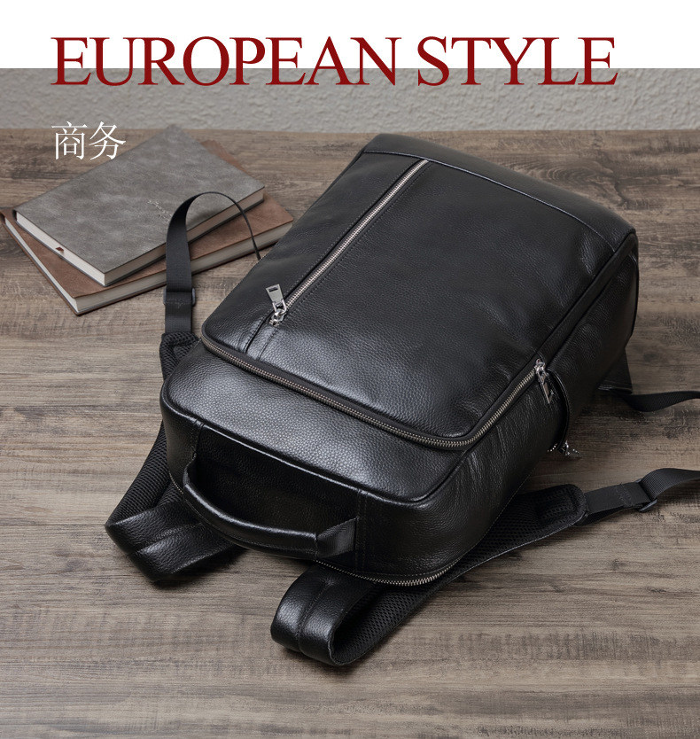 Lendaryer Business Backpack Men's Genuine Leather Large-Capacity Travel Backpack Multi-Compartment Handbag