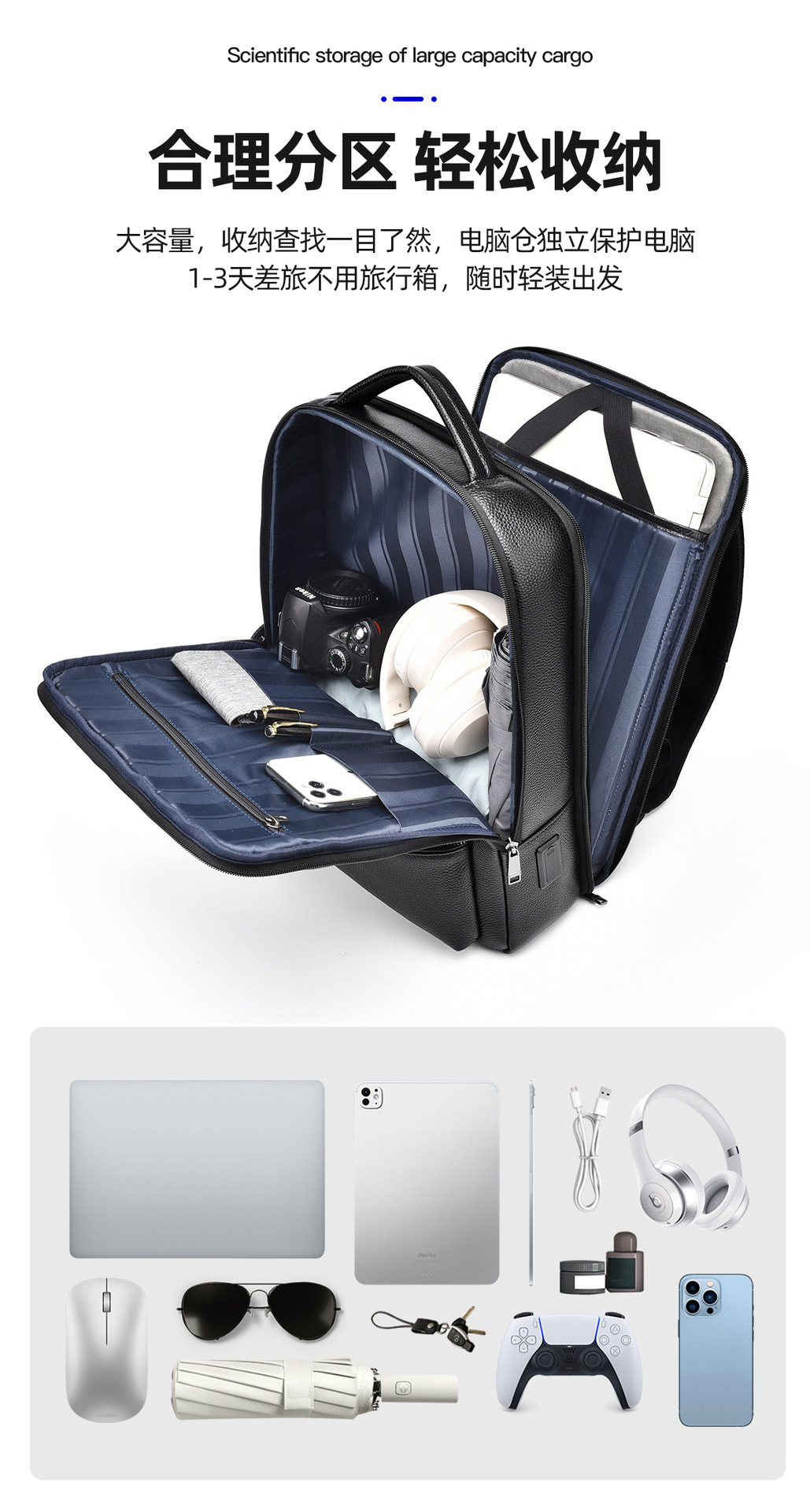 Lendaryer Business Backpack Men's Genuine Leather Large-Capacity Backpack for Travel, Work, and Travel, Multi-Functional Computer Bag