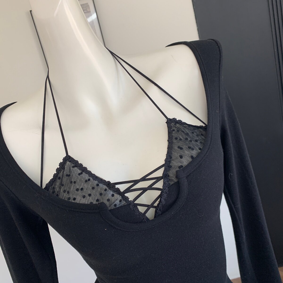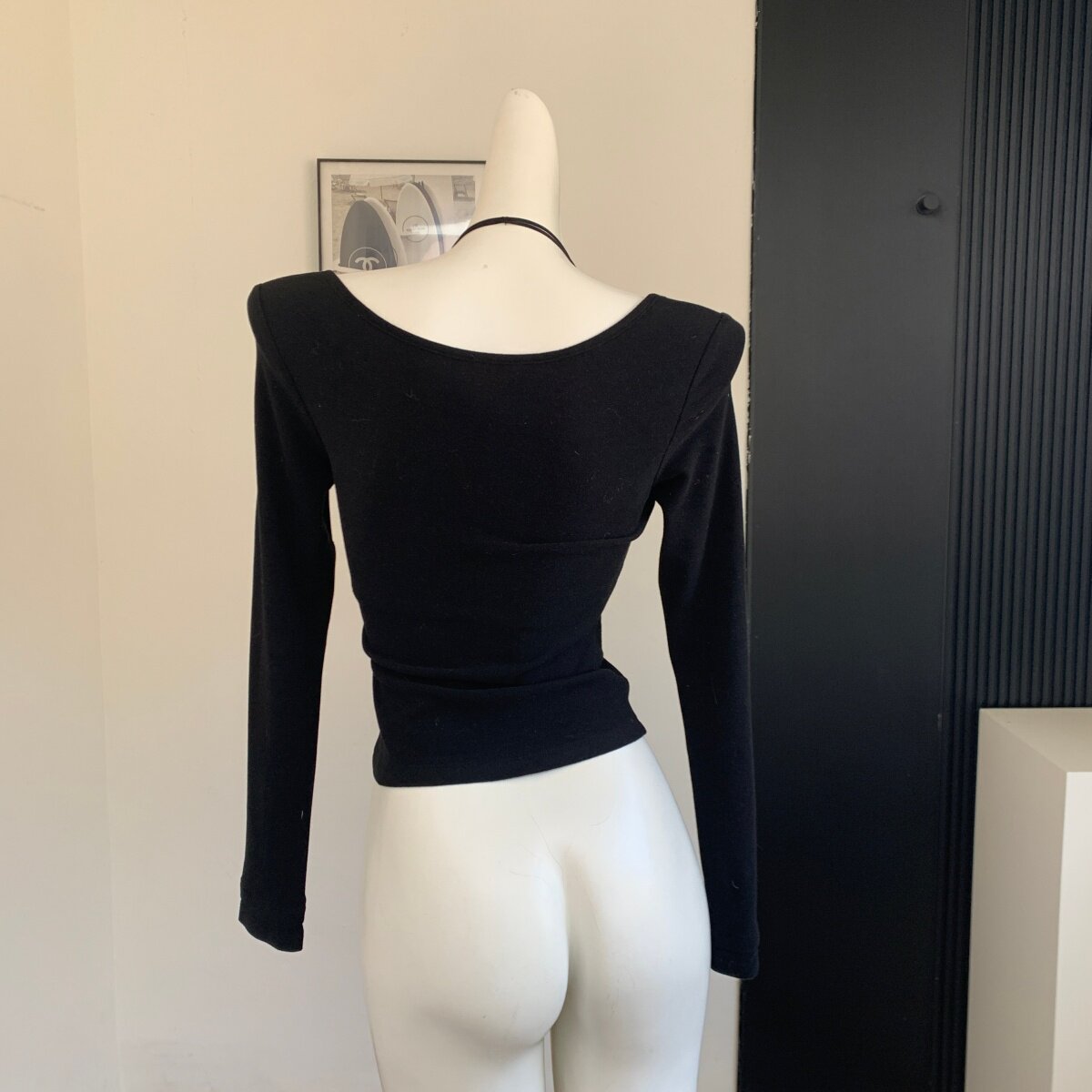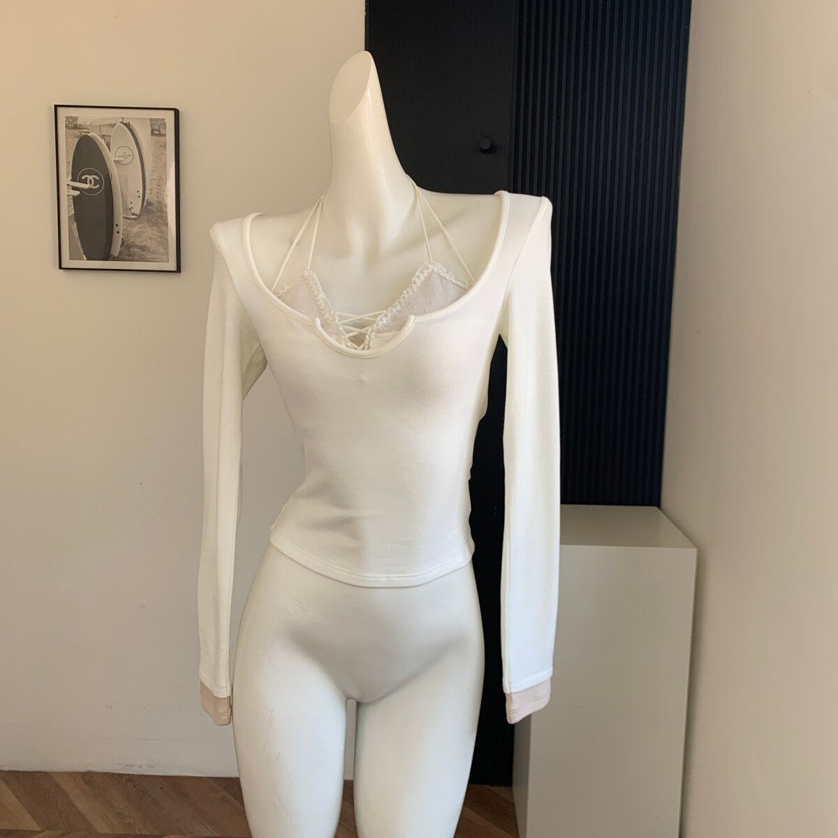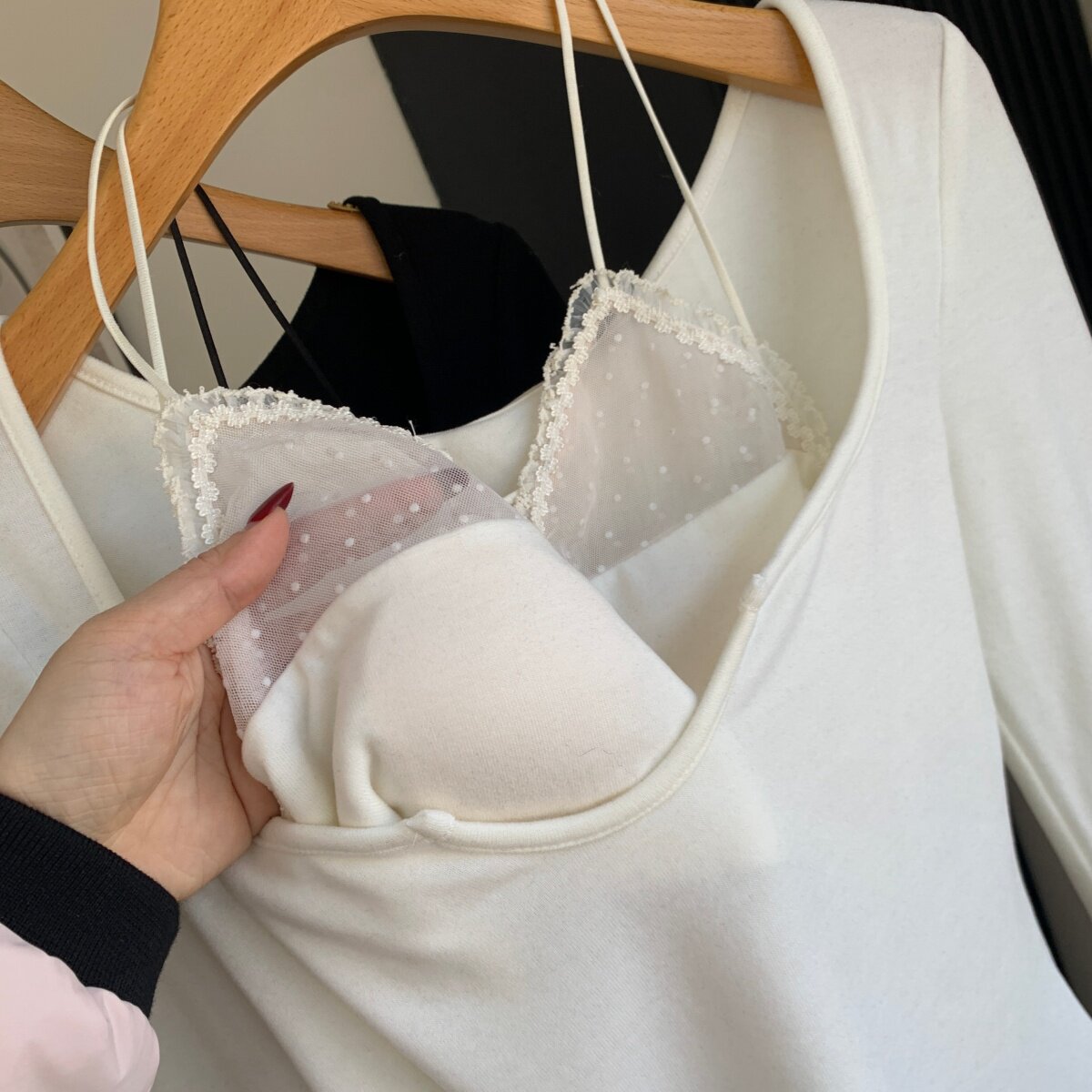 Lin Xiaxia's Two-Piece Halter Neck Long-Sleeve T-Shirt with Built-In Bra Pads, Pure and Sexy Slim-Fit Top for Women