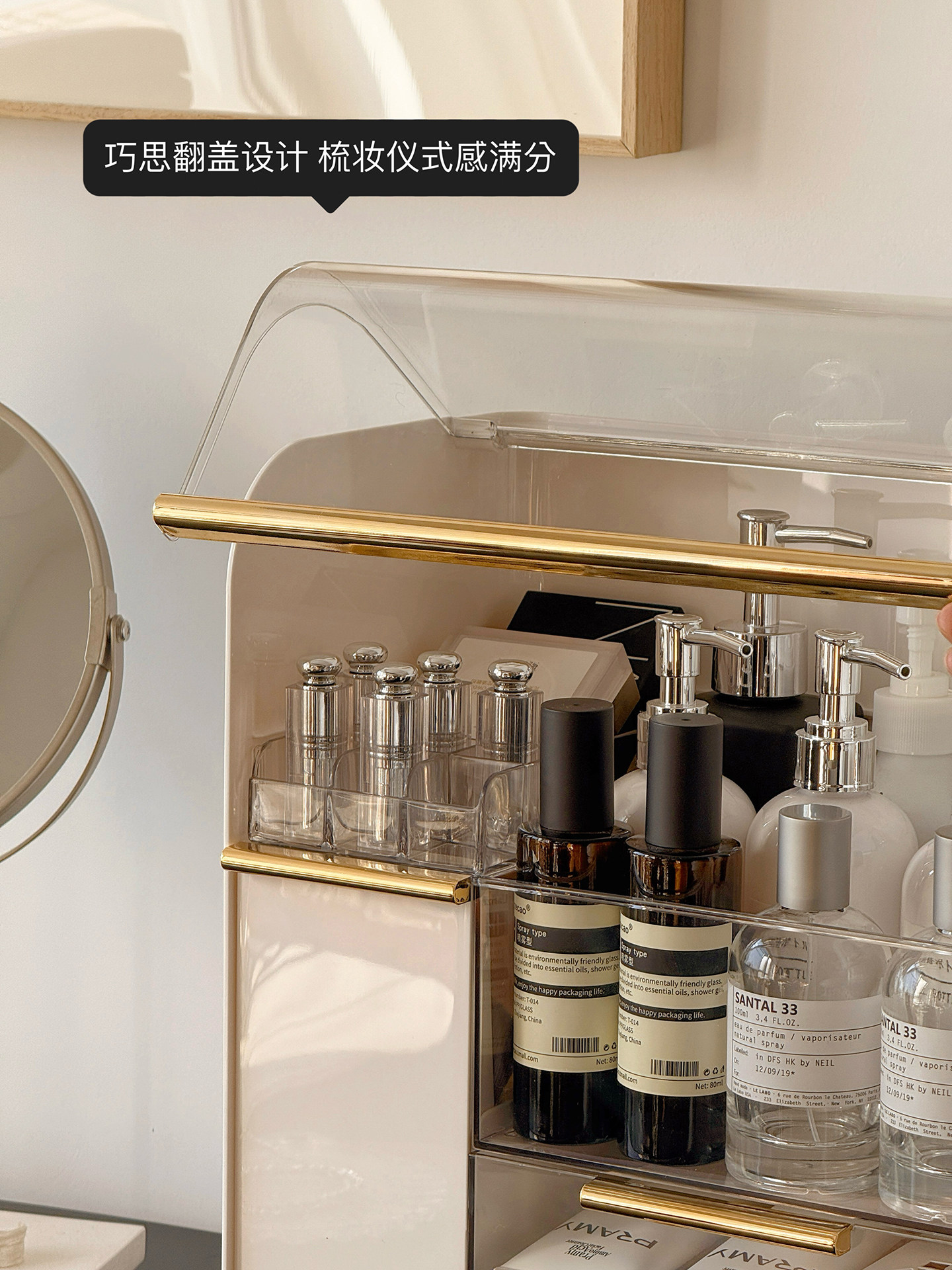 Cosmetics Storage Box Desktop Drawer-Type Layered Organizer Dust-Proof Makeup Brush Dressing Table Skin Care Product Storage Rack