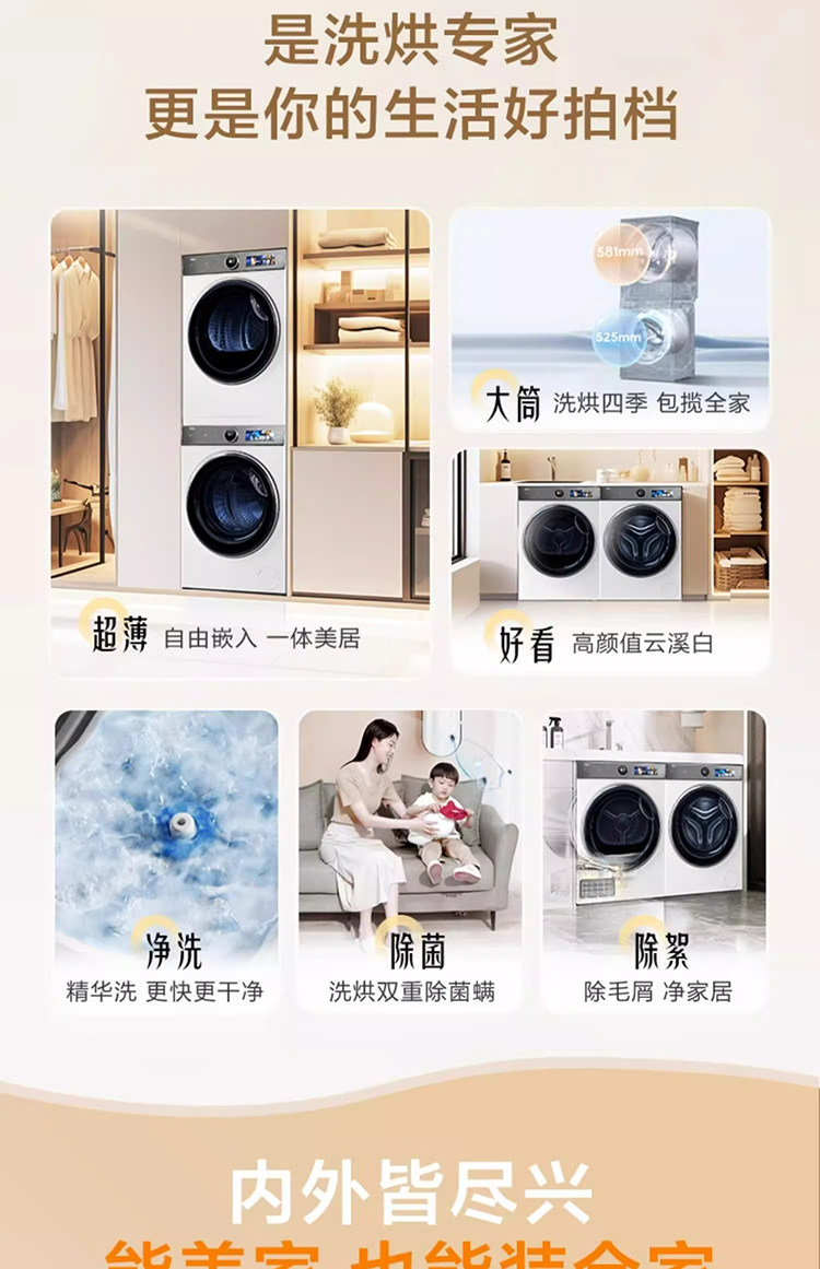 Haier Xqg100-Bd14386Wtlu1+Hgy100F386Wu1 White Washing and Drying Set 386W Heat Pump