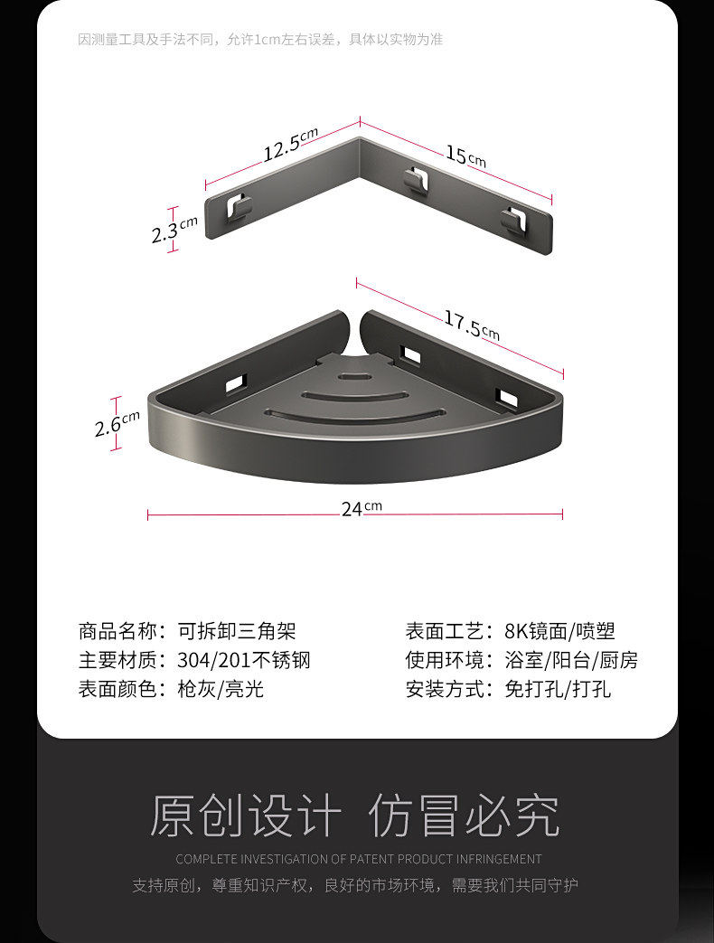 Color Classification [Bright Silver] Detachable Small Size-Single Layer Triangular Basket,[Bright Silver] Detachable Small Size - Two-Layer Triangular Basket,[Bright Silver] Detachable Small Size - Three-Layer Triangular Basket,[Gun Gray] Detachable Small Size - Single Layer Triangular Basket,【Gunmetal Gray】Detachable Small Size - Double-Layer Corner Basket,【Gunmetal Gray】Detachable Small - Three-Tier Corner Basket