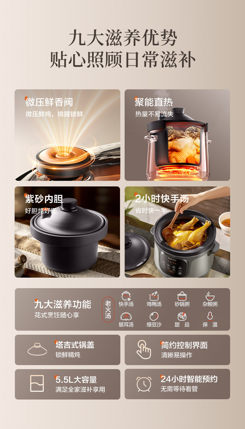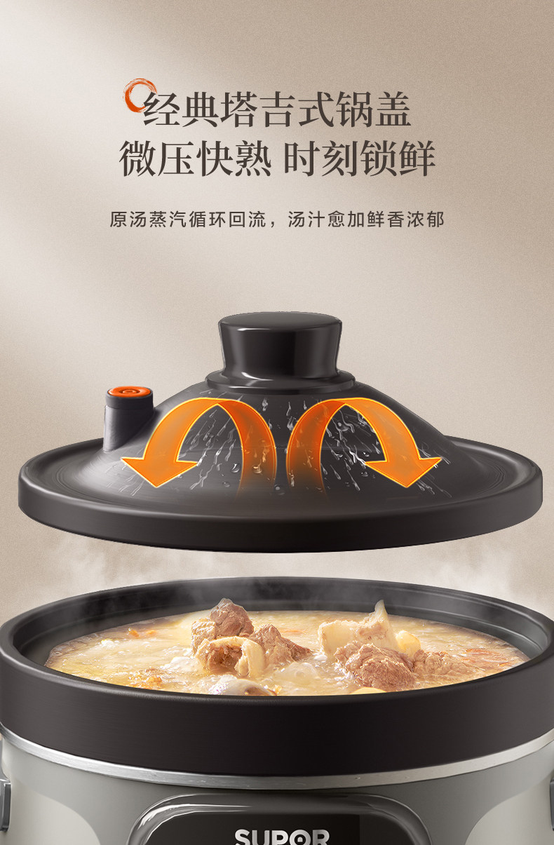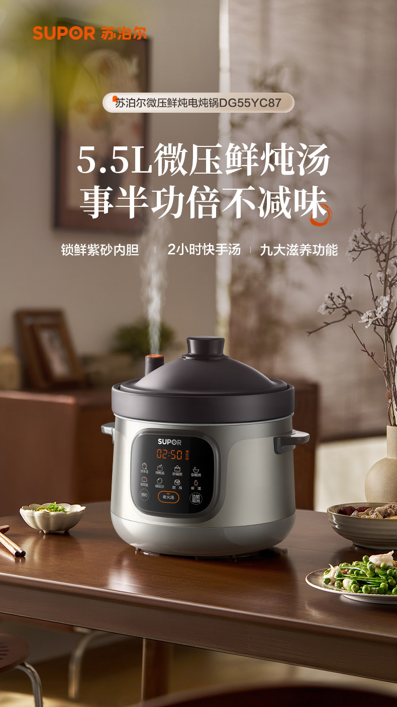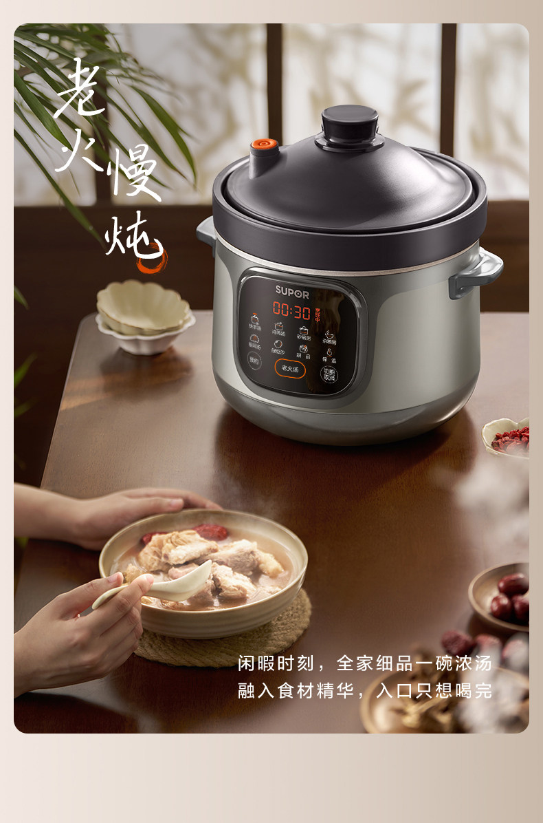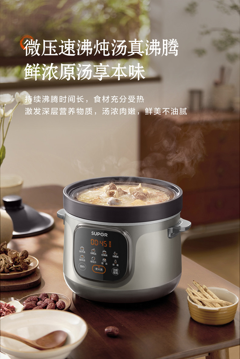 Supor's New Micro-Pressure Electric Stew Pot for Home Use, Electric Clay Pot for Cooking, Soup Pot, Porridge Cooker, Genuine Official Product
