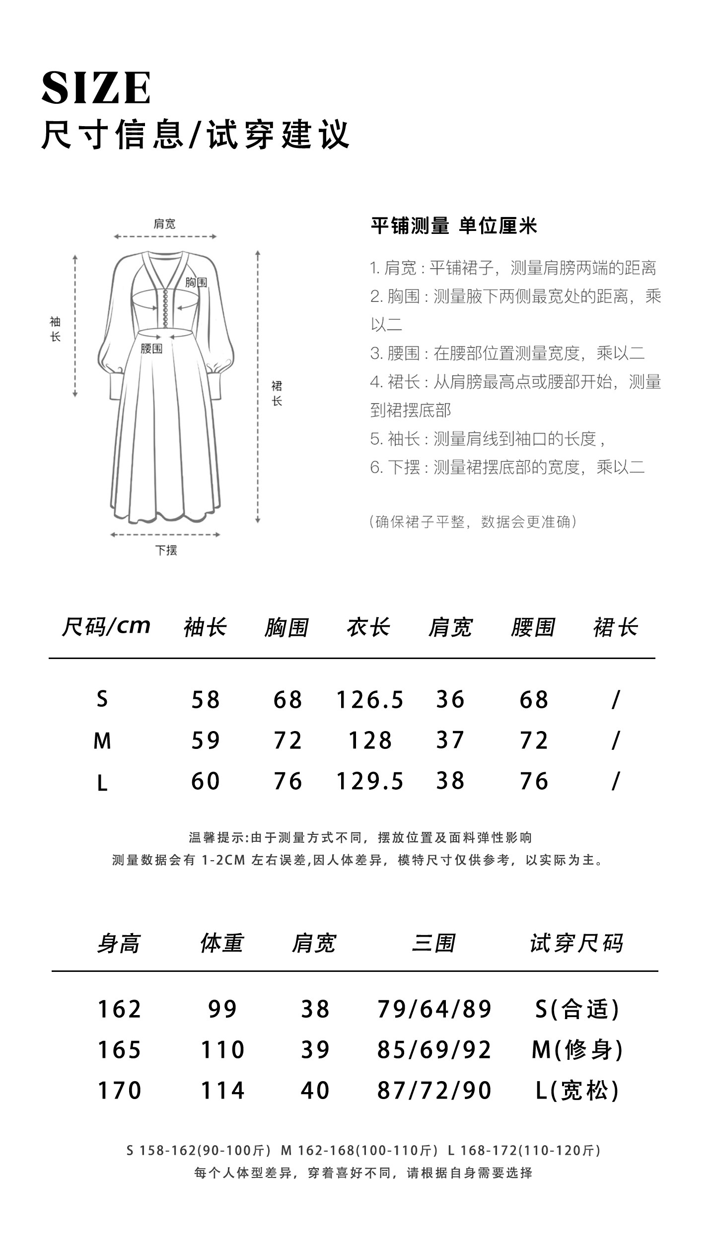 China (cm) 160-165/84-86 165-170 / 88-90 167-172 / 92-96 168-173 / 98-102 170-176 / 106-110